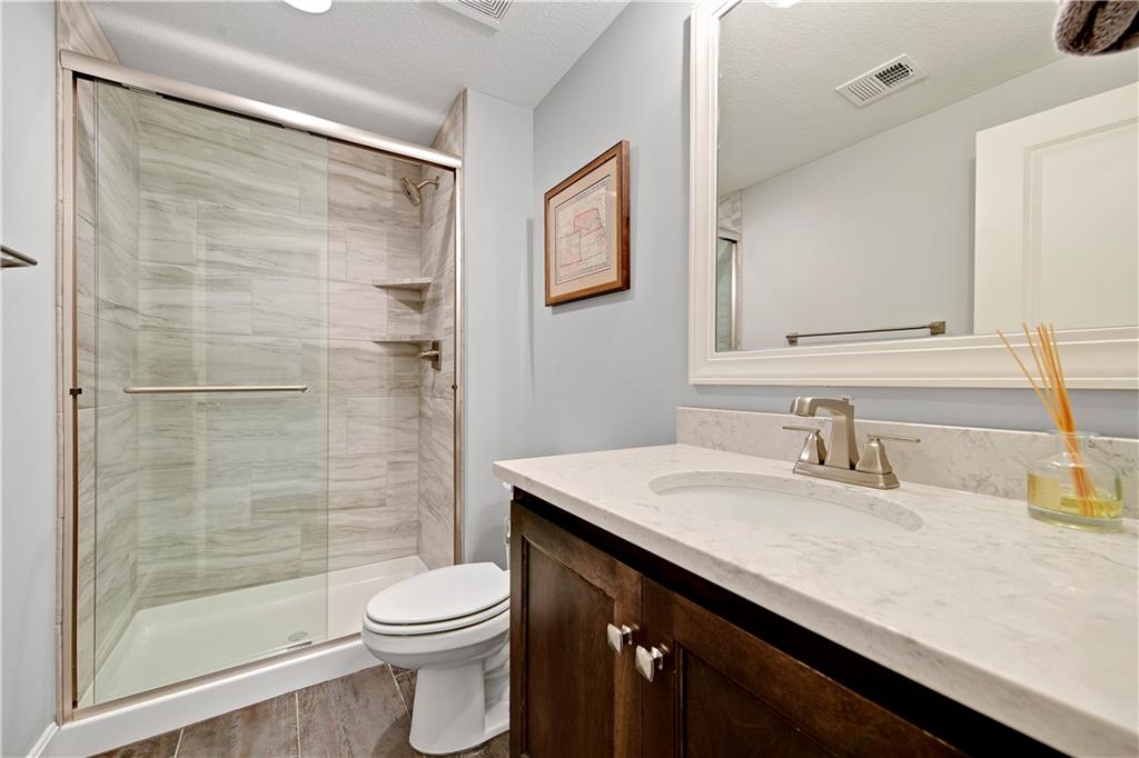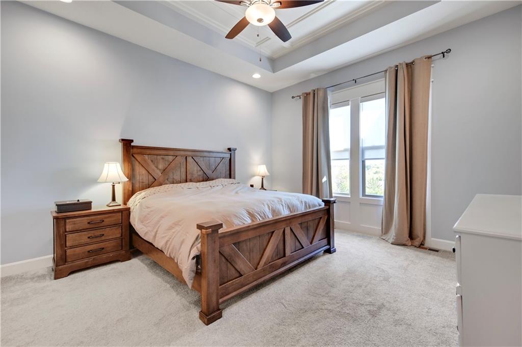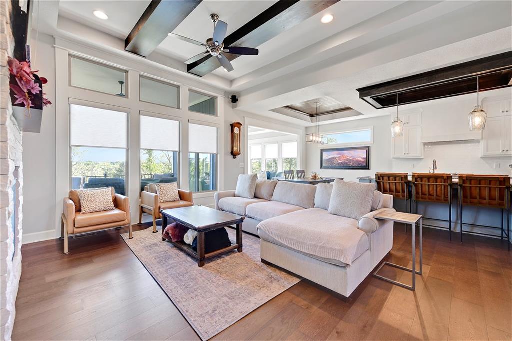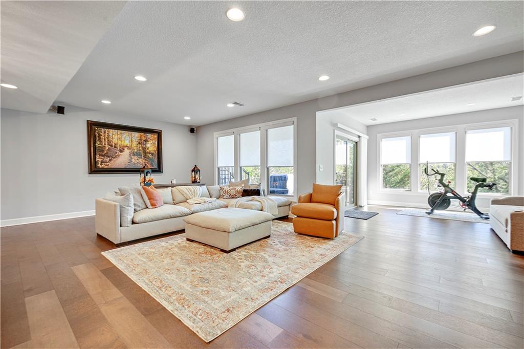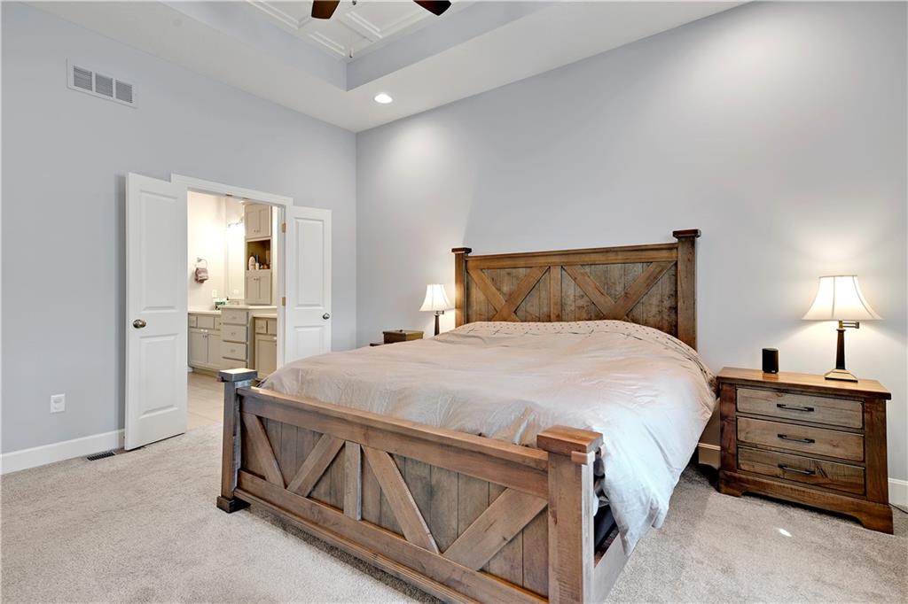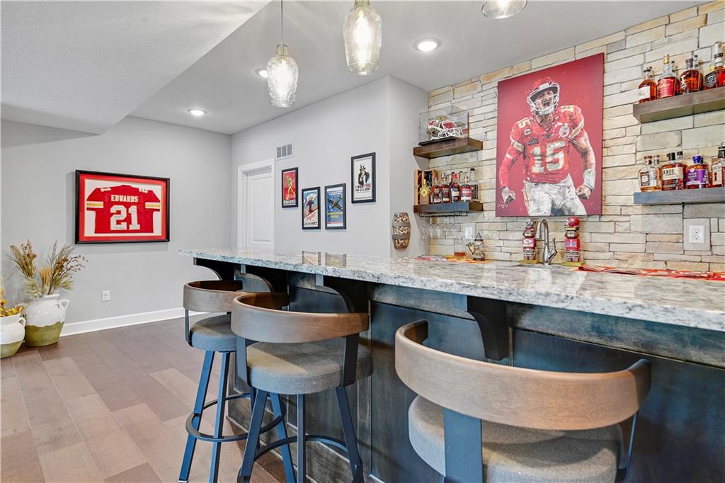 Three year old Villa, backing to gorgeous Trees. Two covered porches, Walkout finished Lower Level with beautiful granite bar and stone fireplace, two bedrooms and bath in LL. Primary on main with second bedroom or office on main. Large granite island in kitchen plus an additional prep kitchen and walkin pantry. Double ovens, gas cooktop, eatin kitchen, laundry main floor next to Primary suite. Mud room off three car garage. Epoxy garage floor and garage is tall enough for Trucks. Master bath offers dual vanities, center stack cabinets, and free standing soaker tub. New landscaping, and landscape lighting, new mini split hvac in garage for heating and cooling, new spa hot tub on lower deck. You'll love it!