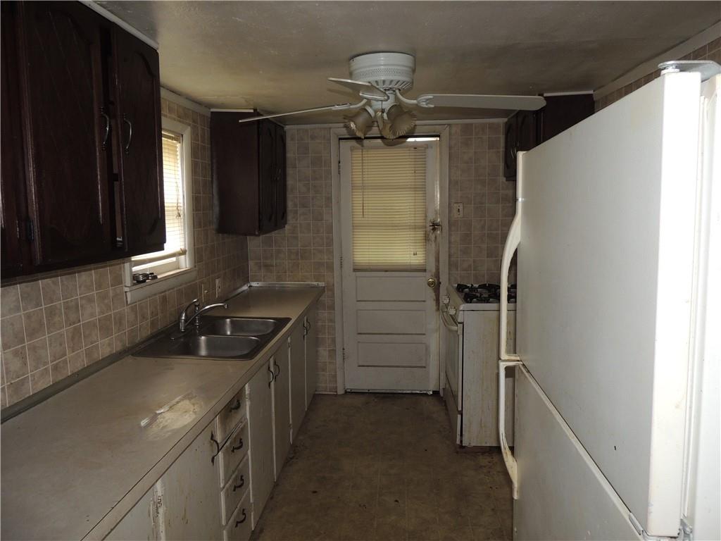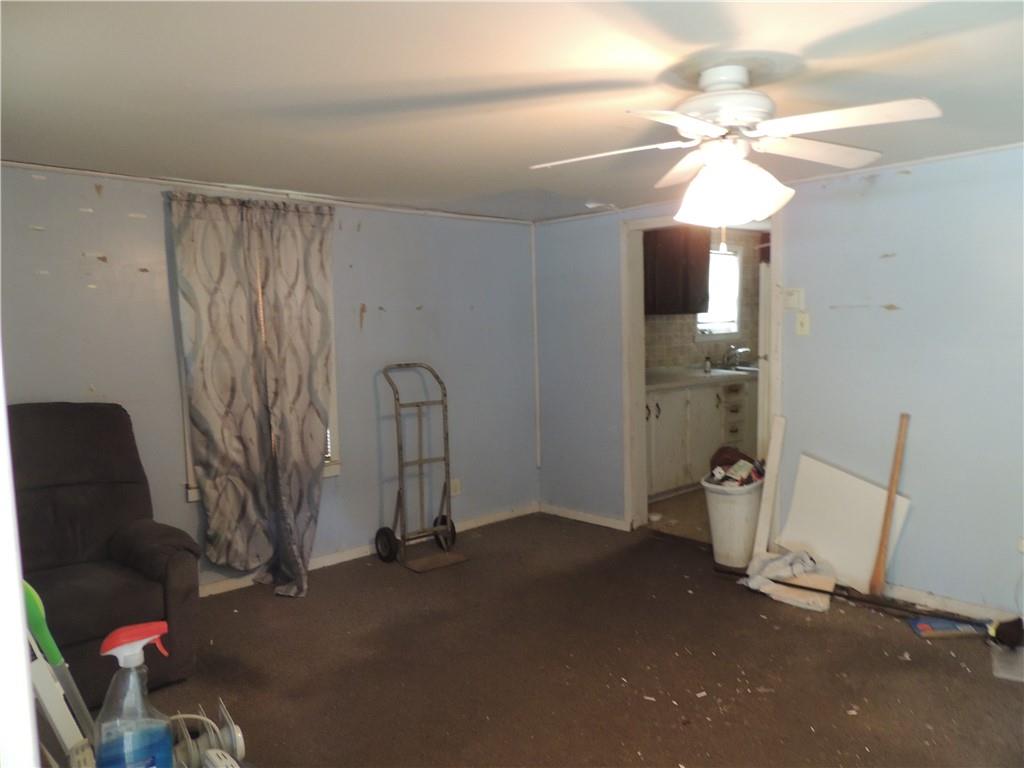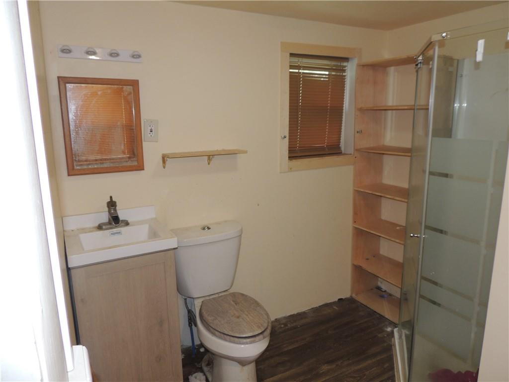 One bedroom one bath home with full basement. Laundry moved up to main level in bathroom, Needs TLC, New flooring and paint will go along way! Concrete block basement with access from back of home. Almost 600 square feet