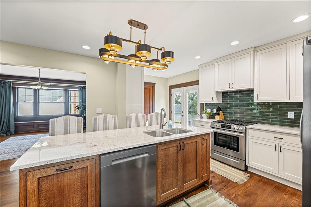 Absolutely stunning, meticulously taken care of Brookside beauty! This home has been stunningly modernized while keeping that Brookside charm people look for. Upon entry, you are greeted with a large entry way that provides plenty of space for an office or play area right off of the living room with the fireplace and built ins. Keep going into the home and the kitchen has went through an entire overhaul and one wall was widened into the formal dining area really opening up the space, but not loosing any of the character. The kitchen has new everything, including island, cabinets with roll outs, a pantry, gas stove, granite, and stainless steel appliances that all stay! The laundry was brought to the main level for added convenience and is tucked away behind the kitchen. Go upstairs by the split staircase that leads to the entry and kitchen. Once upstairs, it is immediately apparent the sellers knew where to upgrade. The primary bedroom has been transformed into a suite with an added full bath that includes double vanity, large shower, and walk in closet. The main bath is across the hall for the three other bedrooms to share. Outside, enjoy the peaceful street on the covered front porch where the sellers sit most evenings, or off the kitchen you will see the new composite deck, updated wood privacy fence and access to your TWO CAR garage with newer poured shared driveway leading to it. This home really requires you to walk through it twice to notice all of the features. The sellers have done an astonishing job updating while maintaining what makes Brookside so special.