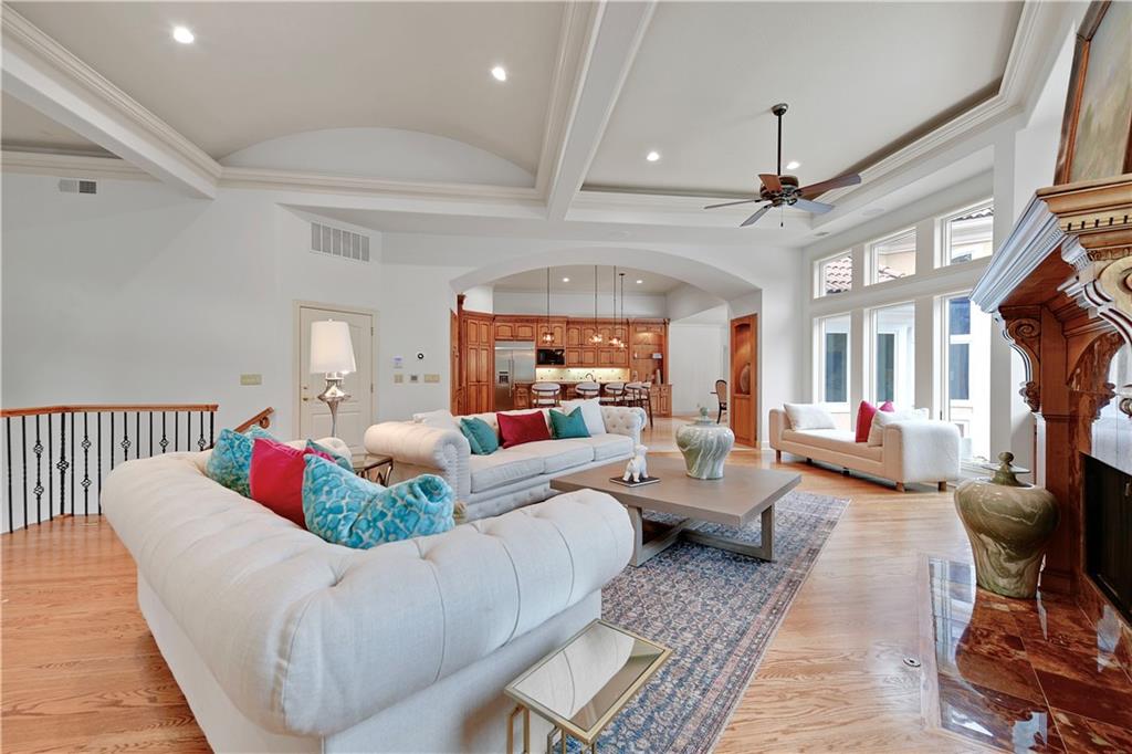 Welcome to your own private oasis—nestled on one of the largest, most picturesque lots in Loch Lloyd, surrounded by lush trees and extensive landscaping. This stunning home seamlessly blends luxury and comfort with an open-concept design featuring a vaulted ceiling great room with spectacular views overlooking the pool, a spacious kitchen with huge island and Thermador appliances, a cozy hearth room, and formal dining area perfect for entertaining. An office/den on the main floor plus an office space in the primary suite offer working flexibility. The luxurious primary suite is a true retreat, complete with a cozy see-through fireplace, a tranquil sitting area, and a spa-inspired bath with a generous walkin closet. On the lower level, enjoy endless amenities including a huge rec room with fireplace, two bars, a state-of-theart theater with 12 recliners and surround sound, wine cellar, and a large game room, perfect for all types of game tables and gatherings! Step outside to your personal paradise—an expansive outdoor living space boasting a custom in-ground pool with waterfall, an extended covered lanai with fireplace and built in grill, sunny deck, a full outdoor bar, and incredible mature landscaping. What a setting for the best parties or family celebrations! Car enthusiasts will appreciate the fabulous six-car garage. Every detail of this extraordinary home has been thoughtfully designed for entertaining, relaxation, and creating lasting memories. Prepare to be impressed! Loch Lloyd offers the security & lifestyle of a gated community with fabulous amenities & social activities. Come experience the best of Loch Lloyd living - where every day feels like a vacation! Please note: A potential fourth bedroom is currently configured as a workout room. A window can be added to make this a conforming bedroom.