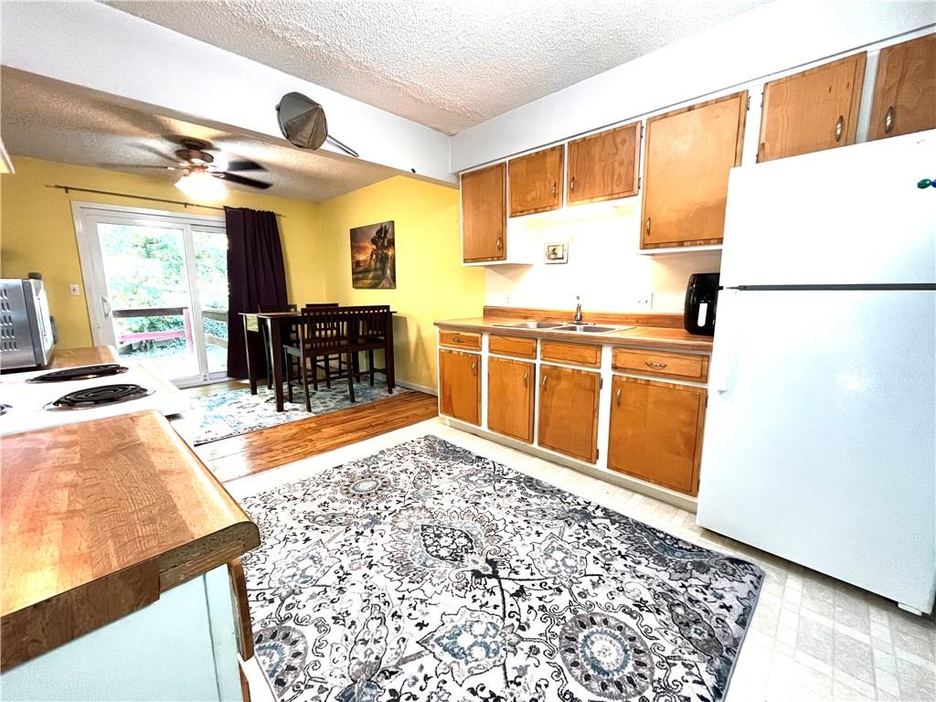Fantastic value at this price point! END UNIT backing to trees with large peaceful deck, this home features 3 bedrooms, 2 baths, and a full unfinished basement. This unit has a newer roof, vinyl siding, vinyl windows & slider, solid hardwood floors, white faux wood blinds and NEW furnace & air conditioning (October 2025)! Vaulted living room feels both cozy and spacious. All appliances stay. Designated parking & maintenance provided exterior. Come take a look!