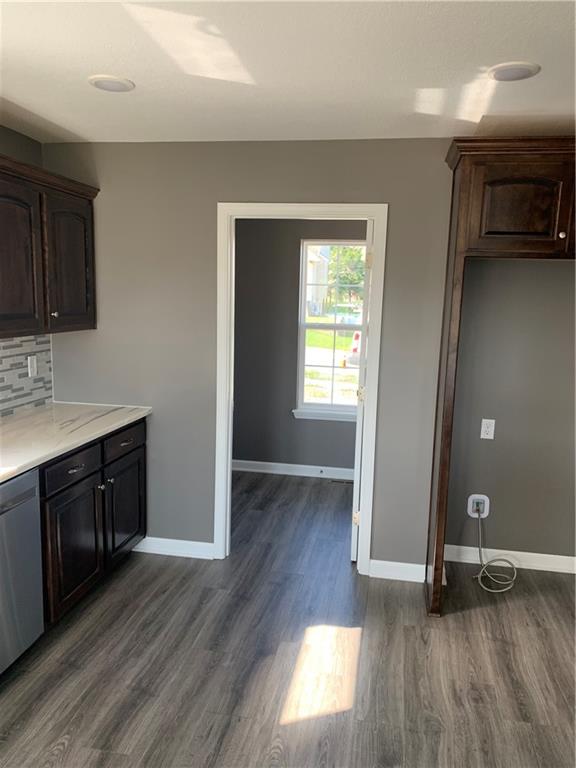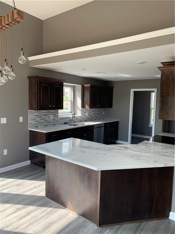 NEW-ish raised ranch floorplan on a large corner lot in the perfectly located Hawthorne neighborhood of Warrensburg. The main level features three bedrooms - one of which has a very nice ensuite setup. The living room is adjacent to a smaller dining area as well as a very spacious kitchen (richly stained wood cabinets, gorgeous white stone countertops....) and attached laundry area! The lower level has a full bathroom, bar, recreational area, walkout door to the backyard. The garage is large, huge yard, long driveway, green space behind the home.... this is a fantastic home and you will want to look at it before it's gone! *Photos are from new construction in 2021. Revised interior photos will be updated 10/11