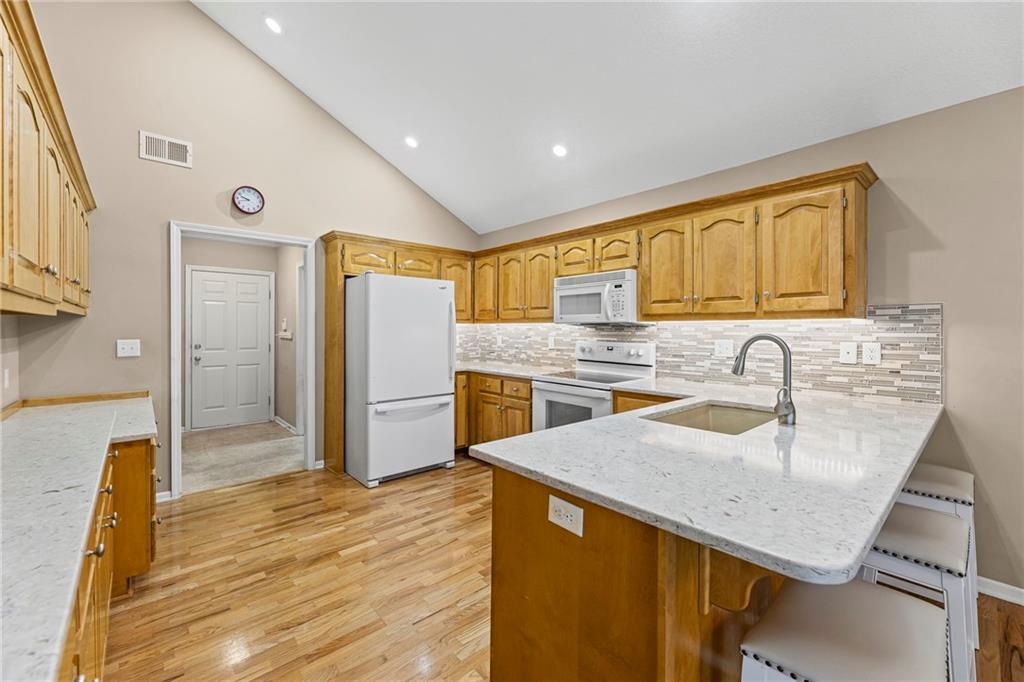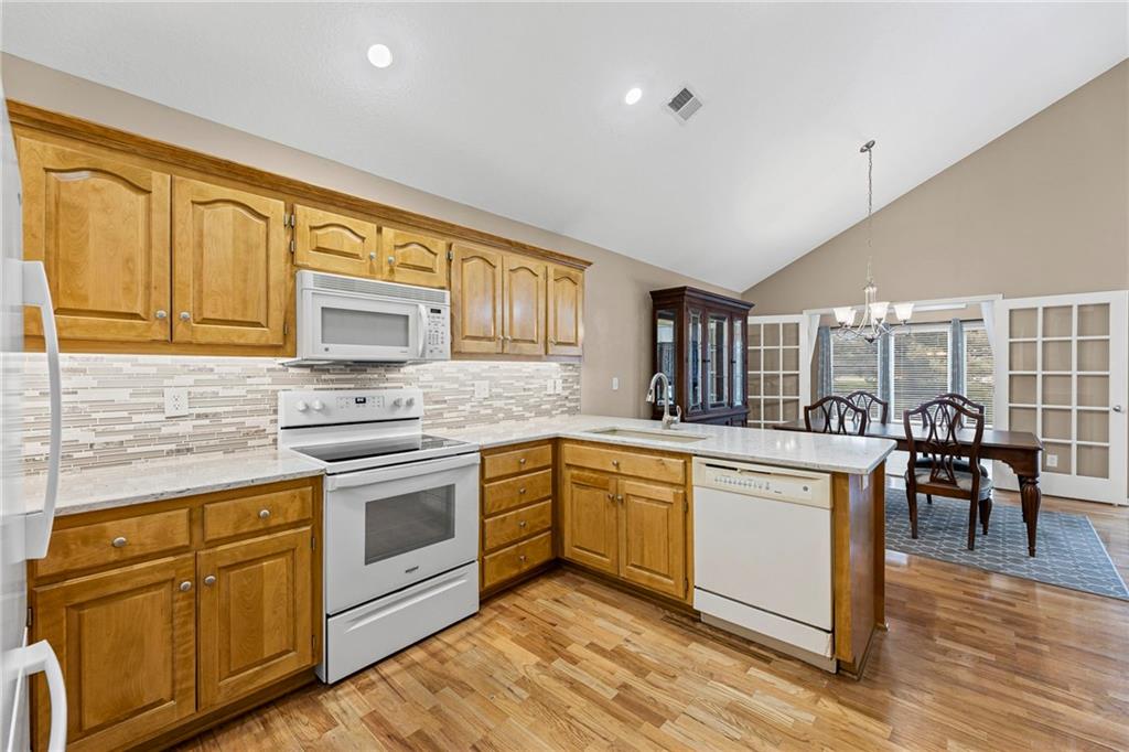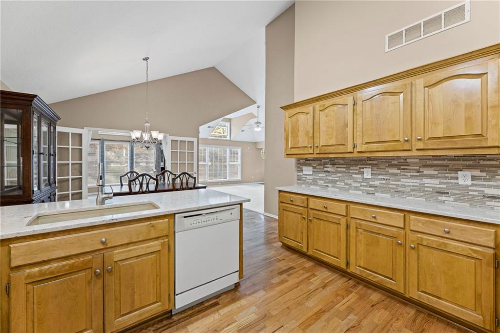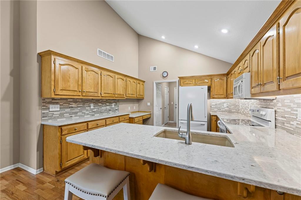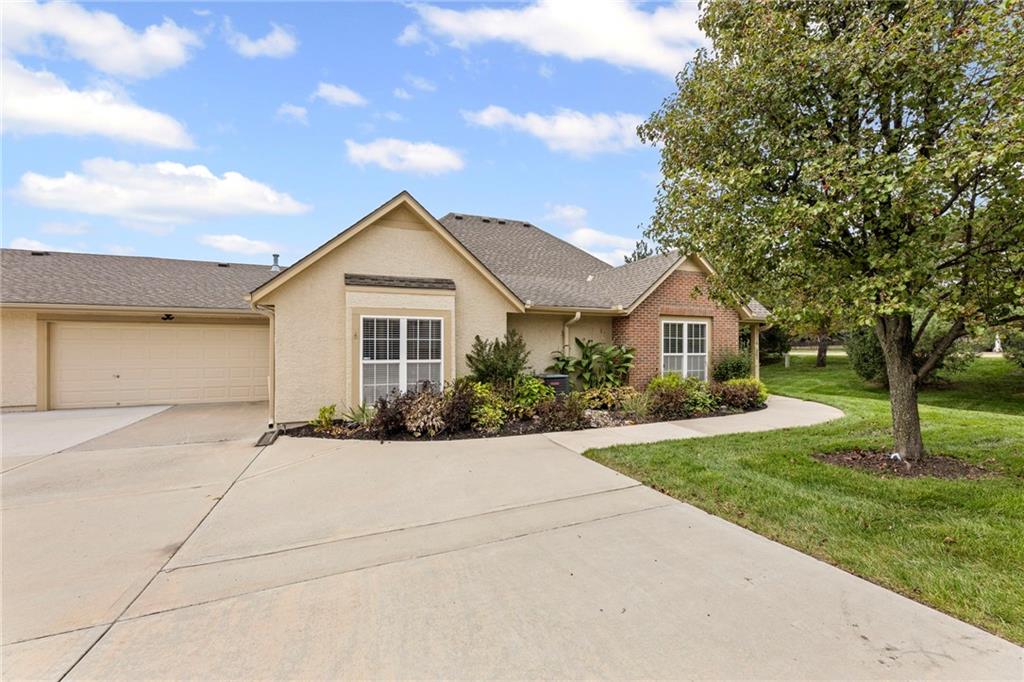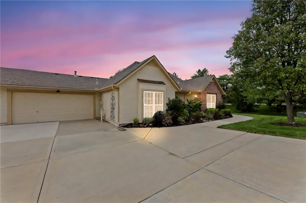 Enjoy the comfort and elegance of living in this fabulous one-level patio/villa with no steps! Located in the coveted St. James Court subdivision, a maintenance provided community with no age restrictions, this awesome home resides in the Blue Valley School District. It has a spacious open floor plan with an inviting atmosphere for relaxing and entertaining along with lofty ceilings that enhance the overall sense of openness and grandeur. The gleaming hardwood floors add a touch of sophistication reflecting natural light throughout the spaces while the elegant great room fireplace provides warmth and charm to this superb house. The terrific kitchen and adjoining dining area boasts plenty of quartz countertop space, stylish quartz backsplash, hardwoods, breakfast bar, lots of cabinets, u/c lighting, pantry, built-in desk. The impressive 16x18 great room showcases the fireplace, ceiling fan, carpeting and a wall of windows with lots of natural light. It has a versatile 12x13 sunroom for morning coffee, dining, relaxing and is equipped with tile flooring, vaulted ceiling, double french doors, c/fan, plenty of light. The primary suite features a sanctuary of comfort and elegance as it spotlights a spacious bedroom with carpeting, vaulted ceiling, c/fan along with an exquisite en-suite bathroom that includes d/v, ceramic tile, separate shower/tub and huge walk in closet providing a true oasis retreat. This gorgeous patio/villa offers one additional roomy bedroom and one more stylish full bathroom as well a laundry room off the kitchen for the ultimate convenience and comfort. This outstanding home spotlights other amazing features including thermal windows and sprinkler system plus all the kitchen appliances are staying too! Incredible HOA amenities include club house, exercise room, party room, swimming pool, trails, lawn maintenance, snow removal and many other items! Wonderful curb appeal, fantastic location along with nearby Blackbob and Heritage Parks!!