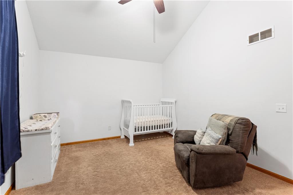 This beautifully maintained true ranch home features a spacious open floor plan and a host of modern upgrades. The updated kitchen boasts custom cabinetry, granite countertops, stylish fixtures, and designer lighting—perfect for both cooking and entertaining. The inviting living room showcases soaring vaulted ceilings, a striking stone fireplace, and gleaming hardwood floors, creating a warm and elegant atmosphere. Enjoy peaceful summer evenings on the serene back deck or unwind on the large front porch. The primary suite includes an updated bathroom with tiled floors and a luxurious walk-in shower. Located in the quiet and desirable Prairie Estates neighborhood, this home offers unbeatable highway access and is just steps from the elementary school—making it ideal for families and commuters alike!