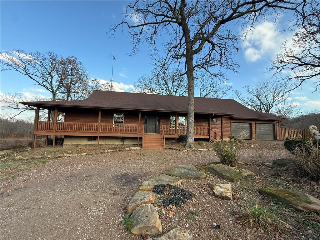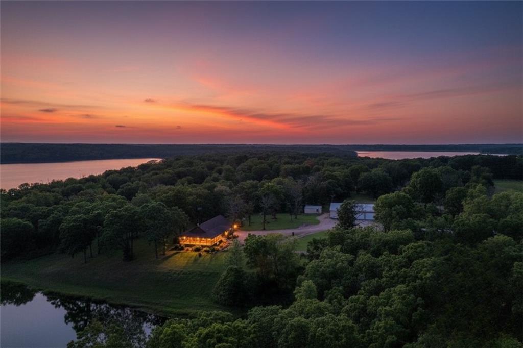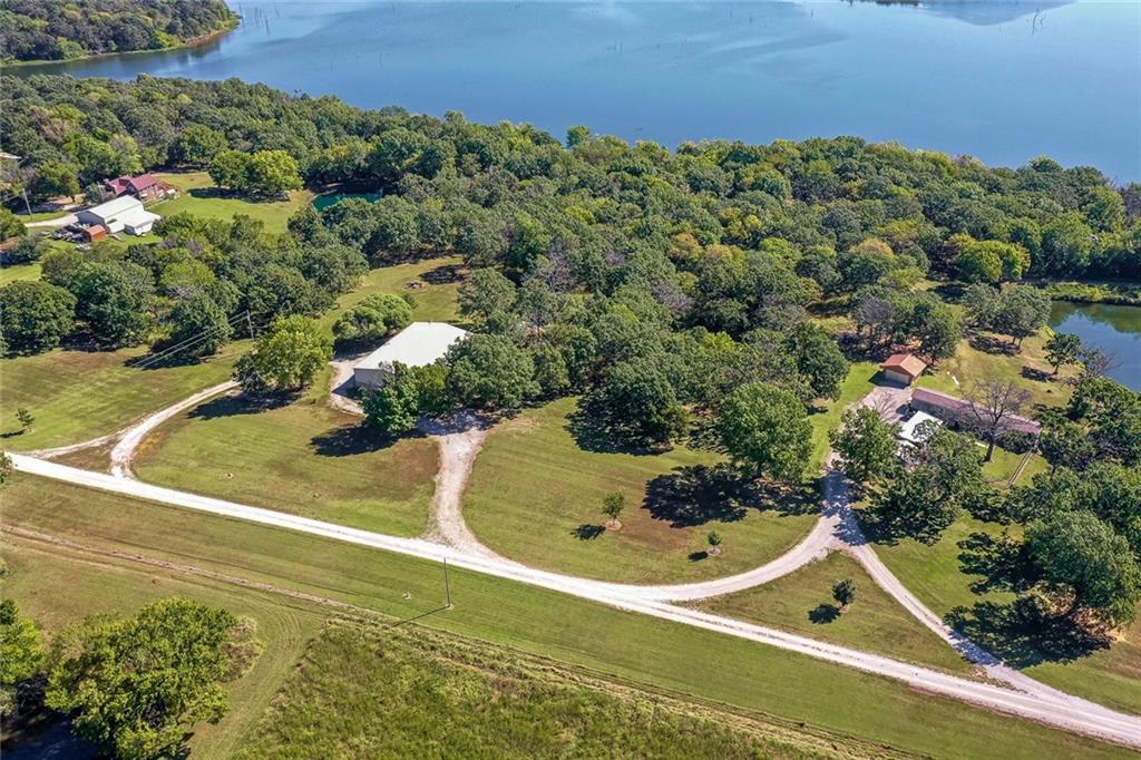 This second-tier Big Hill Lake property, still owned by the same family that built it, offers 26.4 acres with multiple residences, extensive shop space, and direct access to public land. The main home features cedar siding and 1,866 sq ft with 2 bedrooms, 3 bathrooms, a full basement, and an attached 2-car garage. The home includes a geothermal pond loop central heat and air system and a pellet heater for added comfort. The primary bedroom has its own private door leading to the wraparound porch, providing views of the trees and Big Hill Lake just beyond. The big heated and cooled 60×40 shop includes 3 large overhead doors, a bathroom, built-in workbenches, and shelving for tools, equipment, or projects. A fully enclosed horse shed provides space for livestock supplies or storage. The huge 75×50 shop offers full living quarters with central heat and air on the main level, complete with a kitchen and full bathroom, and an additional bedroom and half bath upstairs. This shop features three oversized overhead doors, a new 40’ radiant tube heater, and a wood-burning stove, making it ideal for vehicles, equipment, or multi-use workspace. A second residence on the property—a 1,280 sq ft single-wide home with 3 bedrooms and 2 bathrooms—adds flexibility for guests, extended family, or rental income. It includes a detached garage, carport, shed, and fenced yard. Outdoor features include a private pond with an estimated depth of 32 feet and a dock, perfect for fishing or recreation. The property also has its own natural gas well. More than half a mile of the land borders U.S. Army Corps of Engineers public use land surrounding Big Hill Lake, offering direct access to public ground and trails. This Cherryvale acreage provides a rare combination of lake proximity, multiple living spaces, outbuildings, and acreage—ideal for a homestead, retreat, or anyone needing substantial shop and storage space.
