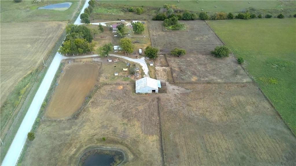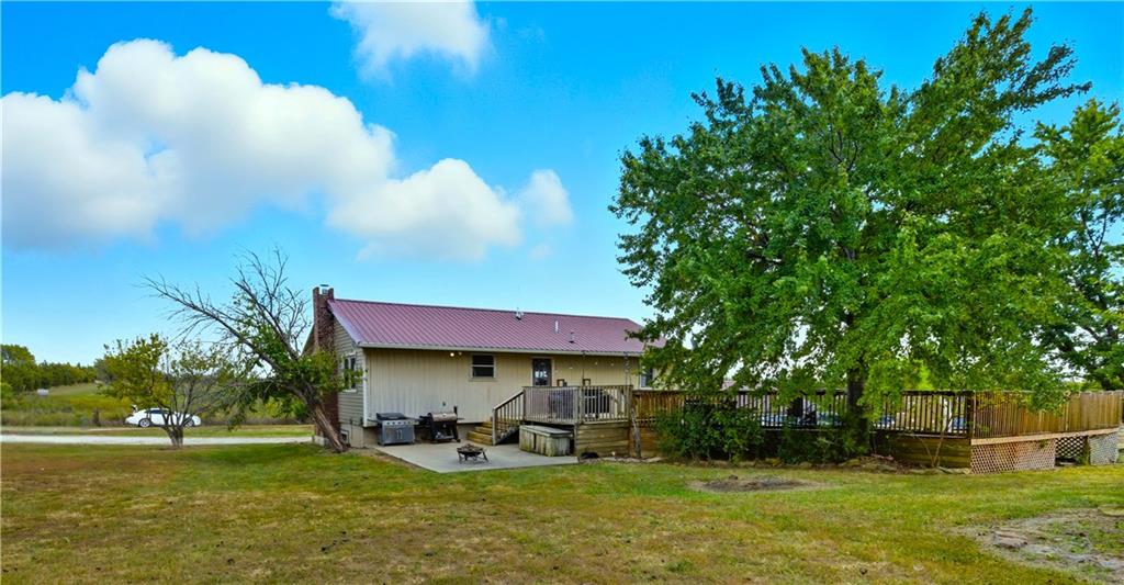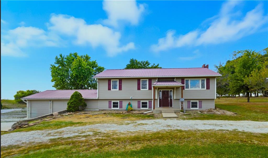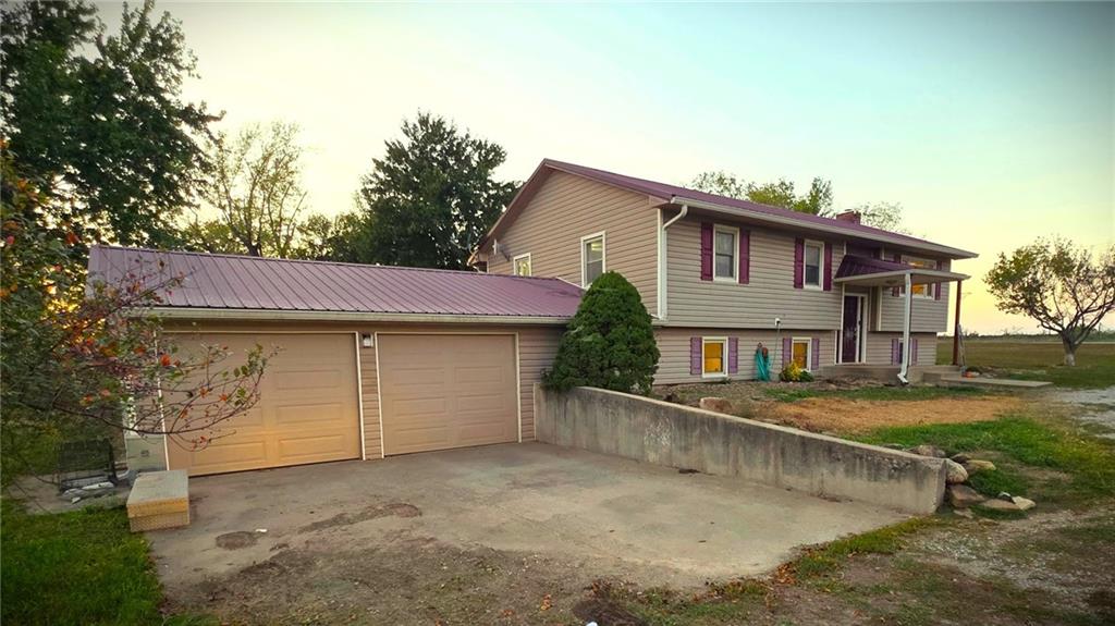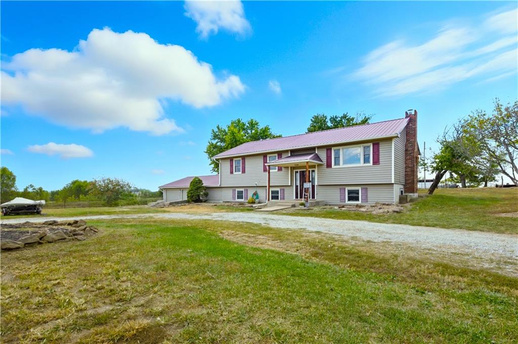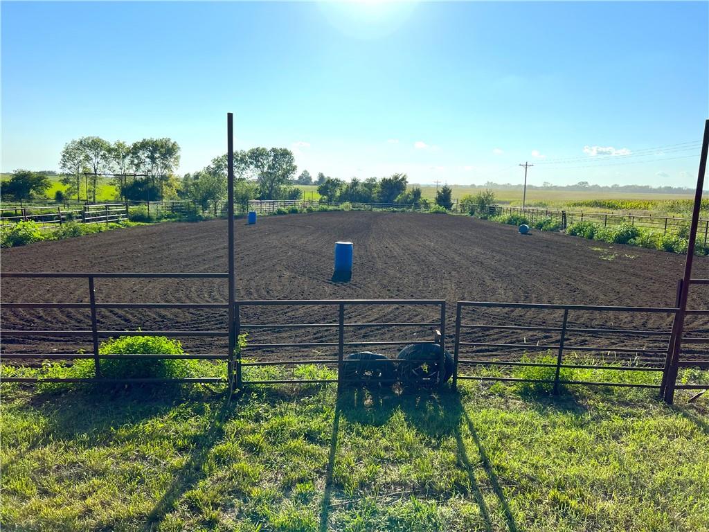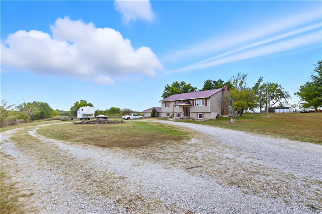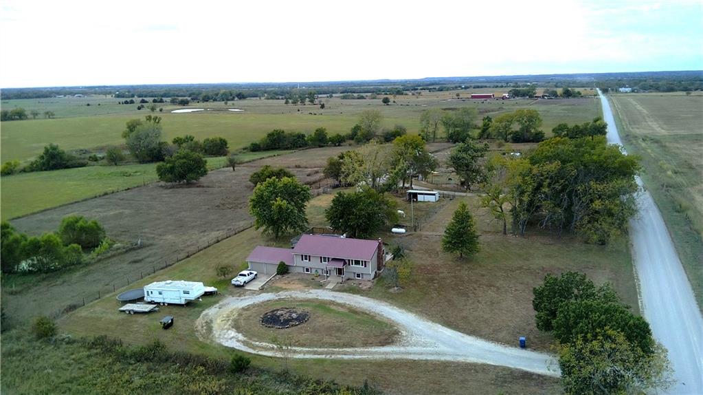 You'll find many year around favorites on this beautiful 10 acre property located just minutes north of Fort Scott with easy access to Hwy 69 offering a relaxing lifestyle with stunning panoramic views! Step into this updated 3 bedroom, 2 bath country inspired home with an open concept in the living, dining & kitchen areas where you'll find custom cabinetry, stained concrete countertops, luxury vinyl plank flooring & a vaulted ceiling throughout the space. Snuggle up to the wood burning fireplace on a cool evening or begin your day with your morning coffee & the breathtaking sunrise view from the large picture window. Two bedrooms & 1 bath is found on the main level, while the finished basement offers additional living space with updates of a family room, bedroom, full bath & laundry room. The bedroom on the lower level could easily serve as a 2nd master suite or split into a 4th bedroom due to the large flex space it provides. Access to the attached 24x32 2 car garage is found off the family room, keeping you dry on rainy days. While the sun is shining & it's warm outside, invite your friends to join you on the large deck for a pool party & BBQ, or sit around the fire pit on a cool evening. Bring your horses, cattle or other livestock along to utilize the 40x50 metal barn complete with a tac room, 5 stalls, 2 automatic heated waterers, piped runs on 2 stalls & a 230x96 piped riding arena with sand added to the soil, allowing for riding to occur regardless of weather. The acreage is fenced and ready for you to make it your own. If you like to fish or hunt, look no more! You'll find a stocked pond, deer, quail, turkey, rabbit, & other wildlife in abundance. If you are looking for a beautifully maintained home with space to spread out to enjoy nature, this home is for you. It's a must see!