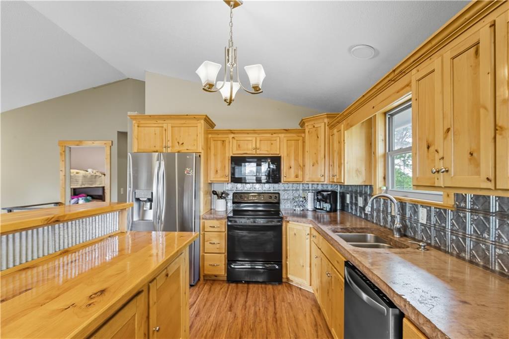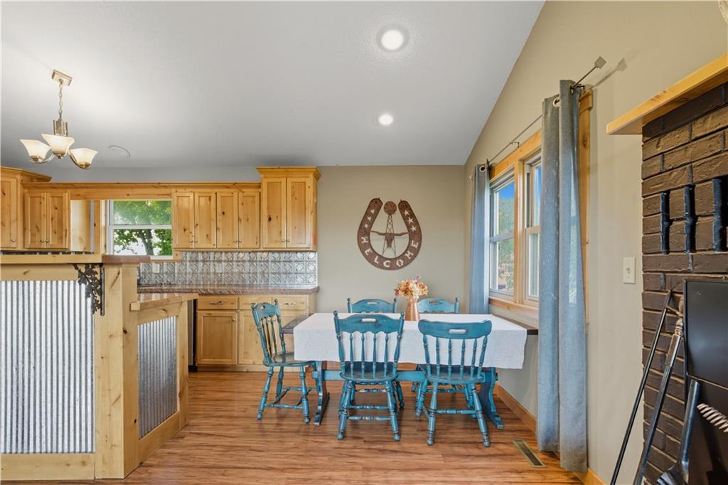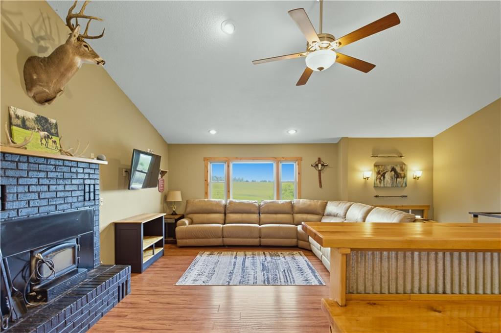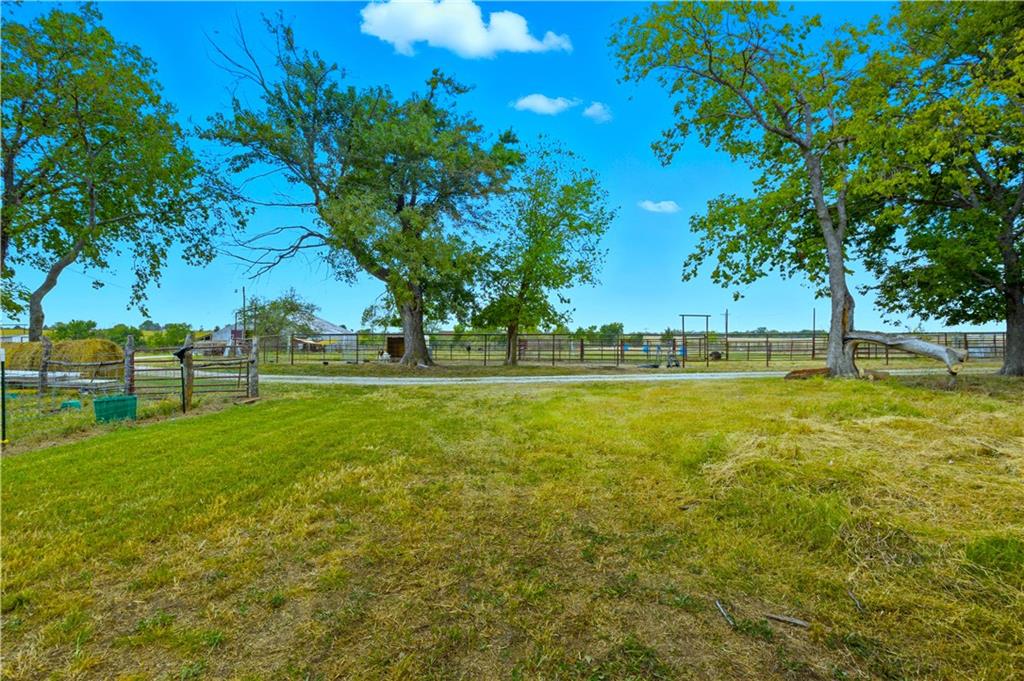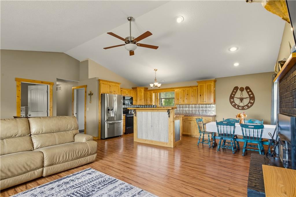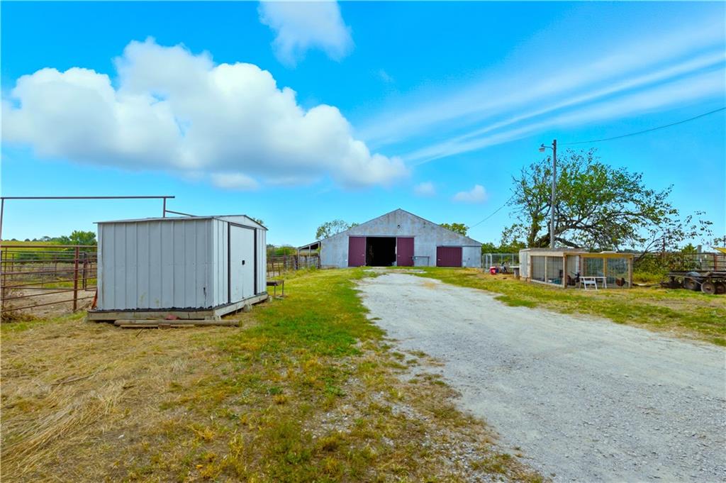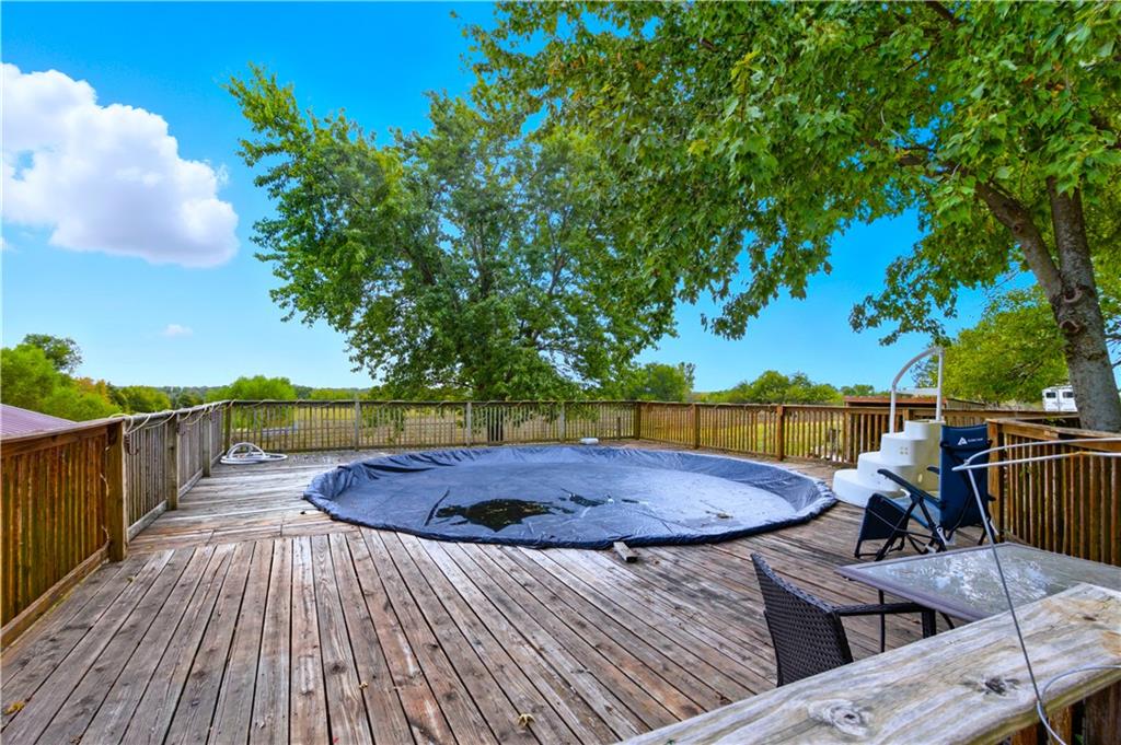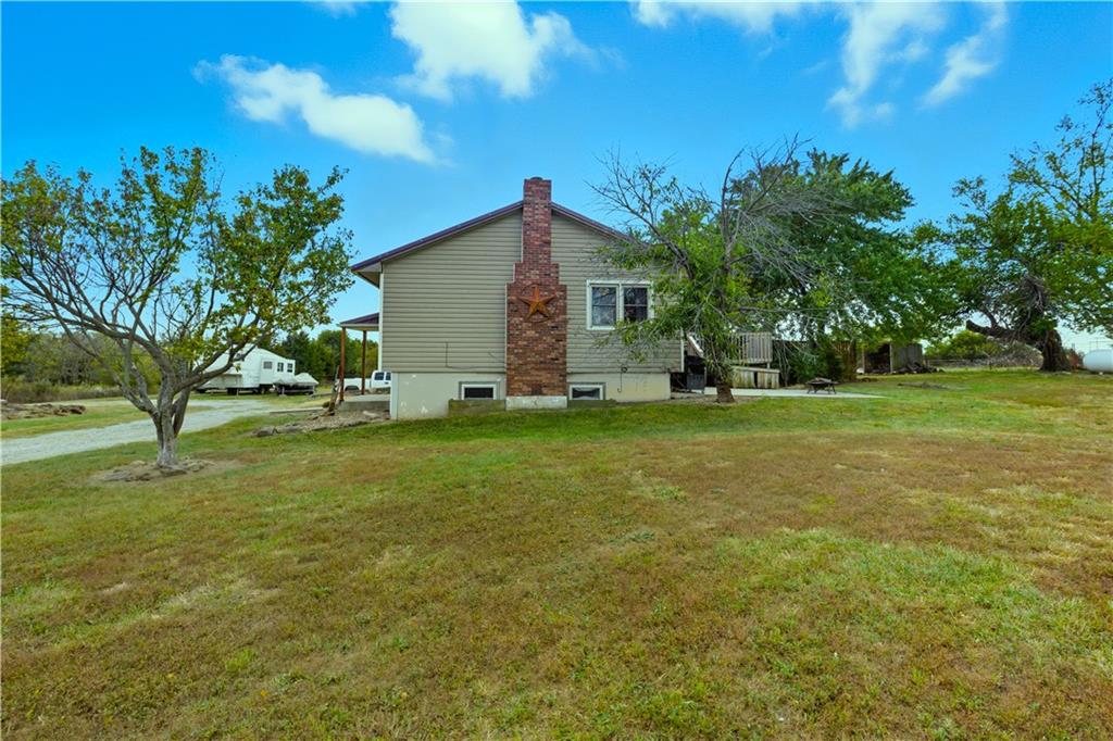 You'll find many year around favorites on this beautiful 10 acre property located just minutes north of Fort Scott with easy access to Hwy 69 offering a relaxing lifestyle with stunning panoramic views! Step into this updated 3 bedroom, 2 bath country inspired home with an open concept in the living, dining & kitchen areas where you'll find custom cabinetry, stained concrete countertops, luxury vinyl plank flooring & a vaulted ceiling throughout the space. Snuggle up to the wood burning fireplace on a cool evening or begin your day with your morning coffee & the breathtaking sunrise view from the large picture window. Two bedrooms & 1 bath is found on the main level, while the finished basement offers additional living space with updates of a family room, bedroom, full bath & laundry room. The bedroom on the lower level could easily serve as a 2nd master suite or split into a 4th bedroom due to the large flex space it provides. Access to the attached 24x32 2 car garage is found off the family room, keeping you dry on rainy days. While the sun is shining & it's warm outside, invite your friends to join you on the large deck for a pool party & BBQ, or sit around the fire pit on a cool evening. Bring your horses, cattle or other livestock along to utilize the 40x50 metal barn complete with a tac room, 5 stalls, 2 automatic heated waterers, piped runs on 2 stalls & a 230x96 piped riding arena with sand added to the soil, allowing for riding to occur regardless of weather. The acreage is fenced and ready for you to make it your own. If you like to fish or hunt, look no more! You'll find a stocked pond, deer, quail, turkey, rabbit, & other wildlife in abundance. If you are looking for a beautifully maintained home with space to spread out to enjoy nature, this home is for you. It's a must see!