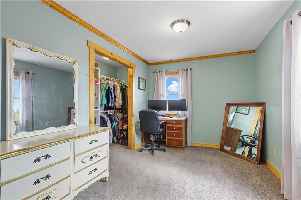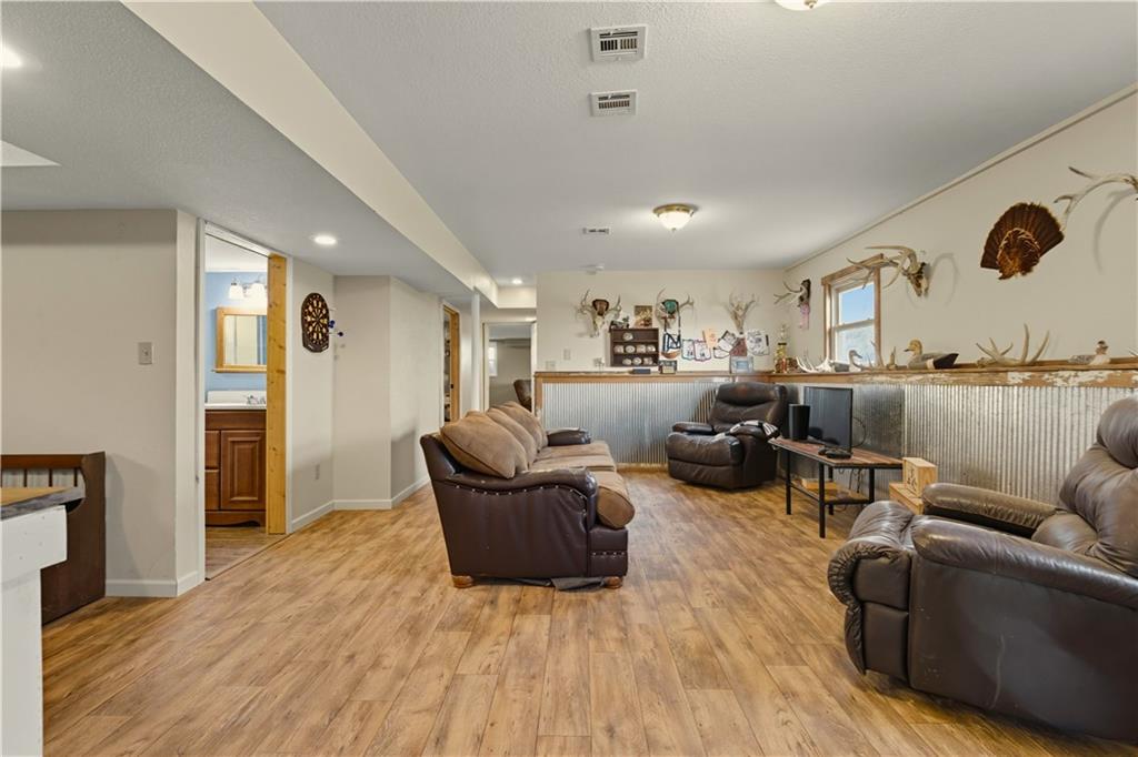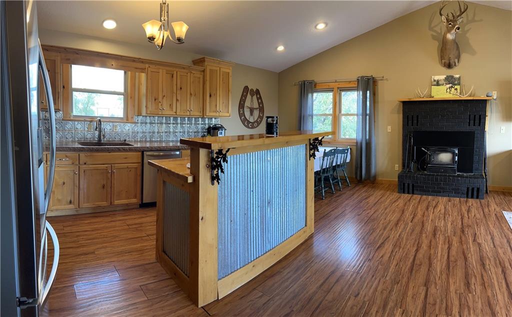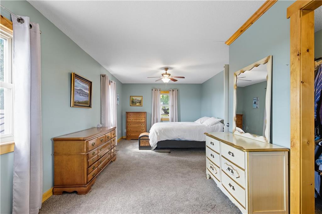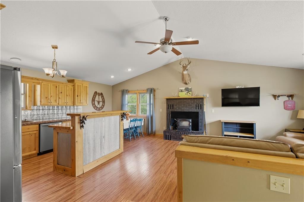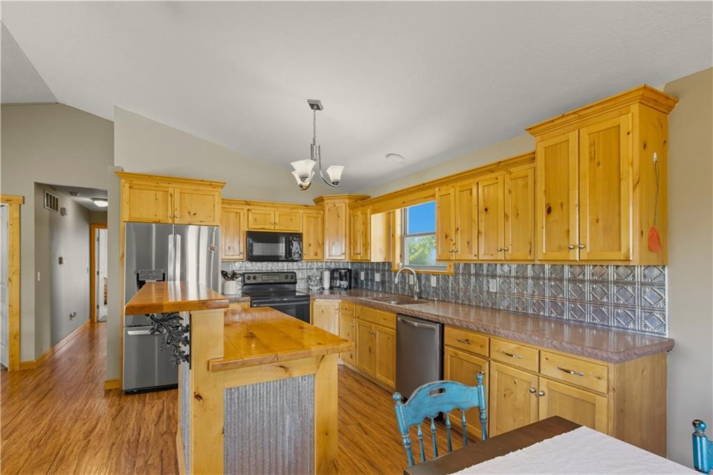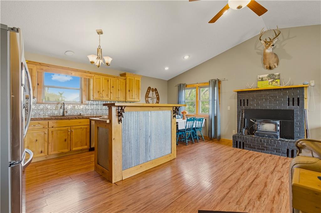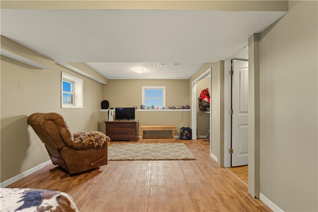 You'll find many year around favorites on this beautiful 10 acre property located just minutes north of Fort Scott with easy access to Hwy 69 offering a relaxing lifestyle with stunning panoramic views! Step into this updated 3 bedroom, 2 bath country inspired home with an open concept in the living, dining & kitchen areas where you'll find custom cabinetry, stained concrete countertops, luxury vinyl plank flooring & a vaulted ceiling throughout the space. Snuggle up to the wood burning fireplace on a cool evening or begin your day with your morning coffee & the breathtaking sunrise view from the large picture window. Two bedrooms & 1 bath is found on the main level, while the finished basement offers additional living space with updates of a family room, bedroom, full bath & laundry room. The bedroom on the lower level could easily serve as a 2nd master suite or split into a 4th bedroom due to the large flex space it provides. Access to the attached 24x32 2 car garage is found off the family room, keeping you dry on rainy days. While the sun is shining & it's warm outside, invite your friends to join you on the large deck for a pool party & BBQ, or sit around the fire pit on a cool evening. Bring your horses, cattle or other livestock along to utilize the 40x50 metal barn complete with a tac room, 5 stalls, 2 automatic heated waterers, piped runs on 2 stalls & a 230x96 piped riding arena with sand added to the soil, allowing for riding to occur regardless of weather. The acreage is fenced and ready for you to make it your own. If you like to fish or hunt, look no more! You'll find a stocked pond, deer, quail, turkey, rabbit, & other wildlife in abundance. If you are looking for a beautifully maintained home with space to spread out to enjoy nature, this home is for you. It's a must see!