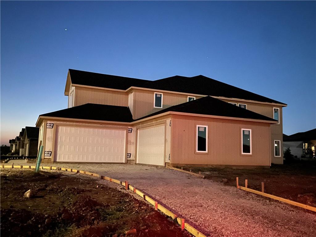 Unparalleled Luxury for Multi-Generational Living in WaterCrest Landing! Welcome to a new standard of luxury, a magnificent new construction residence nestled in Lenexa's prestigious WaterCrest Landing. This custom-built home, known as the "NextGen" model by MVP Inc., is a masterpiece of traditional elegance and thoughtful, future-proof design, perfectly catering to multi-generational households. Arrive in style via the circle drive, offering a distinguished and welcoming first impression. Step inside to an atmosphere of timeless sophistication, where soaring ceilings and an open-concept layout create an immediate sense of light and grandeur. The true brilliance of this home is its exceptional floor plan, meticulously crafted for comfortable generational living. The main level is a study in convenience and luxury, featuring not one, but two dedicated master suites. The primary master is a secluded retreat, while a private second master suite offers a spacious bedroom, full en-suite bath, and its own separate living area—the ideal arrangement for extended family, guests, or live-in assistance. Upstairs, a generous loft area opens to an elevated balcony, providing a beautiful space for relaxation or entertaining, while two additional bedrooms and another full bath complete the second floor. With a total of 5 bedrooms and 3.5 baths spread across 3,460 square feet, this residence seamlessly blends high-end finishes with practical functionality. Enjoy gourmet moments in the chef's kitchen, featuring custom cabinets, a large island, and quartz countertops, which flows effortlessly into the main living area with a cozy fireplace. Discover the pinnacle of sophisticated, flexible family living in the maintenance-provided luxury of WaterCrest Landing, conveniently located near Lake Lenexa and Black Hoof Park. Your stunning new home awaits.