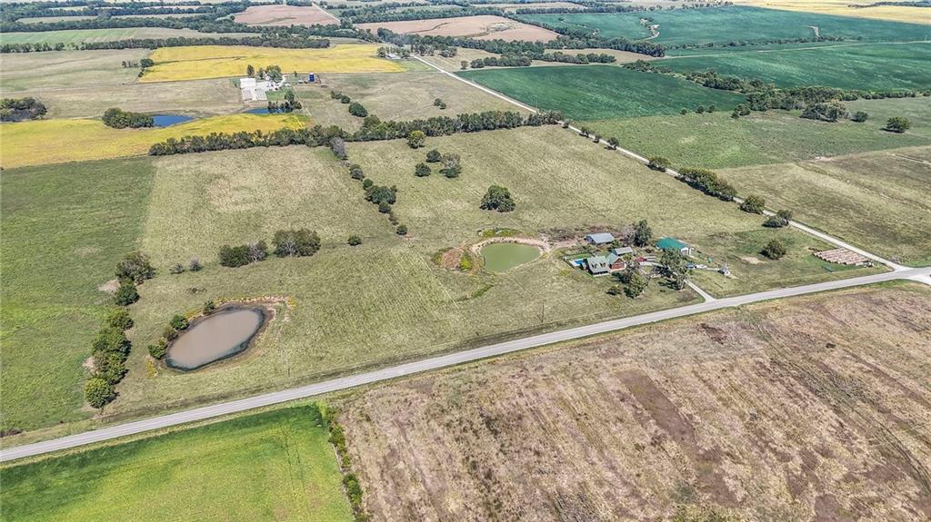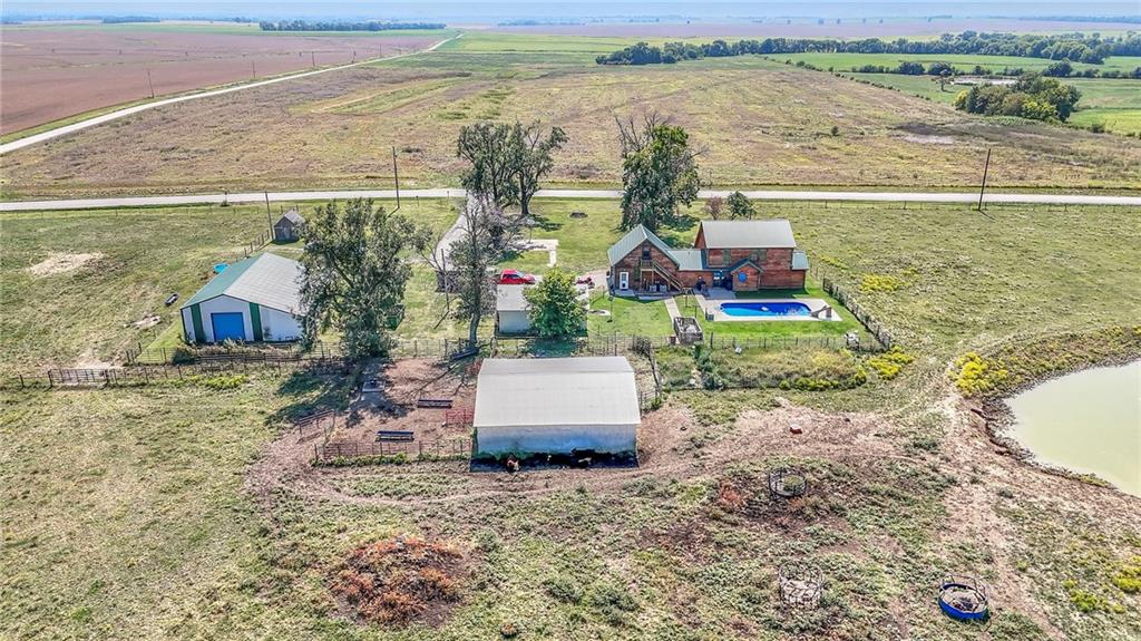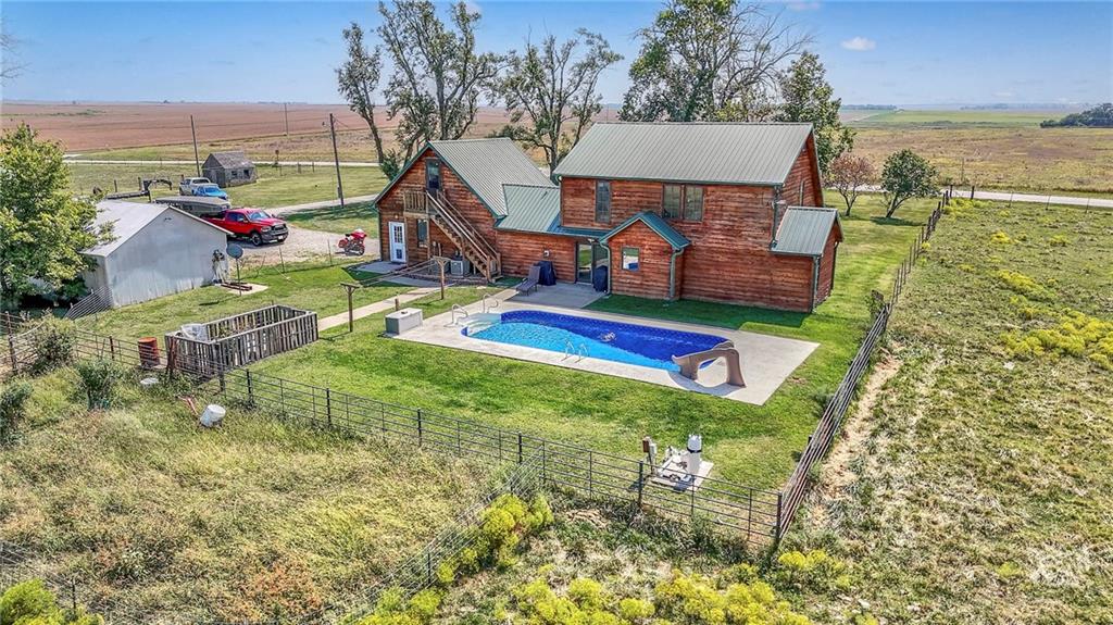 Escape to your own private retreat located on 40 acres, directly off of a paved road. This charming cedar-sided home offers a classic, timeless aesthetic with natural warmth and character, combining the best of country living with a move-in-ready home. Imagine waking up to wonderful views in every direction and ending the day on a spacious 30'x10' covered front porch, enjoying the quiet sitting on your expansive land. This is the perfect setting for those seeking tranquility, privacy, or those who love the great outdoors, whether for farming, equestrian pursuits, or simply relaxing by a bonfire under the stars. Offering 3 bedrooms and 3 bathrooms, wood floors, loft area, unfinished separate office/craft room above the garage, and a 3'-8.5' deep in ground saltwater pool for relaxation! This home has zoned HVAC and a pellet stove for aux heat. Multiple outbuildings offer ample storage and workshop potential, with a 28' x 52' insulated outbuilding which has 220V, 200-amp service, concrete floor, (2) 12'w 10'h doors, and a 10' lean-to as well as four other outbuildings which are 40'x40', 20'x30', 16'x30', & 34'x34'. Acreage is fenced, there is a pipe corral and pipe gates, water is available between ponds and there is water to the outbuildings. The office/craft room is an unfinished room above garage currently used for storage but could easily be finished into livable space. All kitchen appliances stay with the home.