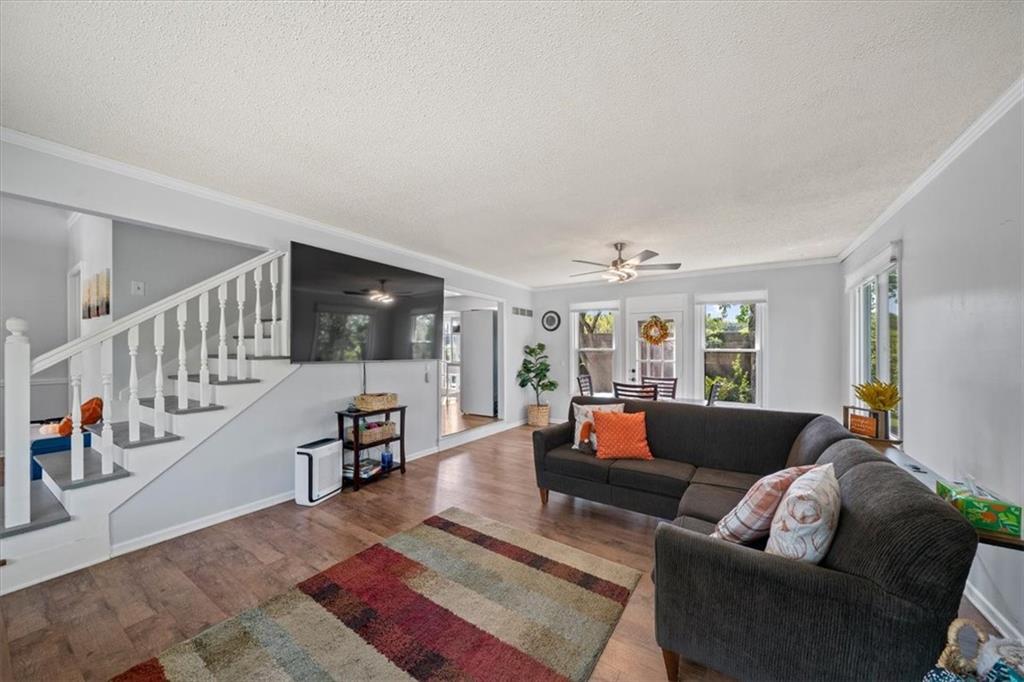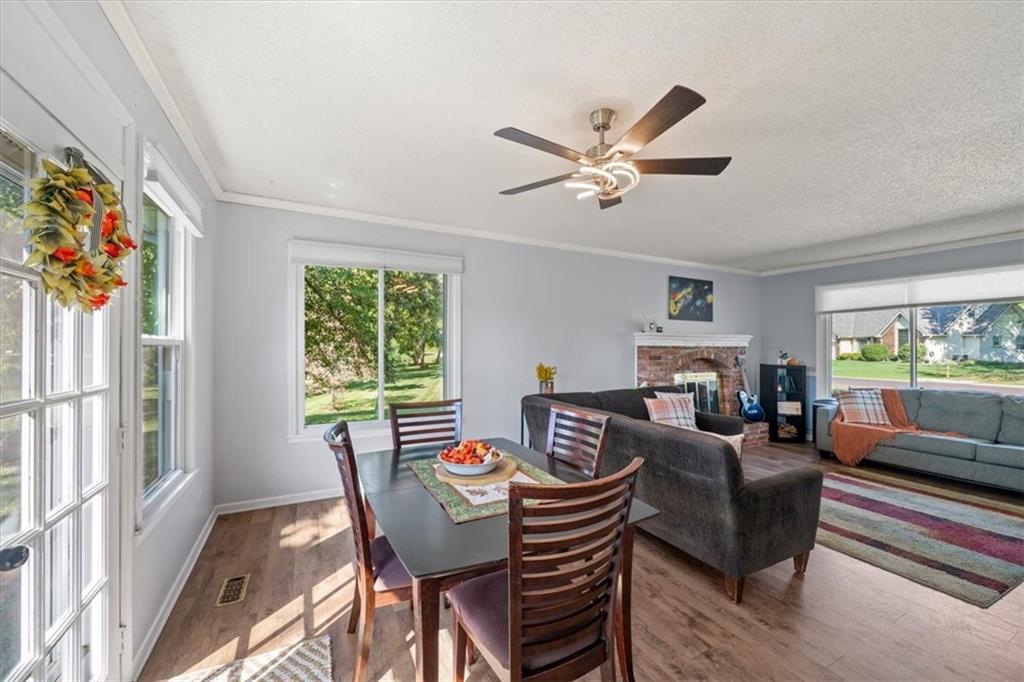 Welcome to Oak Park Manor. This 1.5-story home offers an excellent opportunity to build equity in one of Overland Park’s most convenient locations. The home sits adjacent to the neighborhood micro-park, soon to feature new playground equipment, providing a wonderful outdoor extension for play and relaxation. Inside, you’ll find a spacious family room with all new windows, a brick fireplace, and an open layout that flows into the generous sized kitchen - perfect for entertaining. The kitchen provides abundant counter space, cabinetry, and room to gather. The main level also features the primary suite with two large closets, a full bath, and a versatile bonus room ideal for an office, nursery, or sitting area (also has it's own closet and could easily serve as a true 4th bedroom). The floor plan offers true functionality with main-floor laundry, a double side-entry garage, and a flat driveway ideal for bikes or basketball. Upstairs are two additional bedrooms and a full bath. The unfinished lower level allows room for future expansion or ample storage. Recent updates include new interior paint, newer roof (approximately 4 years old), and all new windows. Light, bright, and ready for new owners, this home combines comfort and potential in a sought-after setting. This home backs to 435 and there is road noise when approaching the property. Inside the home, noise is significantly reduced due to the new windows, but if traffic noise is a deal breaker, this is likely not the one for you. If we could adjust the location, we certainly would It is priced accordingly and represents a strong value for size, location, and potential. Enjoy easy access to parks, trails, schools, shopping, restaurants, and healthcare, all just minutes away.