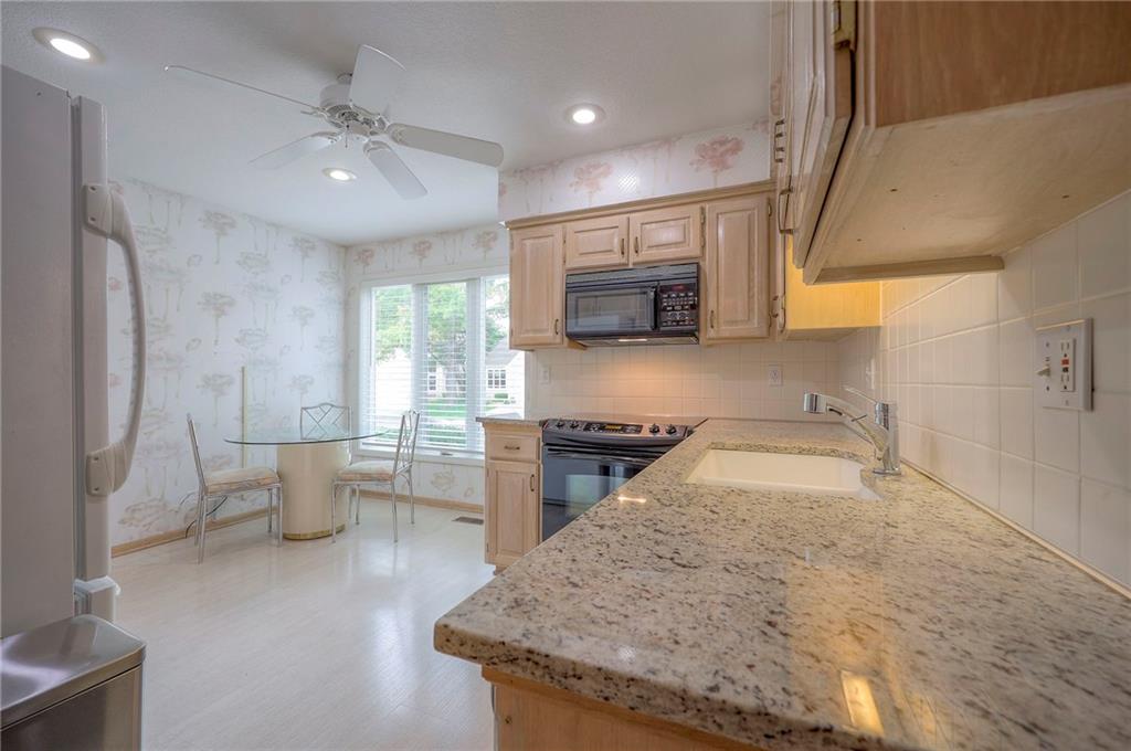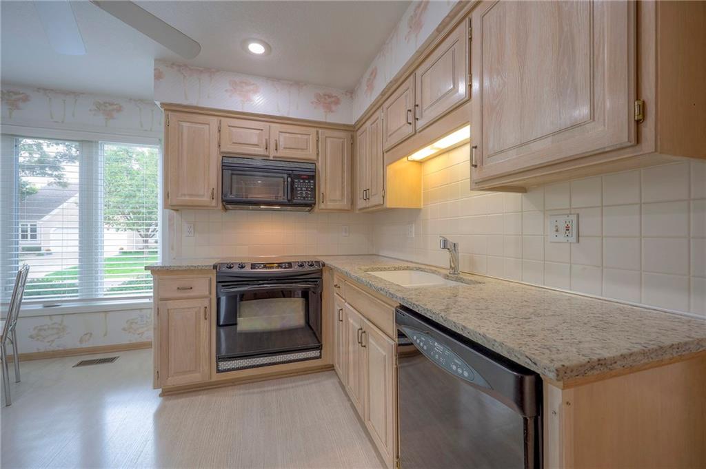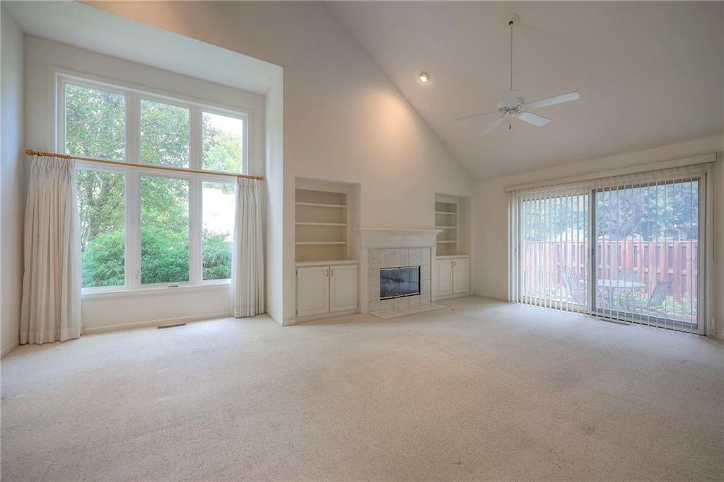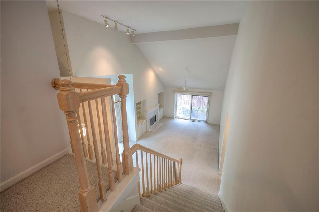 Welcome Home to this BRIGHT and OPEN three bedroom townhome in sought after Hampton Court at Nottingham. The ultimate in main level living combined with the convenience of the maintenance provided subdivision creates an incredible opportunity to make this property your own. Not to miss features include a great room with soaring ceilings, cozy gas log fireplace w/ adjacent built-in shelving, an eat-in kitchen with great cabinet space, and a private patio for relaxing fall evenings. The generous Primary Suite features double vanity, separate tub/shower, and a walk-in closet. Second bedroom, a full hallway bathroom, and laundry space round out the main floor. Upstairs you will find a flexible landing space, along with the third bedroom and dedicated full bathroom (perfect for guests or visiting family!). The unfinished basement currently houses a work bench/storage shelving and offers over 1,300 square feet of potential living space. HVAC system replaced in 2022 (w/transferable five year warranty) and all appliances STAY with the home. Incredible community amenities include a clubhouse, swimming pool, and an active social calendar. Kensington Park is just a block away and features walking trails, tennis courts, and green space. Super convenient to highways, shopping, and everything Overland Park has to offer. Welcome Home!