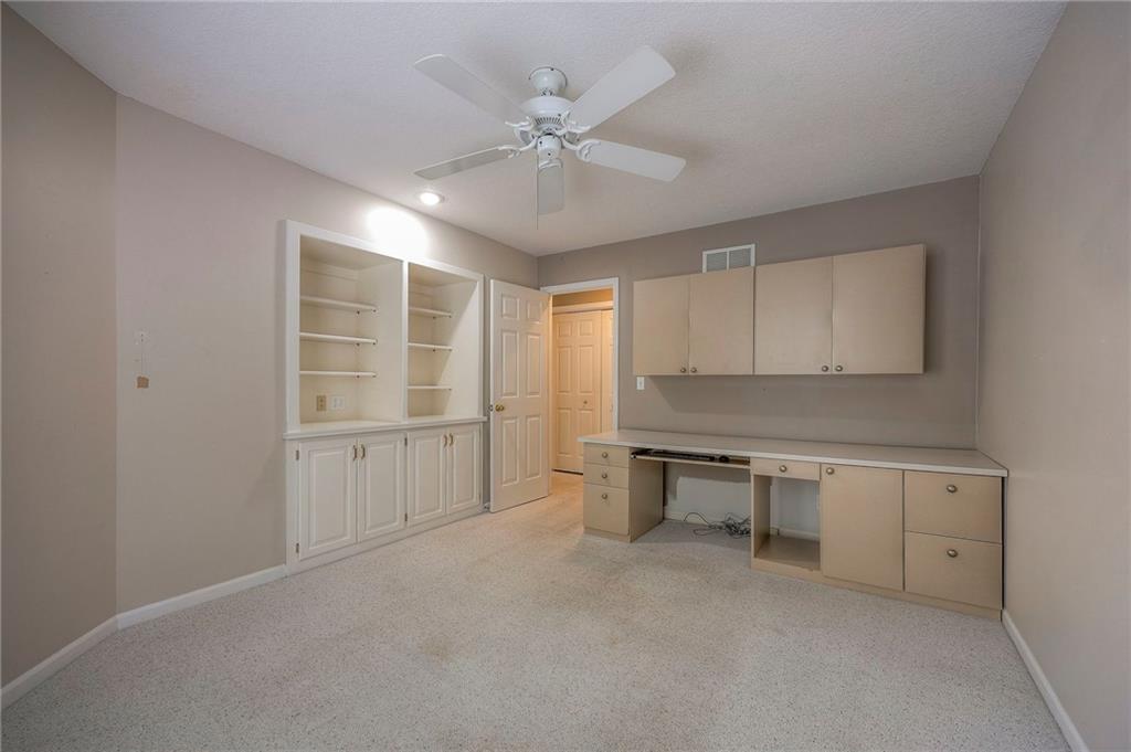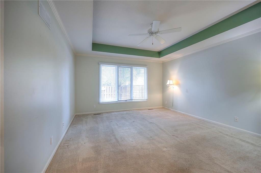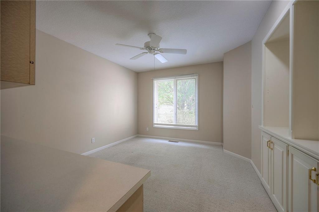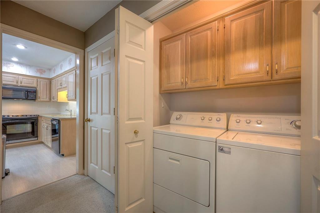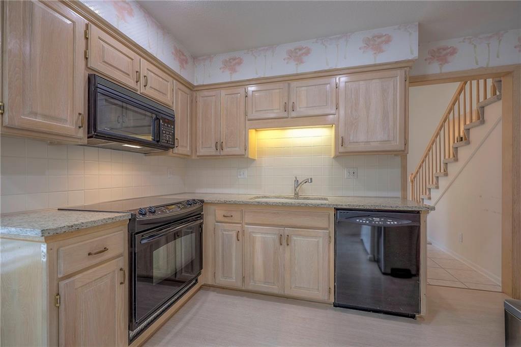 Welcome Home to this BRIGHT and OPEN three bedroom townhome in sought after Hampton Court at Nottingham. The ultimate in main level living combined with the convenience of the maintenance provided subdivision creates an incredible opportunity to make this property your own. Not to miss features include a great room with soaring ceilings, cozy gas log fireplace w/ adjacent built-in shelving, an eat-in kitchen with great cabinet space, and a private patio for relaxing fall evenings. The generous Primary Suite features double vanity, separate tub/shower, and a walk-in closet. Second bedroom, a full hallway bathroom, and laundry space round out the main floor. Upstairs you will find a flexible landing space, along with the third bedroom and dedicated full bathroom (perfect for guests or visiting family!). The unfinished basement currently houses a work bench/storage shelving and offers over 1,300 square feet of potential living space. HVAC system replaced in 2022 (w/transferable five year warranty) and all appliances STAY with the home. Incredible community amenities include a clubhouse, swimming pool, and an active social calendar. Kensington Park is just a block away and features walking trails, tennis courts, and green space. Super convenient to highways, shopping, and everything Overland Park has to offer. Welcome Home!