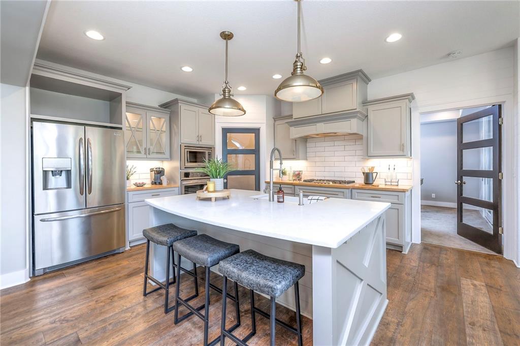 This exceptional custom-built 1.5-story home by JS Robinson offers a rare blend of thoughtful design and timeless craftsmanship. Situated in the desirable Bristol Ridge subdivision, the home features wide-plank hardwood floors, a spacious great room with a masonry fireplace, and a well-appointed kitchen with granite and butcher block countertops, stainless steel appliances, an oversized walk-in pantry, and a charming built-in breakfast nook with shiplap and bench seating. With 6 true bedrooms, including one that functions beautifully as a private home office, this home provides flexibility for a variety of lifestyles. The main-floor primary suite includes a spa-inspired en suite. The main level also includes a dedicated laundry room and access to a screened-in patio with privacy and sun protecting drapery— perfect for enjoying peaceful evenings. Upstairs, a bonus loft offers versatile space for a second living area, playroom, or study. The finished lower level includes an additional great room, a sixth bedroom, and a full bathroom—ideal for guests or extended family. The backyard backs to shared green space, creating a sense of openness and privacy that is hard to find. Custom finishes and thoughtful details continue throughout this stunning home.