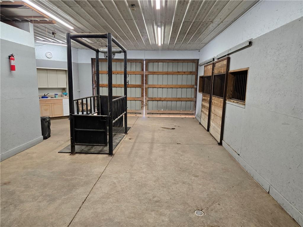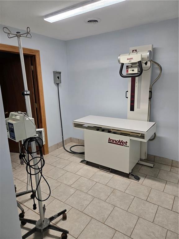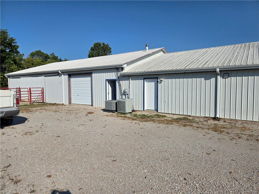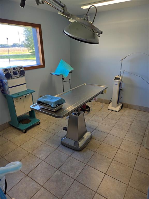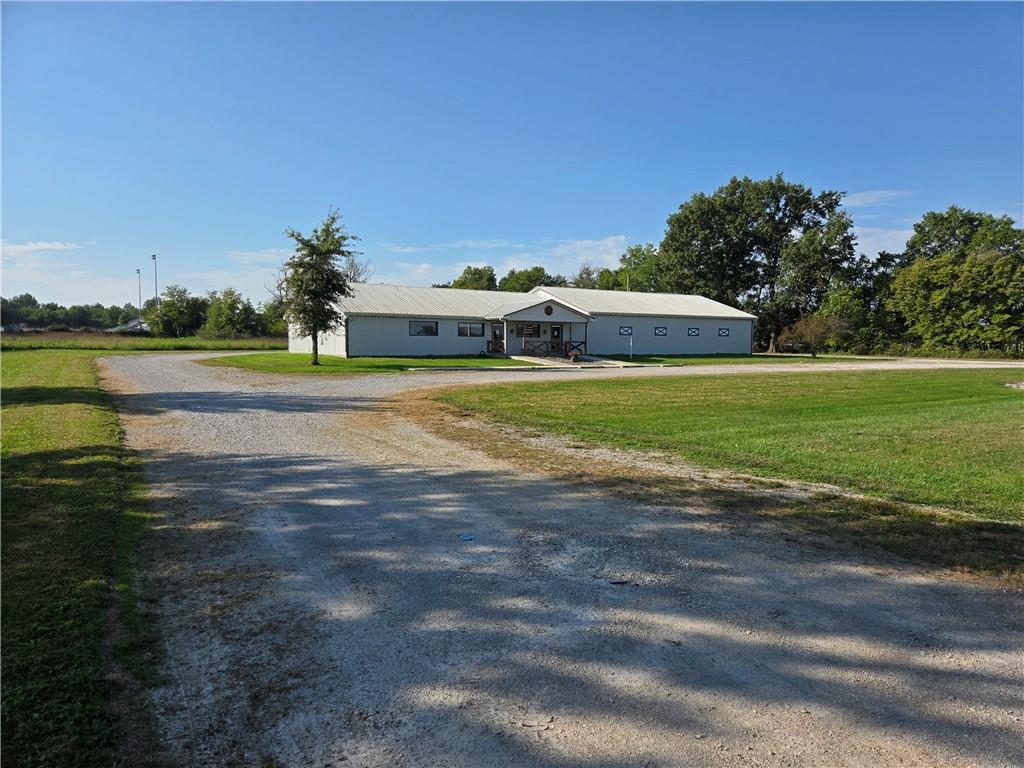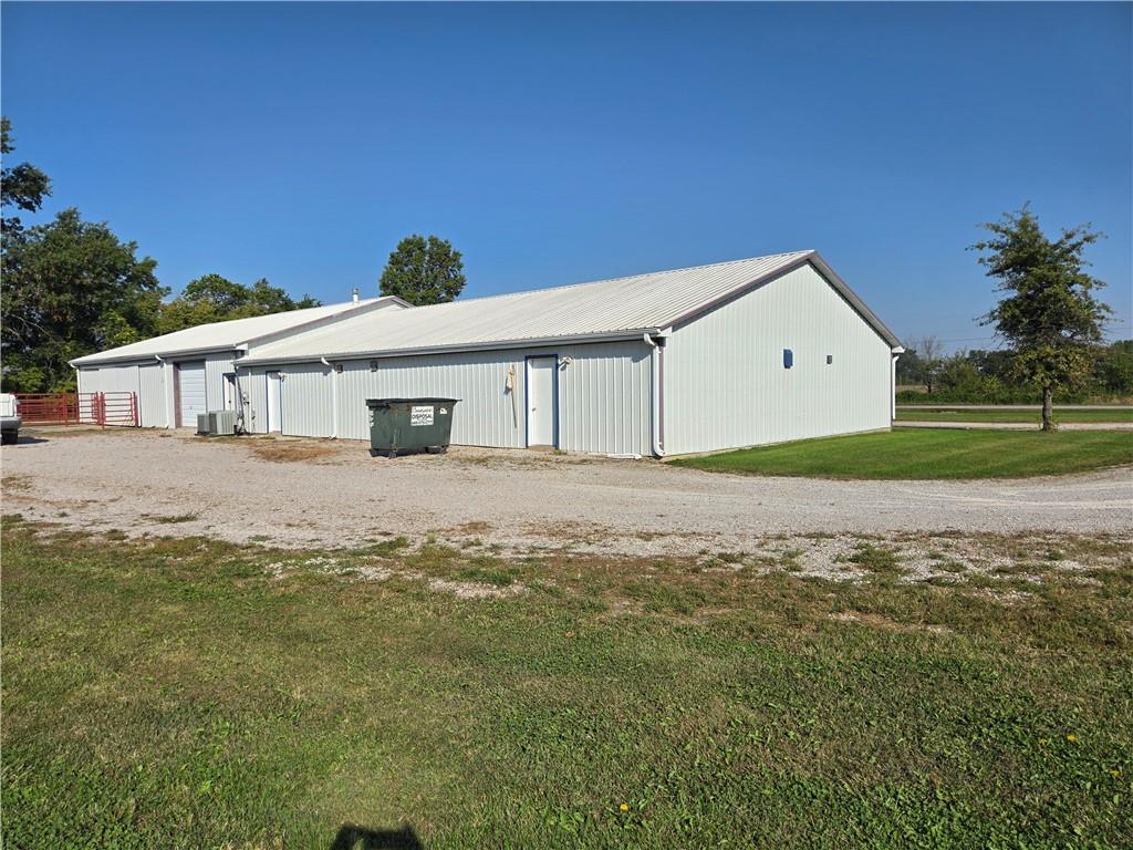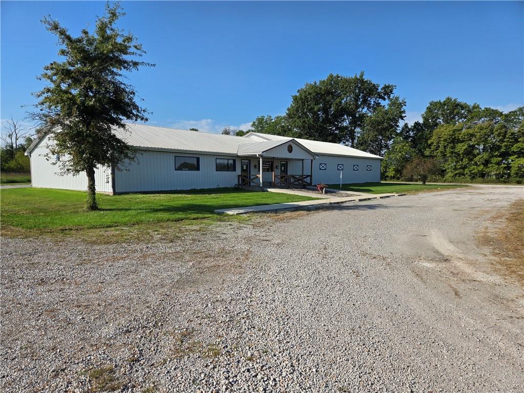 Commercial building space in Adrian, Missouri. Just 1/2 a mile East of Interstate 49. This 42x120 foot building (5,040 SQ ft) sits on 3 acres. It is currently set up as a large and small animal vet clinic. It has public and private entry. Large exterior doors for utility purposes.The building is free span so any and all interior walls can be removed to suit your business needs. Special consideration for building contents if you wish to purchase as a clinic. Large circle drive for easy access.