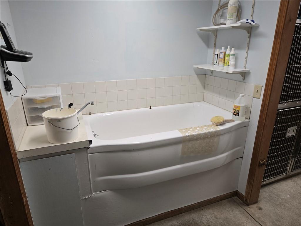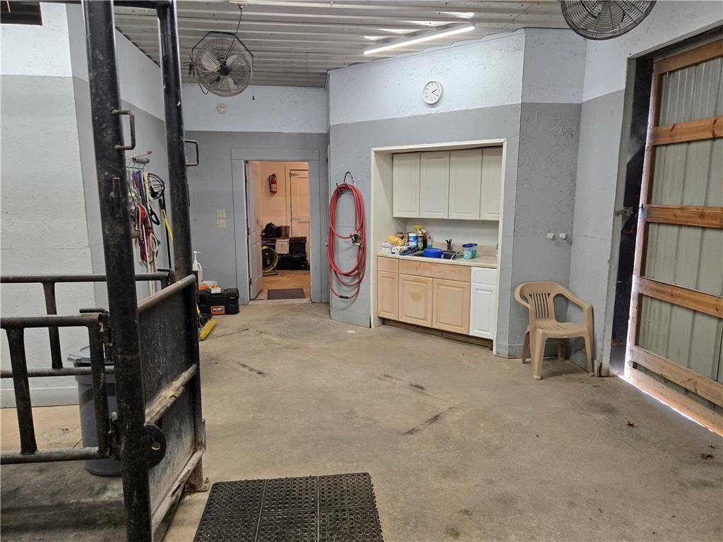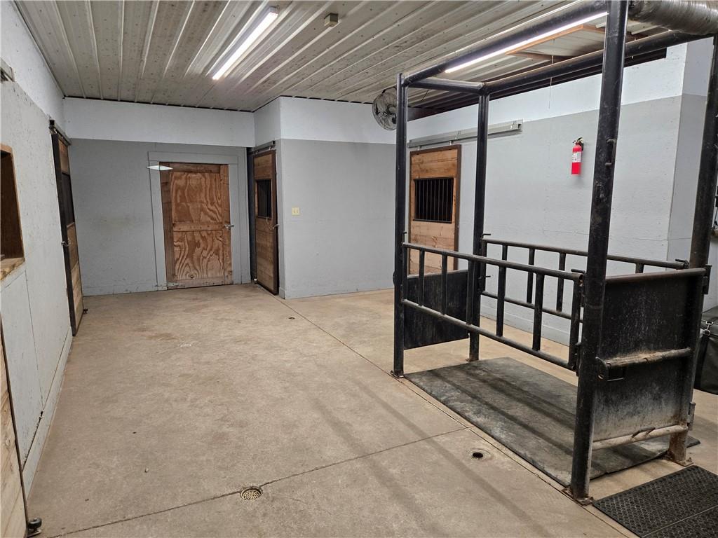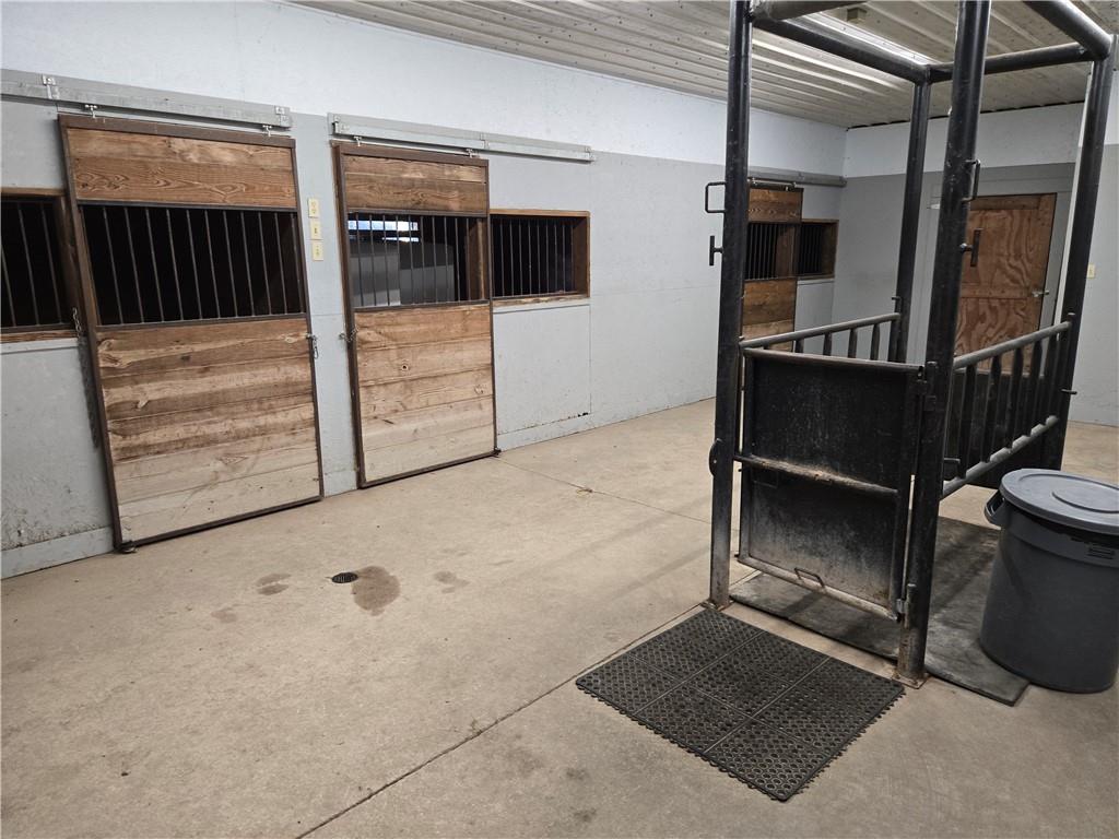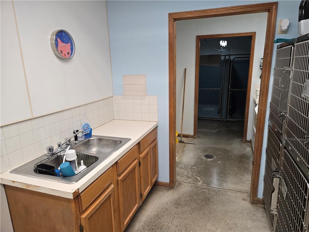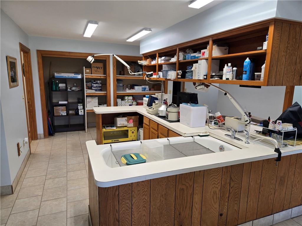 Commercial building space in Adrian, Missouri. Just 1/2 a mile East of Interstate 49. This 42x120 foot building (5,040 SQ ft) sits on 3 acres. It is currently set up as a large and small animal vet clinic. It has public and private entry. Large exterior doors for utility purposes.The building is free span so any and all interior walls can be removed to suit your business needs. Special consideration for building contents if you wish to purchase as a clinic. Large circle drive for easy access.