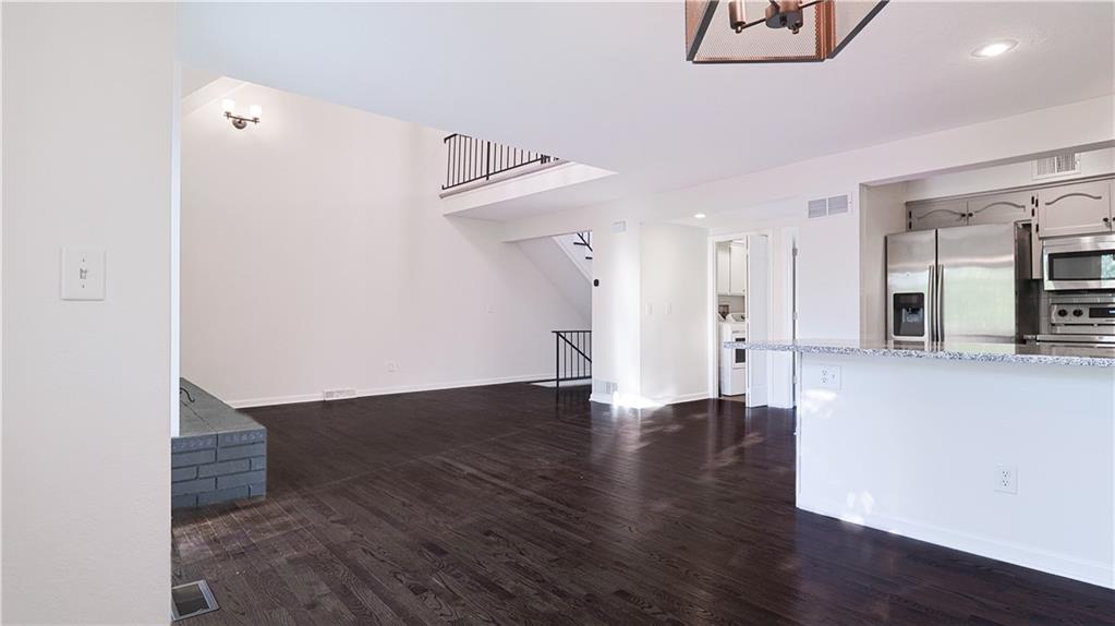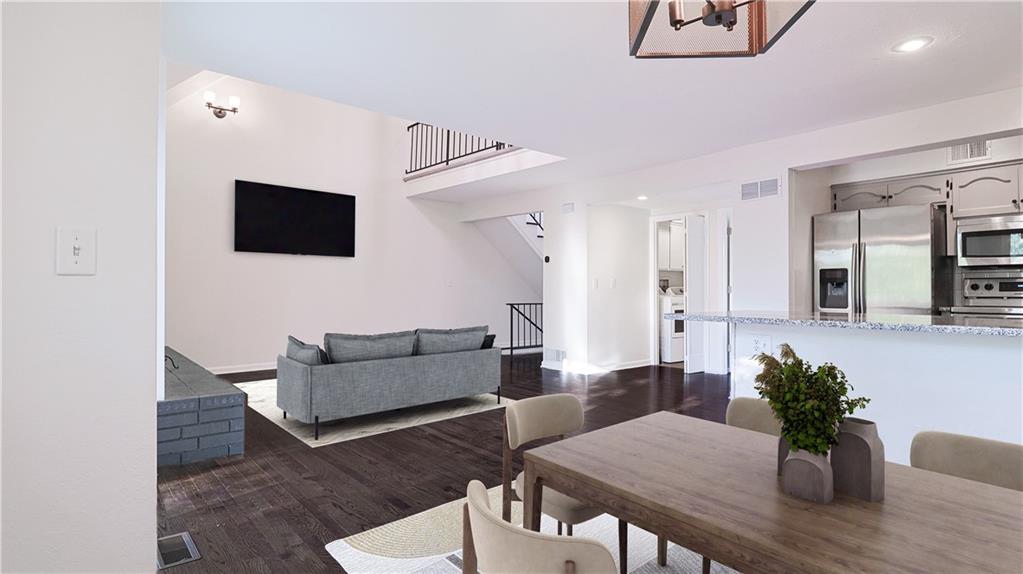 Bright, stylish, and move-in ready in coveted Woodbridge! This 3-bedroom, 3-bath townhome blends modern updates with timeless warmth in one of South Kansas City’s most desirable neighborhoods. A soaring vaulted ceiling with wood beams crowns the open floor plan, anchored by gleaming hardwood floors and a cozy gas fireplace. The kitchen shines with freshly painted cabinets, chic hardware, and stainless steel appliances, while the entire home features fresh interior and exterior paint, new energy-efficient windows, and a recently upgraded electrical panel. Thoughtful improvements continue outside with new gutters, partial siding and trim replacement, and a beautifully refreshed balcony. Enjoy outdoor living on the large fenced patio with a garden bed—perfect for relaxing or entertaining. The deep two-car garage offers generous storage, and the Woodbridge HOA handles lawn care, snow removal, trash, and exterior upkeep while providing access to the clubhouse and community pool. Ideally located just minutes from Overland Park shopping and dining, Martin City’s local favorites, and major highway access, this home offers the perfect blend of comfort, convenience, and low-maintenance living.