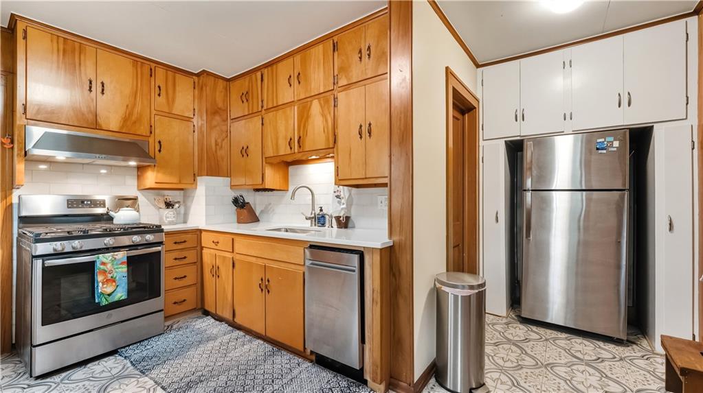 If charm is what you are looking for, look no further. What a transformation of this updated, century-old Waldo bungalow on a double lot. This house is being sold with the adjacent lot to the north (7510 Harrison St.). Old world kitchen with ceramic tile. All new bathroom with gorgeous tile work. Bedrooms have a walk-in Jack and Jill closet with fir woodwork. New roof and gutters with leaf guards. Open floor plan with decorative glass windows and hardwood floors. Newer appliances, less than five years old, stay with the property. The property is a gardener's delight. Roman columns adorn the front porch and interior. The front porch is a joy regardless of the time of day; a nice place to enjoy coffee/tea, or maybe on the spacious back deck, plus a 2-car garage. Fenced backyard. Don't miss out!