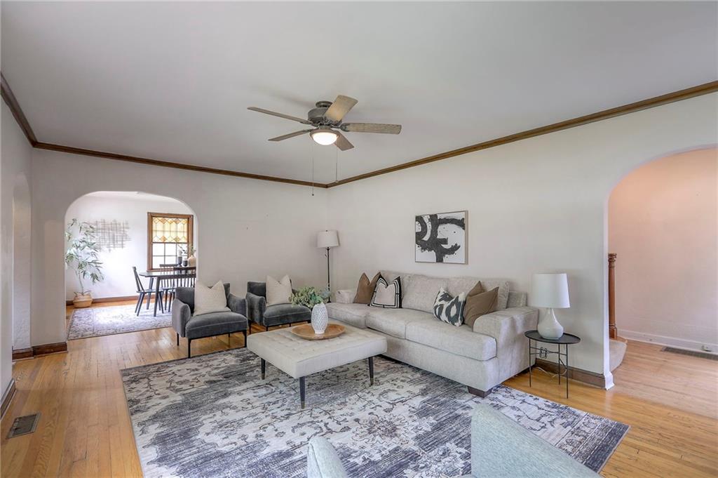 Welcome home to 722 E. Meyer, a charming spacious Tudor in the heart of Brookside. Archways throughout only lend to the charm of your formal living room with fireplace leading to the enclosed porch with exposed brick. Formal dining room leads to recently renovated eat-in kitchen with newer appliances (ALL STAY!), tons of storage, and access to the back deck. Main floor bedroom and full bath allow for multi-generational living. Upstairs, find 3 generously sized bedrooms with incredible closet space. Finished basement is the perfect recreation room, including a powder bath and attached tandem garage. Fabulous location close to St. Peter's, shops and restaurants. BRAND NEW AC AND BRAND NEW CONCRETE PATIO AND BACK STEPS!