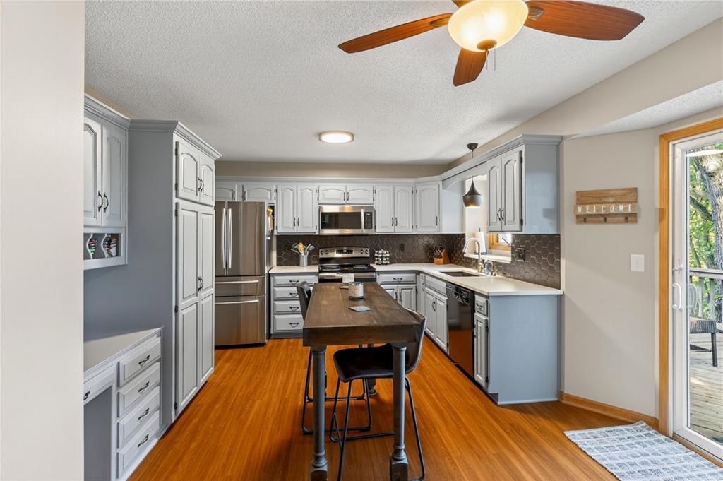 Tucked at the end of a quiet cul-de-sac, this spacious 3-bedroom, 3-bath home blends privacy and convenience in all the right ways. Step inside to tall vaulted ceilings and an updated kitchen that feels warm and inviting. Enjoy the peaceful wooded backyard from your spacious deck, or head downstairs to the walkout basement featuring a full bath with heated floors and a relaxing dry sauna. The sub-basement offers the perfect spot for a home gym or extra storage. Lovingly maintained by the sellers, this home has been cared for with pride. Conveniently located near Zona Rosa, the airport, and a short drive to downtown KC — it’s the perfect mix of comfort, charm, and location.