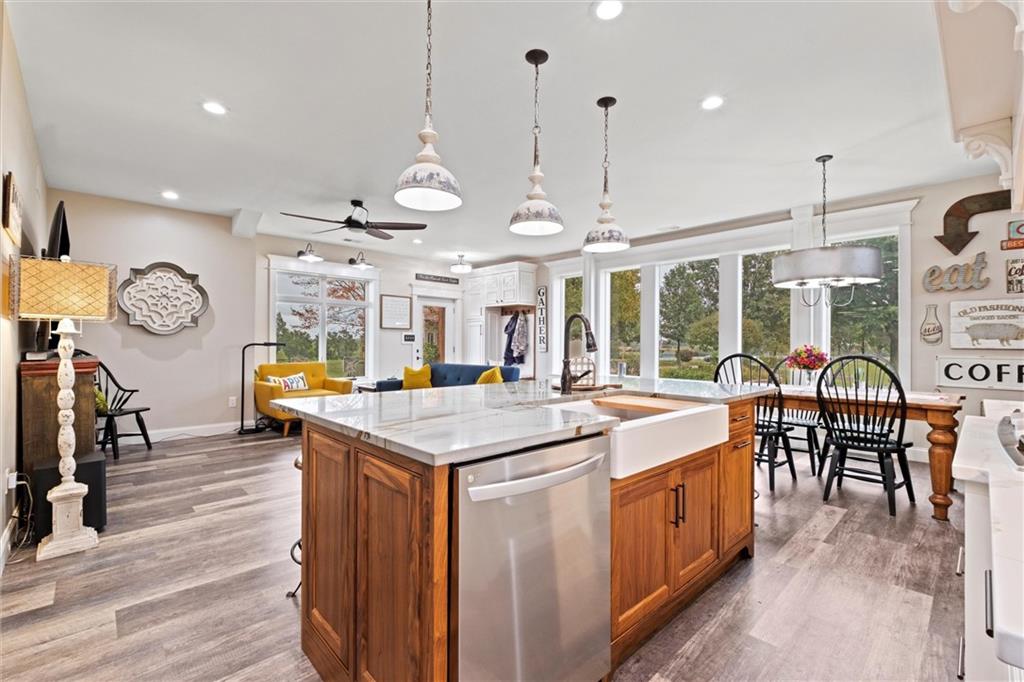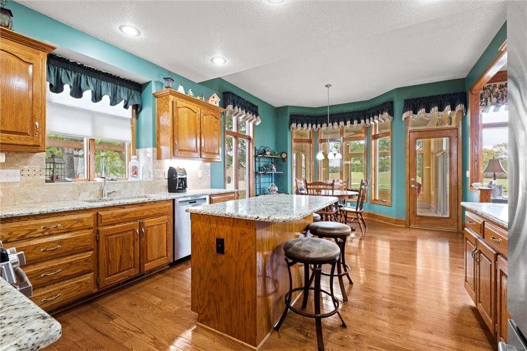 Unique opportunity to own a Family Homestead/Ranch property which includes a beautiful Main House with 3 Bedrooms & 2.50 Baths on the main level, and a Non-conforming bedroom/office space and full bath, large family room with wet-bar, a generously sized laundry room, and storage areas on the walk-out lower level; beautiful hardwood flooring, cabinets and features throughout. Other features of the main home are stacked washer/dryer closet in primary bedroom, nicely stained hardwood cabinets and island in the kitchen, sunroom, concrete patios and a deck off of the primary bedroom for entertaining and relaxing. Guest house features 2 Bedrooms/1.5 Baths, and is beautifully created with all of today's popular features in mind such as an open kitchen/dining/living room area with a large island, feature stone wall and LVP flooring; the hall 1/2 bath has modern fixtures and tile flooring; and laundry/utility/mud room is a generous size with extra space for storage. Farmhouse doors are another feature on the 1/2 bath, laundry room and primary bedroom, primary bedroom has reclaimed wood ceiling feature, terrazzo tile flooring, large walk-in shower and a huge walk-in closet. Secondary room has lots of light and a walk-in closet. The original farmhouse on this property is a rental which now brings $925 a month, and features 3 Bedrooms, 2 Baths, livingroom, eat in kitchen, laundry room and a small barn for storage, and renter would like to stay. All on 35+ acres of peaceful rolling pasture and trees. Bonus buildings are: Out Building 20'x30'; and Quonset hut steel/metal building is 55'x70' with 17 1/2 ft wide x 12 ft tall door opening and 6'' thick concrete floor reinforced with 1/2" steel rebar for all of your outdoor equipment and toys. This property has everything you need to move right in and enjoy all of its wonderful features. Make an appointment to see it and make it yours today!