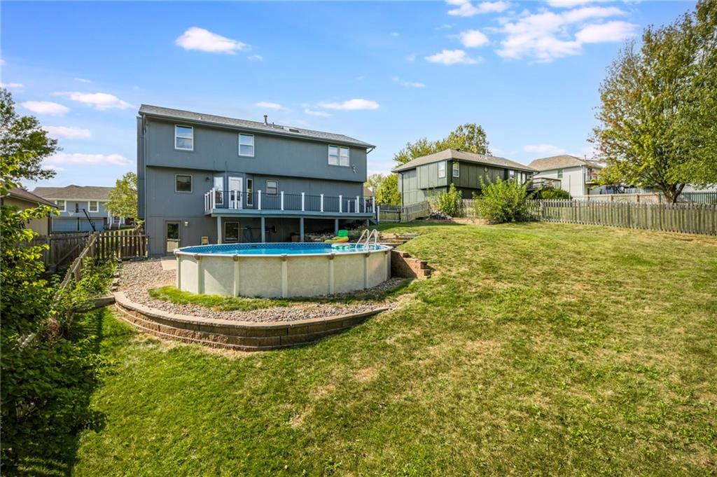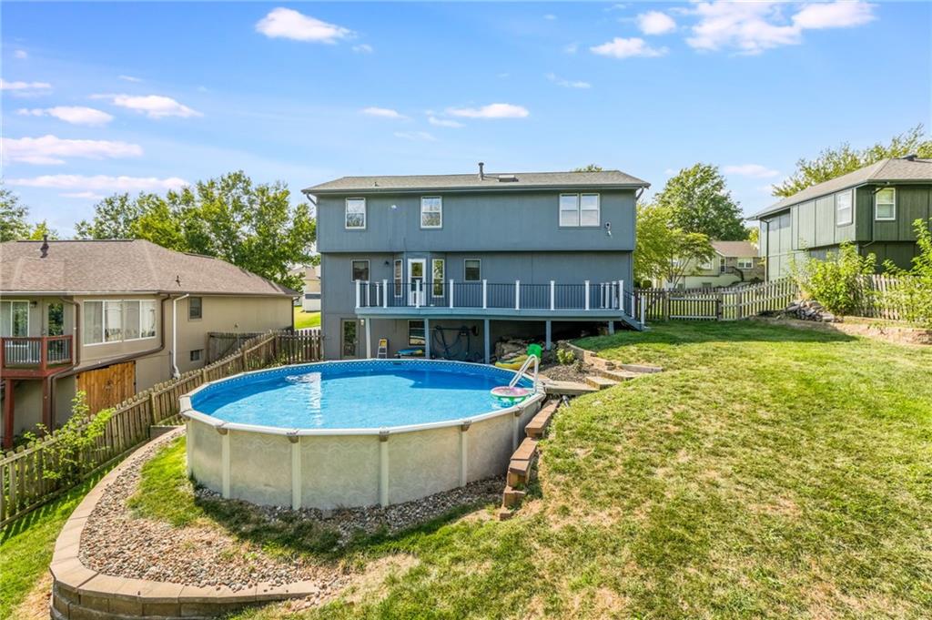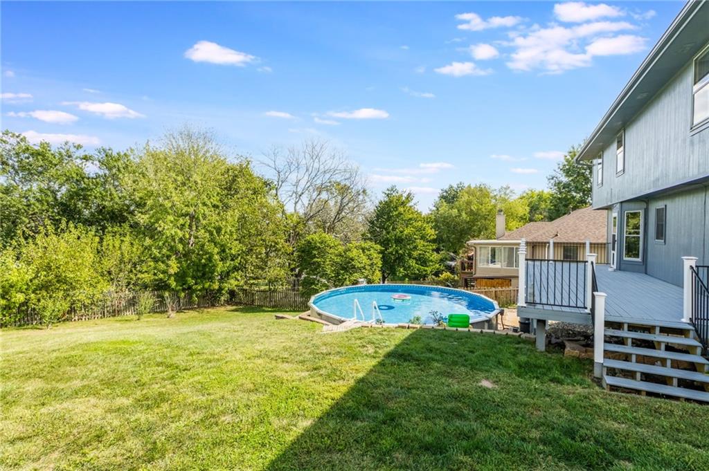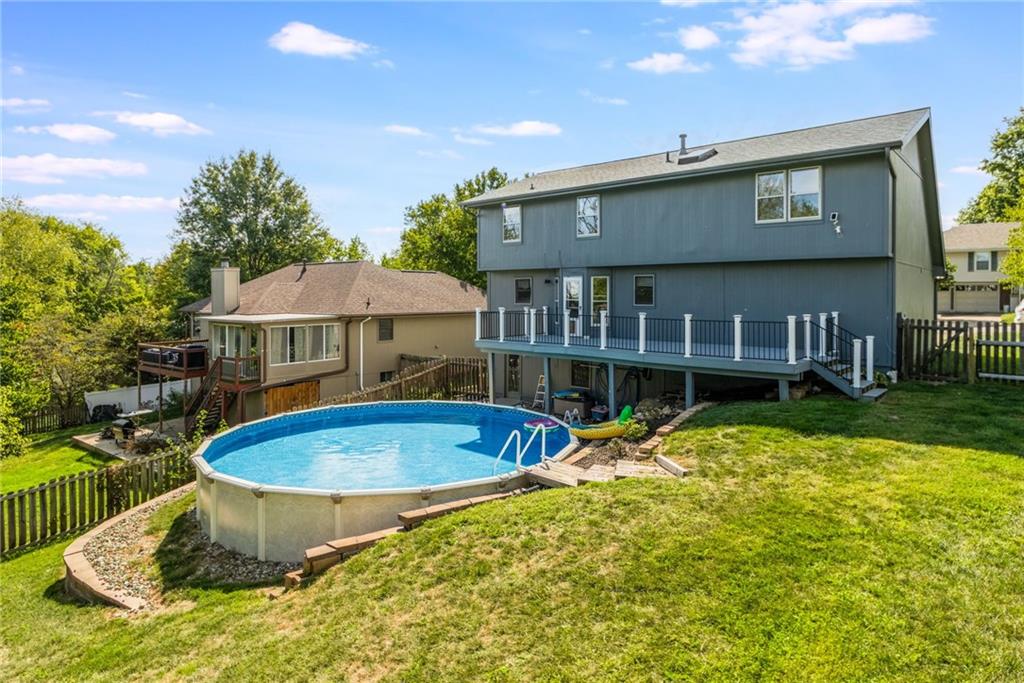 Amazing 2-Story Home—Perfect for You! Tucked away in a quiet neighborhood on a long cul-de-sac within the sought-after Grain Valley School District, this home has so much to offer! The laundry room is conveniently located on the bedroom level right next to the spacious primary suite. You’ll love the vaulted ceiling and floor-to-ceiling windows in the living room, creating a bright, open feel—especially when you’re cozied up by the fireplace on cooler nights. The adorable eat-in kitchen features a kitchen island, freshly painted cabinets, and plenty of space to gather and cook together. The extra-large primary bedroom is a true retreat with amazing views and tons of natural light streaming in from the skylights throughout the home. Step outside to your oversized, always-shaded deck—the perfect spot for entertaining or relaxing while overlooking your beautifully maintained above-ground pool. The walk-out basement is ready for your personal touch—finish it to fit your lifestyle and add instant equity! This well-maintained, move-in ready home is waiting for you to make it yours!