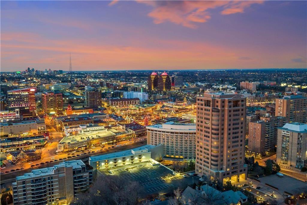 Set on the Country Club Plaza, this rare three-bedroom, three-bath residence sits on the third floor of the iconic Alameda Towers and includes a private balcony. The layout is bright and easy to live in, with nine-foot ceilings and natural light throughout. The kitchen brings together granite counters, stainless Dacor appliances, and a generous island with plenty of storage. A dedicated laundry and utility room sits just off the kitchen for everyday convenience. Hardwood floors run through the main spaces, and a polished marble entry sets the tone on arrival. The corner primary suite features floor-to-ceiling windows and a spacious walk-in closet. A second bedroom offers its own ensuite bath, perfect for guests. The third bedroom with its own bath, is flexible for an office, media room, or additional sleeping space. Life at the Alameda means you are steps from dining, shopping, and nearby Loose Park. Residents enjoy a private, heated garage with electric charging stations, two covered parking spaces assigned to this home, and a dedicated storage unit. Fresh from a major transformation, the landscaped terraces offer polished settings for alfresco dining, casual lounging, and private gatherings. Building services include a 24-hour doorman and concierge, secured entry, and covered drop-off. As an added perk, residents receive preferred pricing on rooms and dining at the adjacent InterContinental Hotel, with access to the hotel’s pool and fitness facilities. Opportunities to own a three-bedroom with a Plaza-facing balcony in this building are limited. Come see why the Alameda remains one of Kansas City’s most sought-after addresses.