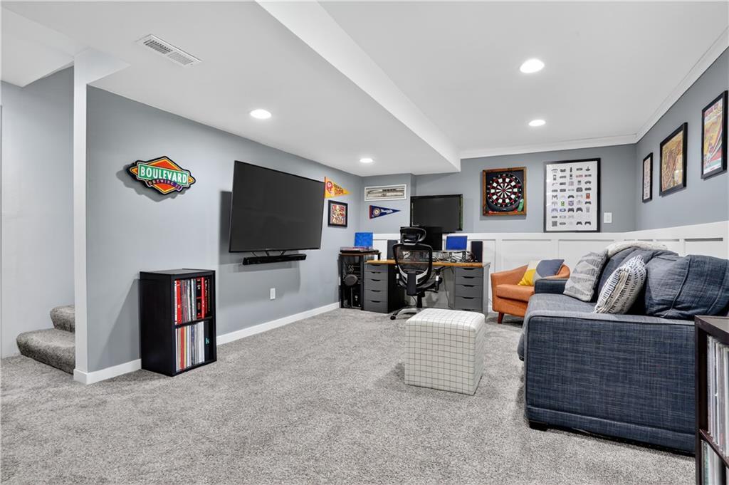 Welcome to this beautifully updated 2-story home in the desirable Claybrook II neighborhood! Featuring 3 spacious bedrooms, 2.5 bathrooms, and a finished basement, this home offers the perfect blend of style, comfort, and functionality. Step inside to find gorgeous wood floors that flow throughout the main level, complementing the bright and open living spaces. The living room flows seamlessly into the recently remodeled kitchen, where you’ll love the quartz countertops, neutral backsplash, and ample cabinetry. Just off the kitchen, the laundry room with built-in shelving adds convenience, while the sun-filled dining room with large windows creates the perfect spot for gatherings. Upstairs, all three bedrooms are generously sized. The primary suite is a true retreat with a spa-like bathroom featuring a double vanity, jacuzzi tub, walk-in shower, and expansive walk-in closet. The finished basement provides even more living space with plush carpeting and a daylight window for natural light. You’ll also find a large unfinished storage area, giving you plenty of room to stay organized. Outdoor living is just as impressive with a brand-new 12x12 deck overlooking a serene, oversized backyard and side yard with mature trees. Below, a 9x11 patio offers the perfect space for grilling and entertaining. Adding to the list of advantages of this home is that it's located at the end of a quiet cul-de-sac, only has one immediate neighbor and no through traffic. This move-in ready home is loaded with upgrades and designed for today’s lifestyle—don’t miss your chance to make it yours!