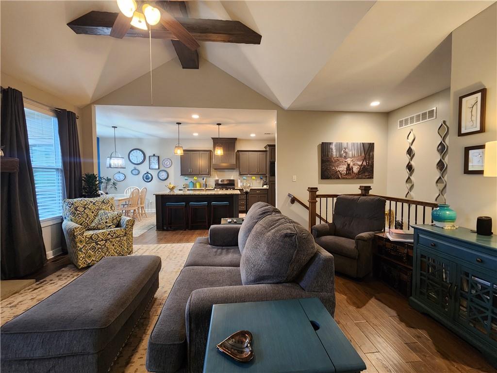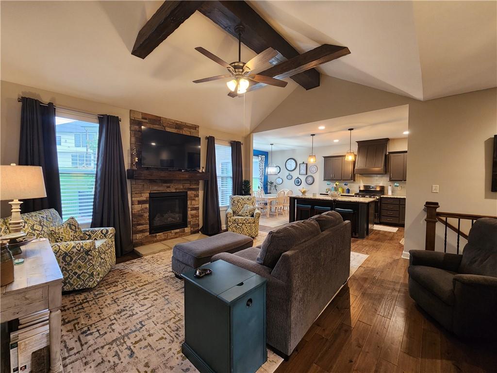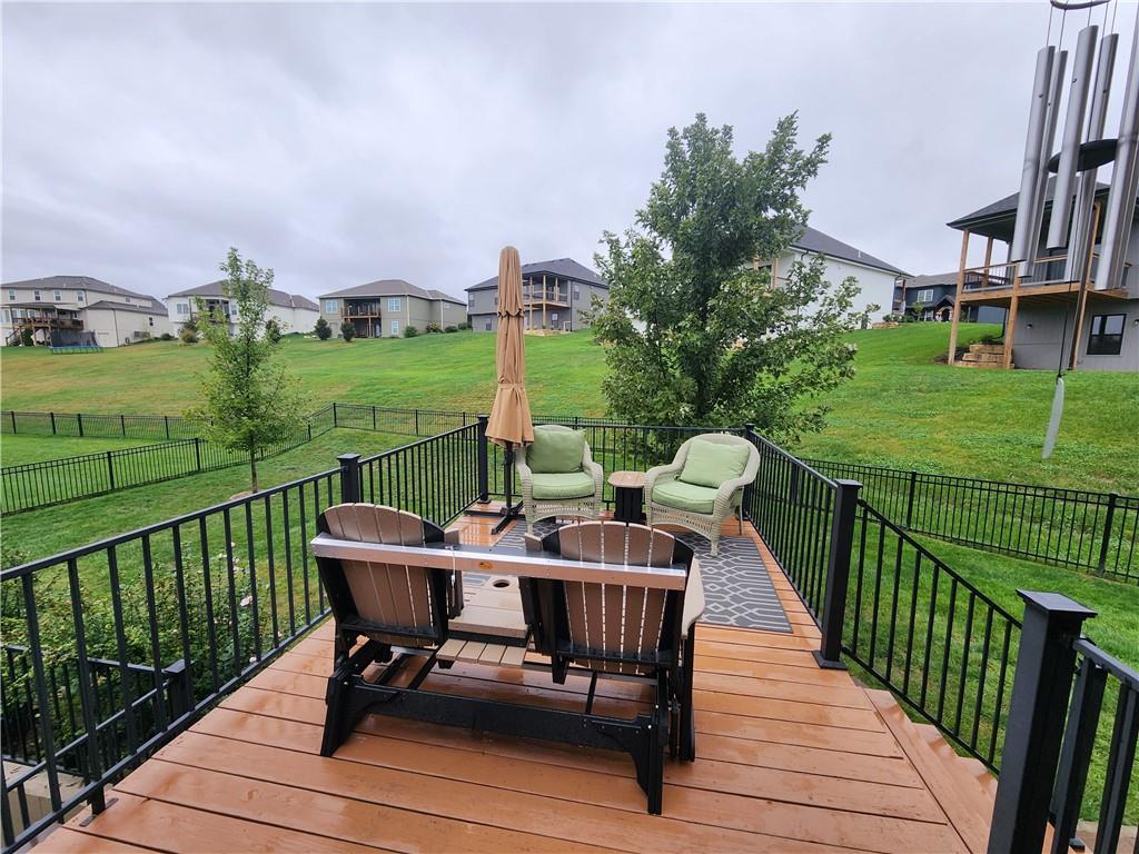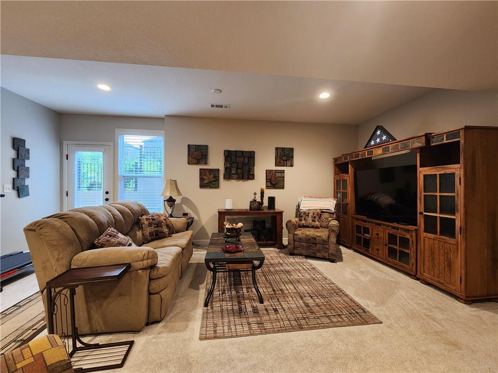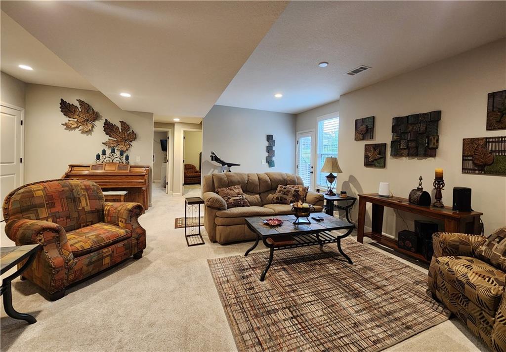 Reverse Ranch home on cul-de-sac in the desired Seven Bridges Neighborhood! Walk inside this warm home & make it your own! The living room is open to the kitchen and dining areas- Great for entertaining! The living room with the vaulted ceilings, floor-to-ceiling windows, & stone fireplace makes a perfect sitting area to enjoy while overlooking the kitchen. The Kitchen is lovely with the large island, painted cabinets, gold hardware, gas stove, stainless appliances, and open to the dining area with additional floor-to-ceiling windows that walk out to the beautiful, fenced yard with sprinkler system. The MBR is conveniently located on the main floor, along with the laundry room. Bonus: make hauling groceries inside easy with just a few steps from the garage to the kitchen. The basement rec room is nicely finished with 2 additional bedrooms, full bathroom & ample storage areas that walk out to the lower patio. Not only is the home fantastic, so is the Neighborhood-- with a Community clubhouse, Party Room, Play Area, Swimming Pool, Tennis Courts, Trails & Gorgeous entrance waterfall.