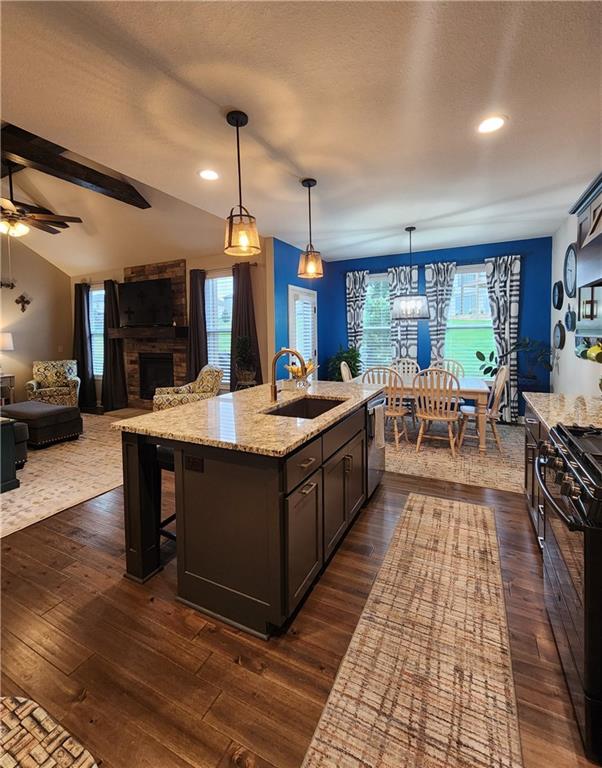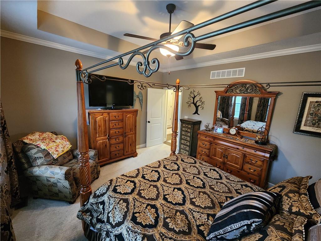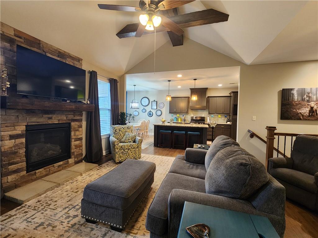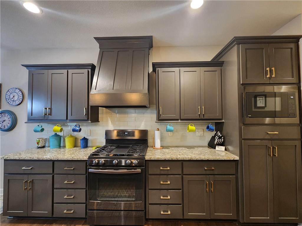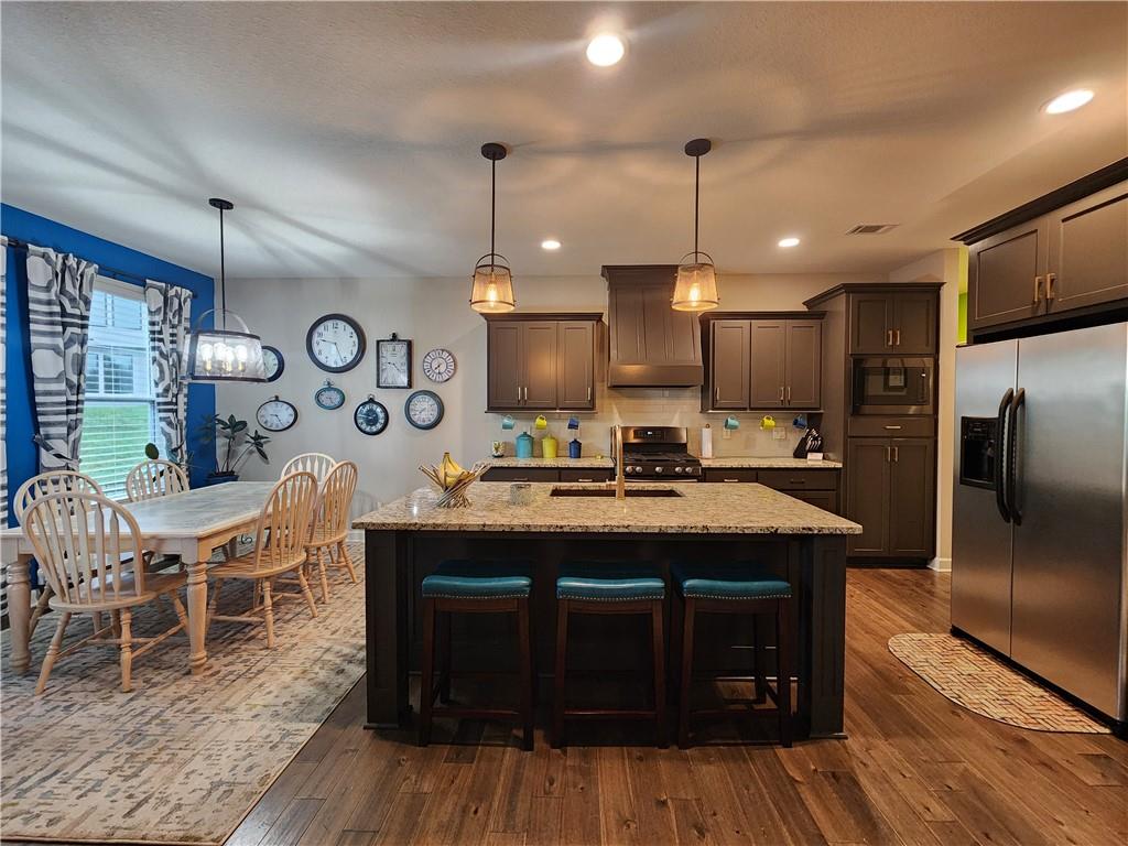 Reverse Ranch home on cul-de-sac in the desired Seven Bridges Neighborhood! Walk inside this warm home & make it your own! The living room is open to the kitchen and dining areas- Great for entertaining! The living room with the vaulted ceilings, floor-to-ceiling windows, & stone fireplace makes a perfect sitting area to enjoy while overlooking the kitchen. The Kitchen is lovely with the large island, painted cabinets, gold hardware, gas stove, stainless appliances, and open to the dining area with additional floor-to-ceiling windows that walk out to the beautiful, fenced yard with sprinkler system. The MBR is conveniently located on the main floor, along with the laundry room. Bonus: make hauling groceries inside easy with just a few steps from the garage to the kitchen. The basement rec room is nicely finished with 2 additional bedrooms, full bathroom & ample storage areas that walk out to the lower patio. Not only is the home fantastic, so is the Neighborhood-- with a Community clubhouse, Party Room, Play Area, Swimming Pool, Tennis Courts, Trails & Gorgeous entrance waterfall.