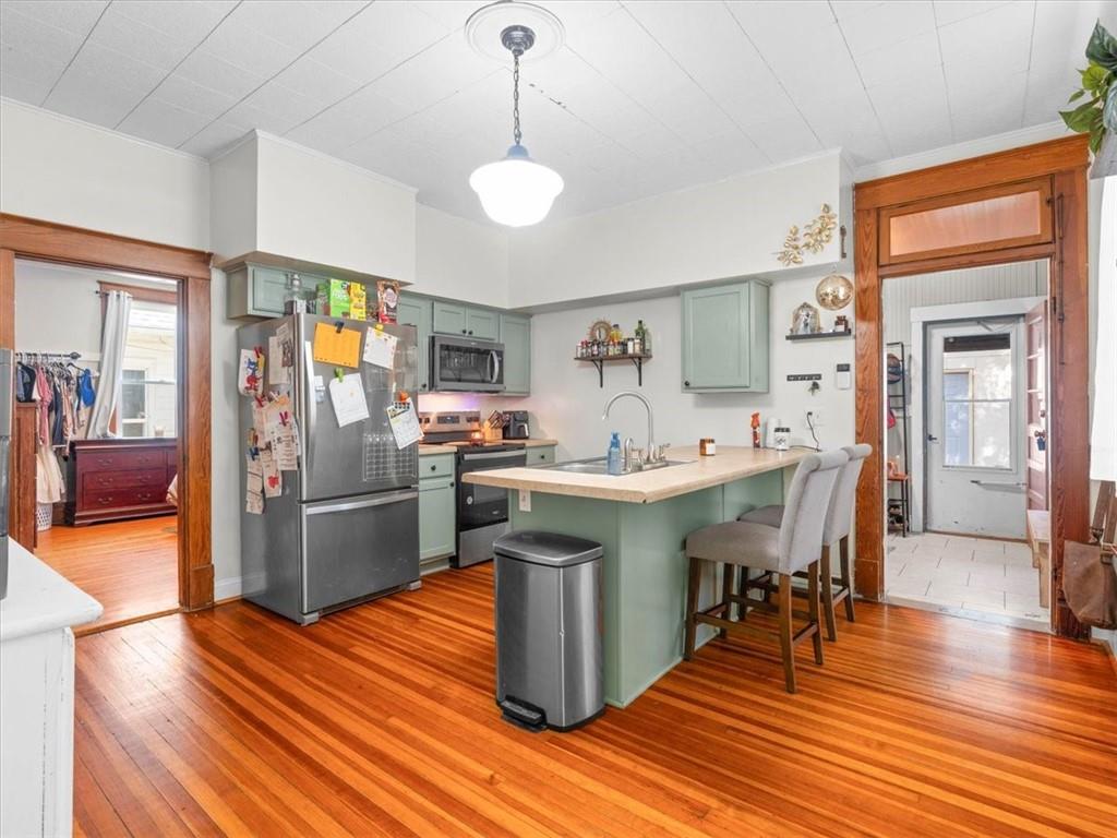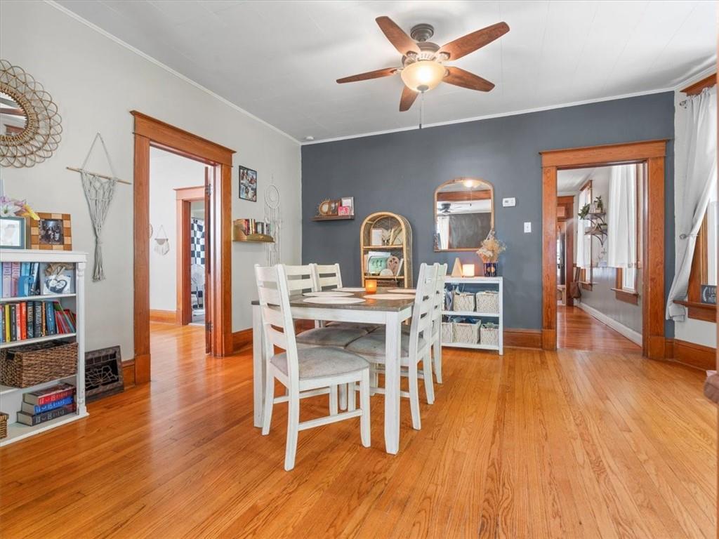 Classic charm meets everyday convenience in this inviting home filled with character. A large covered front porch welcomes you into spacious, light-filled rooms, including a comfortable living room and formal dining area. With three bedrooms, one bath, and main-floor laundry, the layout offers easy functionality. Outside, you’ll find a fenced yard and a detached garage—ideal for storage or hobby space. This property combines vintage warmth with modern comfort in a great central location.