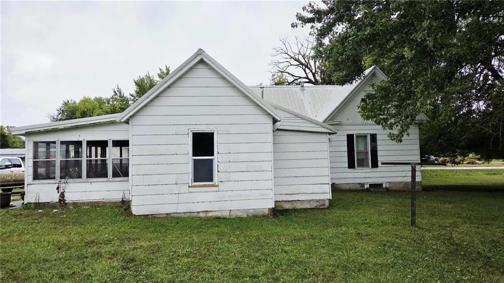 Pleasanton, KS Farm House Style 2-bed, 1 bath home on over 1 acres of land. As you walk into the home, you will appreciate the open, large living & seating area. On the west side is one bedroom, and the laundry area is nice in size and located just off the main room. Through the kitchen is the bathroom and 1 bonus bedroom, which has recently been fully renovated. The home features a maintenance-free metal roof, a covered front porch, and a sunroom. The home does have a 1/2 unfinished basement with a sump pump and furnace. The over 1-acre lawn is level and manicured, featuring 2 bonus storage sheds. There is a staircase that existe to the attic that could be converted into additional bedrooms.