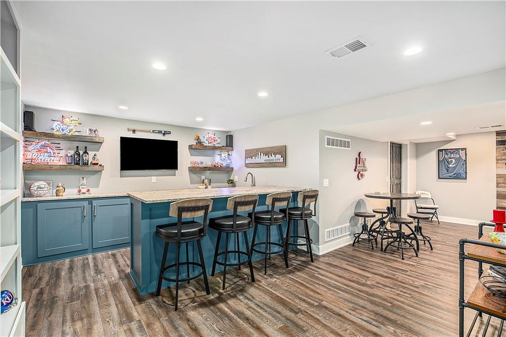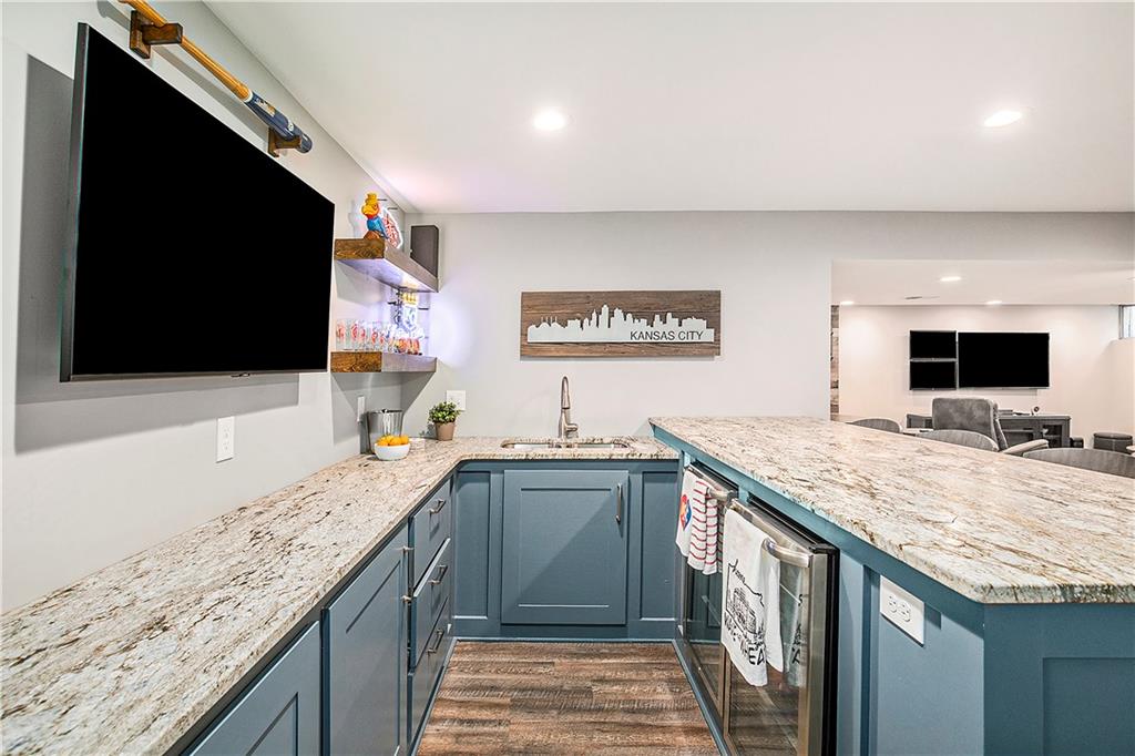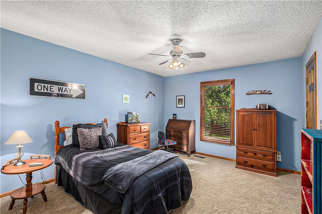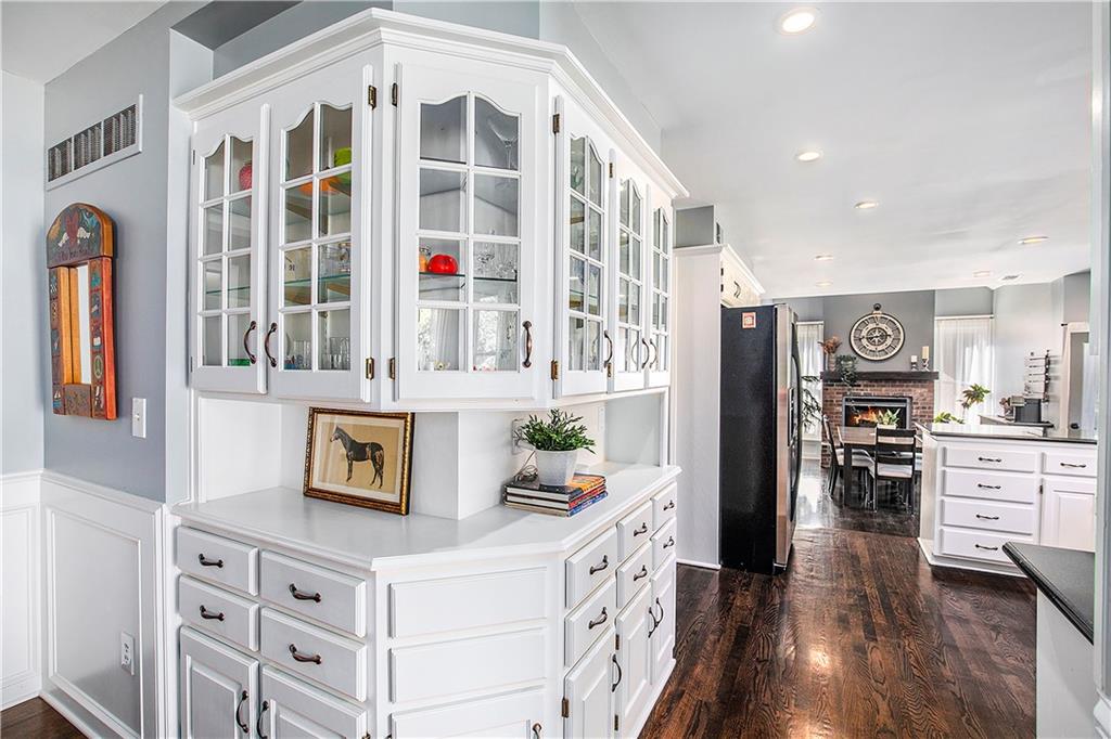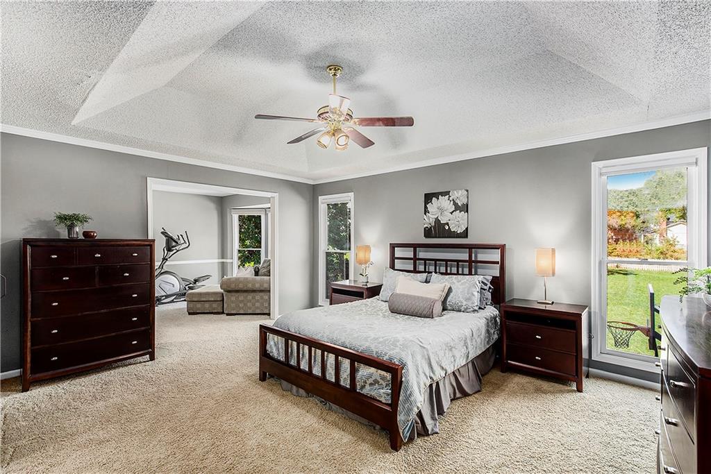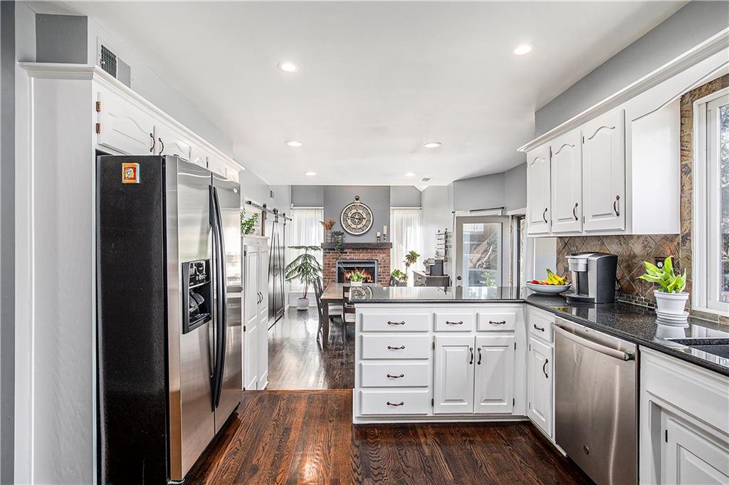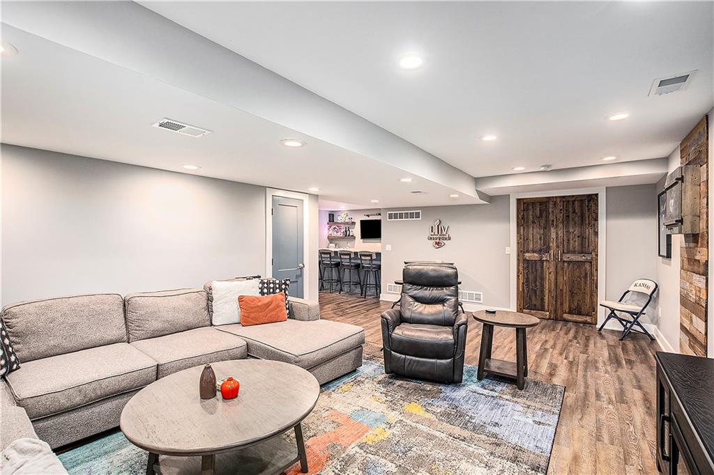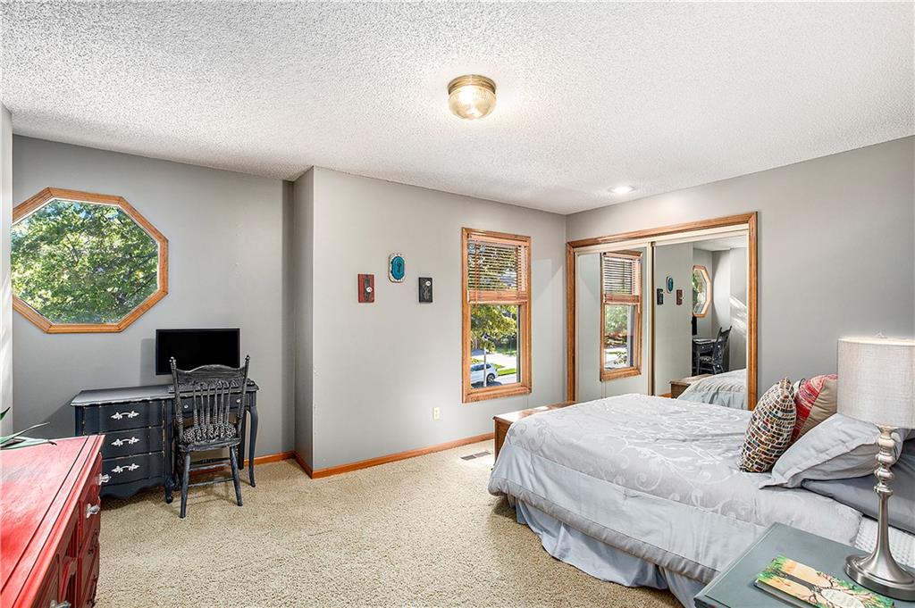 Celebrate the Holidays in Oak Tree Meadows Move in before the end of the year and enjoy the seasons ahead in this beautifully-updated home on a stunning park-like lot. This 4-bedroom, 2 1/2 -bath home in the desirable Oak Tree Meadows community of Overland Park offers the perfect blend of comfort, charm, and thoughtful design. Pride of ownership shines throughout with consistent updates including an updated roof, fresh exterior paint, and an updated kitchen that opens to the hearth room, dining room, and living room—all overlooking a spectacular backyard. The kitchen features painted cabinetry, granite counters, stainless steel appliances, and an eat-in hearth area accented by a brick fireplace and a clever barn-door drop zone for everyday organization. The living room boasts a stone fireplace framed by built-ins and rich hardwood floors that bring warmth and character to the main level. Step outside to your own private oasis—a lush, level .39-acre treed lot with a stamped concrete patio, tranquil water feature, and ample space for entertaining or quiet evenings under the trees. Upstairs, the spacious primary suite includes a sitting area, updated ensuite bath with granite double vanity, walk-in shower, jacuzzi tub, and generous walk-in closet. Secondary bedrooms are equally spacious and share a hall bath with painted vanity and skylight. The finished lower level is designed for fun and function—featuring a family room, wet bar, exercise space, and a stylish barn door accent. Nestled in a quiet, established neighborhood with access to Stoll Park, a private neighborhood lake, and just minutes from shopping, dining, and major highways (I-35, 435, and 69)—this home perfectly balances comfort, convenience, and community.