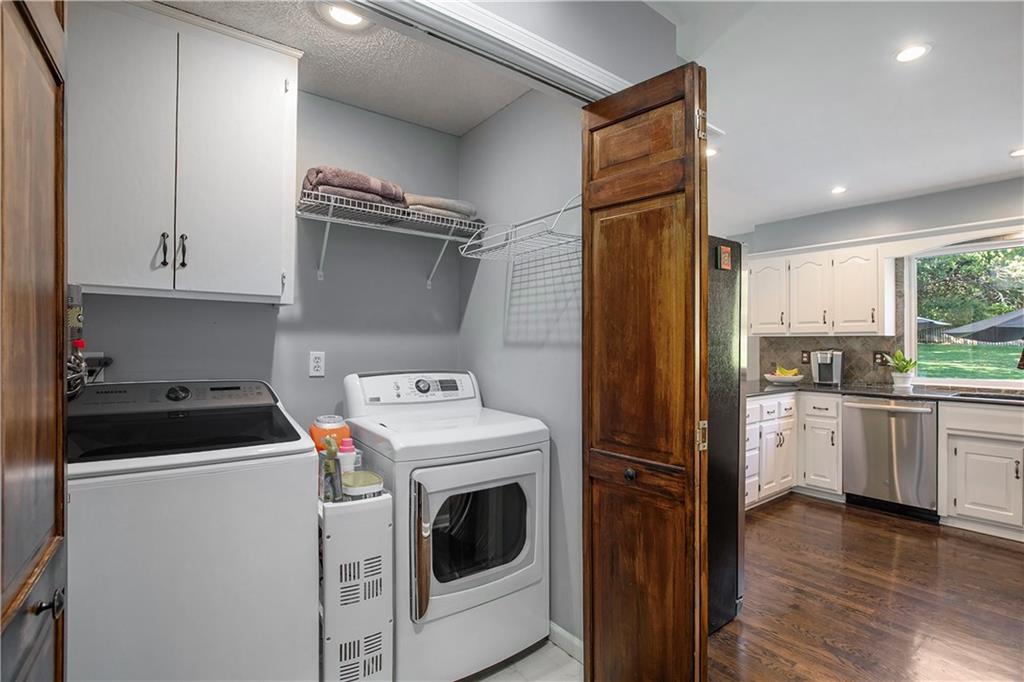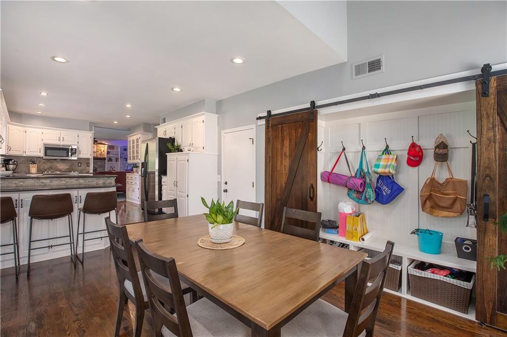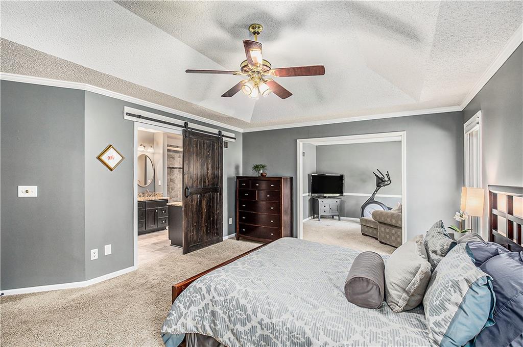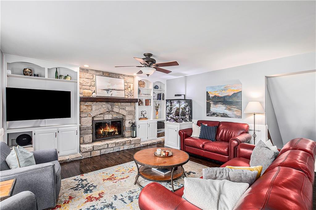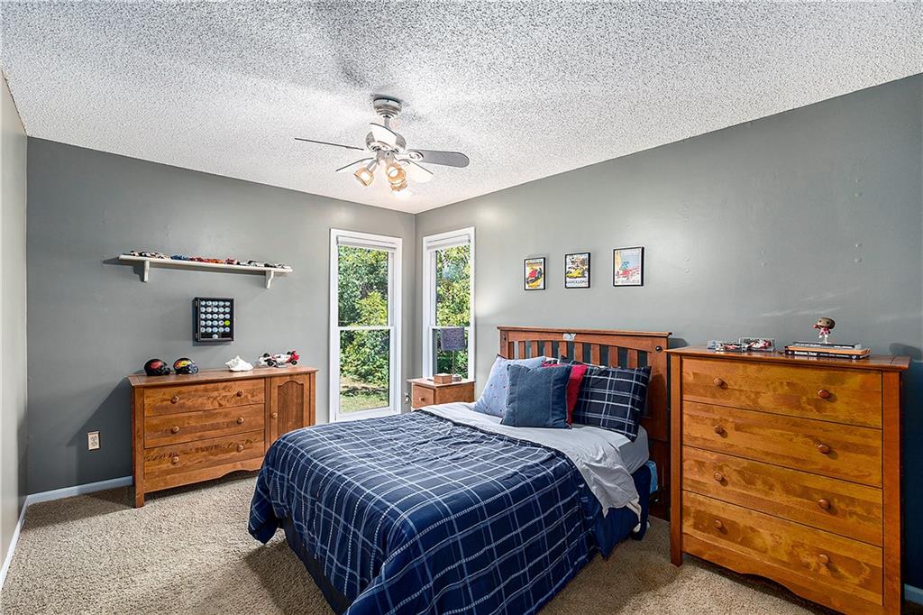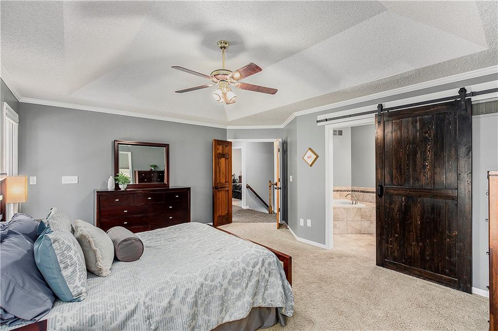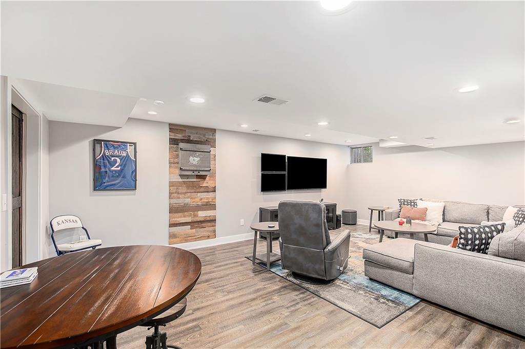 Celebrate the Holidays in Oak Tree Meadows Move in before the end of the year and enjoy the seasons ahead in this beautifully-updated home on a stunning park-like lot. This 4-bedroom, 2 1/2 -bath home in the desirable Oak Tree Meadows community of Overland Park offers the perfect blend of comfort, charm, and thoughtful design. Pride of ownership shines throughout with consistent updates including an updated roof, fresh exterior paint, and an updated kitchen that opens to the hearth room, dining room, and living room—all overlooking a spectacular backyard. The kitchen features painted cabinetry, granite counters, stainless steel appliances, and an eat-in hearth area accented by a brick fireplace and a clever barn-door drop zone for everyday organization. The living room boasts a stone fireplace framed by built-ins and rich hardwood floors that bring warmth and character to the main level. Step outside to your own private oasis—a lush, level .39-acre treed lot with a stamped concrete patio, tranquil water feature, and ample space for entertaining or quiet evenings under the trees. Upstairs, the spacious primary suite includes a sitting area, updated ensuite bath with granite double vanity, walk-in shower, jacuzzi tub, and generous walk-in closet. Secondary bedrooms are equally spacious and share a hall bath with painted vanity and skylight. The finished lower level is designed for fun and function—featuring a family room, wet bar, exercise space, and a stylish barn door accent. Nestled in a quiet, established neighborhood with access to Stoll Park, a private neighborhood lake, and just minutes from shopping, dining, and major highways (I-35, 435, and 69)—this home perfectly balances comfort, convenience, and community.