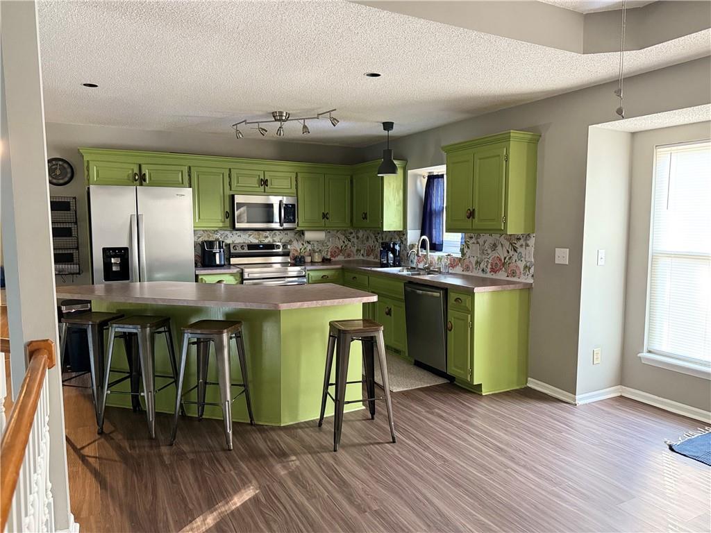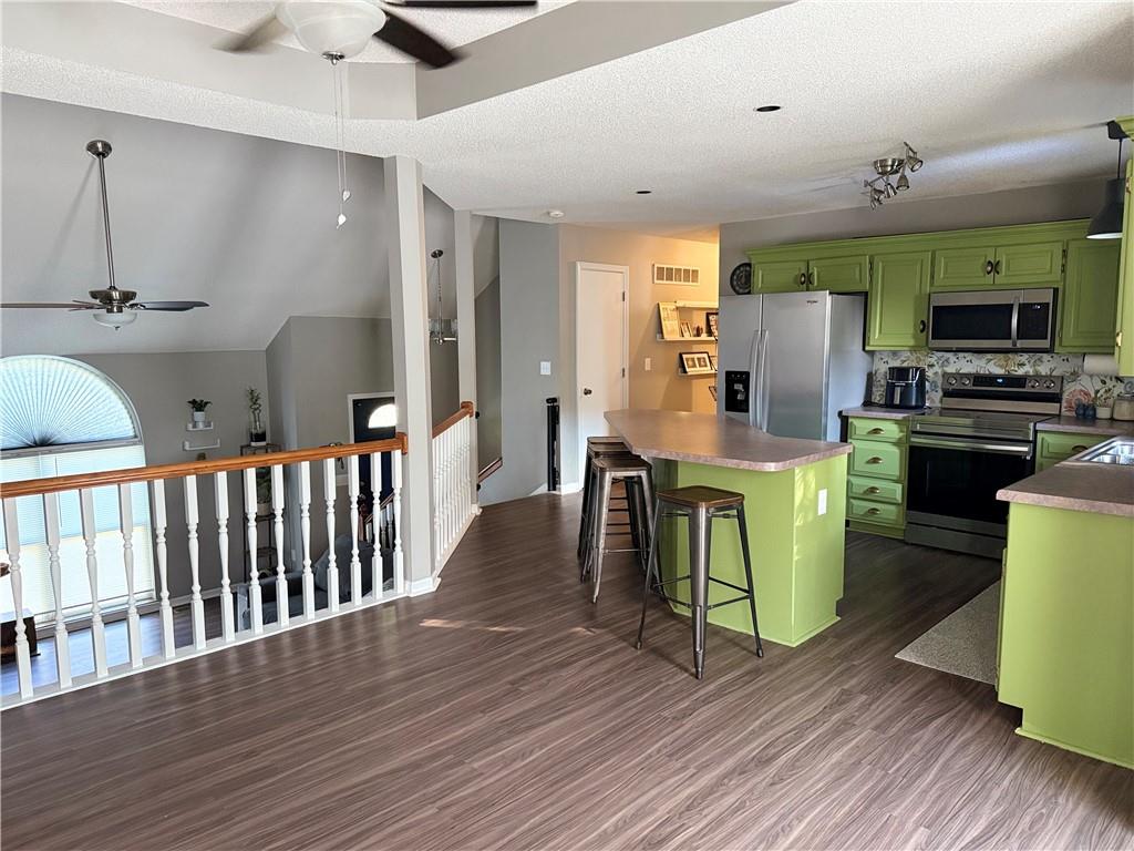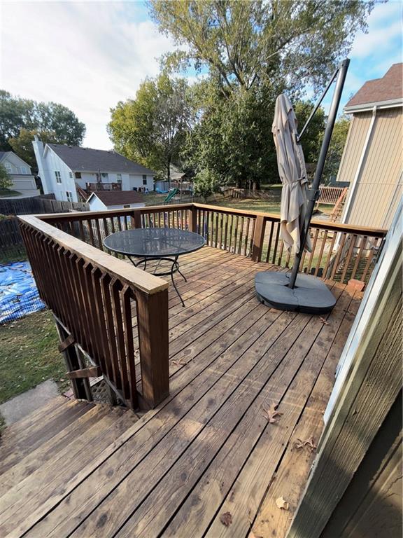 Welcome to this beautifully maintained, move-in-ready home nestled in the heart of the Northland. Conveniently located just west of Zona Rosa and minutes from Highway 152, this turnkey property offers both comfort and accessibility in a prime location. Step inside to discover a spacious and inviting dining area that offers a clear view of the living room and beautifully compliments the back split entry design of the the home. The kitchen features a built-in island, perfect for hosting and entertaining, and provides direct access to the deck - ideal for indoor-outdoor living. Enjoy a generously sized backyard enclosed by a privacy fence owned by the property, offering plenty of space for relaxation, play or gardening. This home includes three bedrooms and three full bathrooms, offering comfort and functionality for a variety of lifestyles. On the lower level, you'll find a private bedroom with its own full bathroom and walk-out access to a cozy patio-perfect for guests, in-laws, or a home office setup. This home also features a spacious two car garage with ample room for parking and storage. Don't miss your chance to own this move-in ready, turnkey home in a fantastic Northland location. Schedule your private showing today and see all the comfort, space, and convenience this property has to offer!