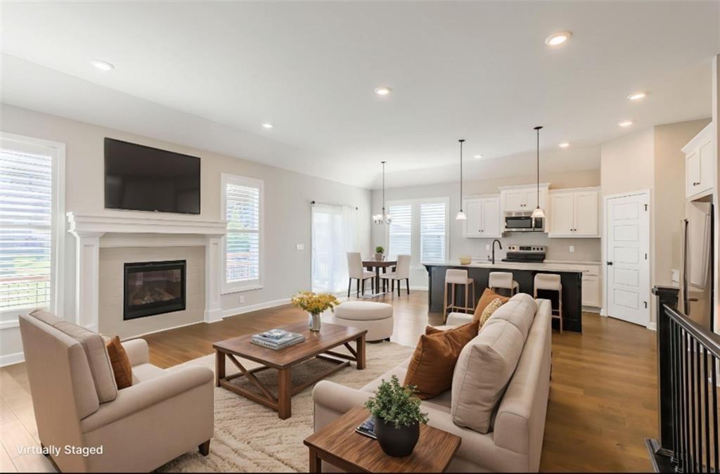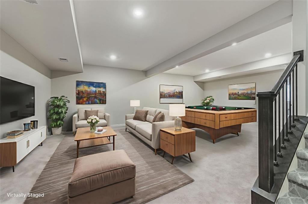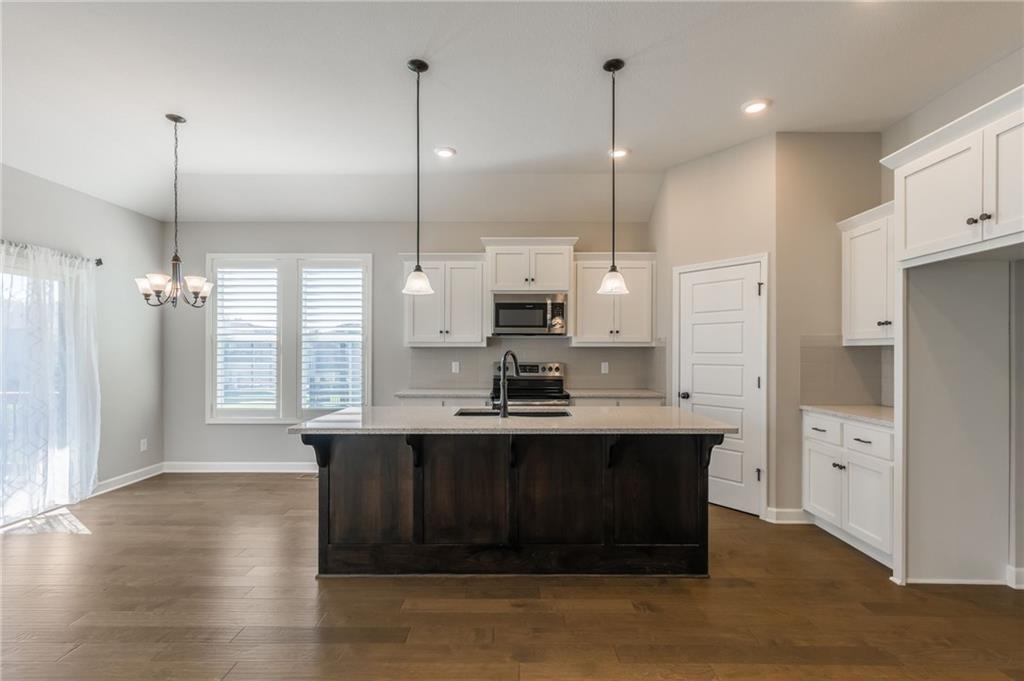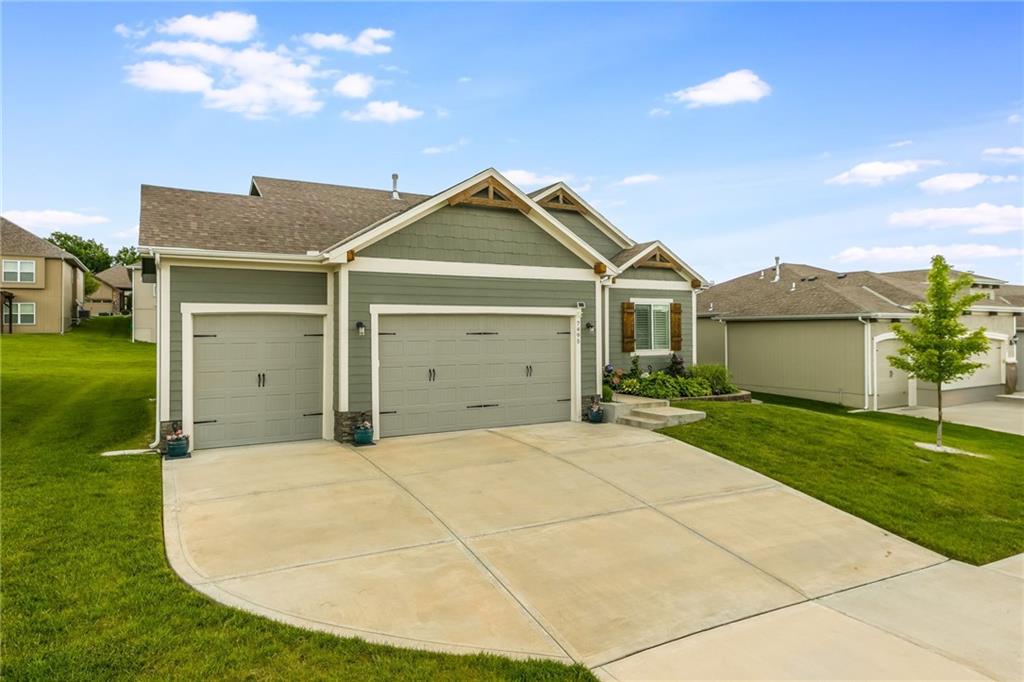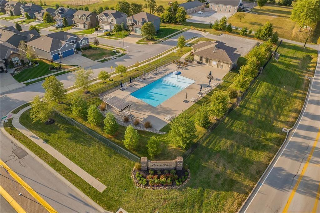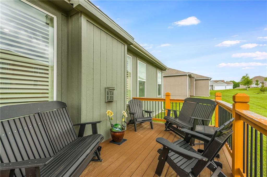 Welcome to effortless living in this beautifully maintained Reverse 1.5 Story home, perfectly situated in the sought-after maintenance-provided community of Chapel Ridge. Residents enjoy fantastic amenities including two swimming pools, walking trails, a fitness center, and two stocked fishing ponds—plus lawn care and snow removal are all taken care of! Located in unincorporated Platte County, this home offers the convenience of being just minutes from all the shopping, dining, and charm that Parkville has to offer. Step inside to an open, light-filled layout featuring 4 bedrooms and 3 full baths. The stunning kitchen boasts a large island, stainless steel appliances, and a walk-in pantry—perfect for entertaining or everyday living. The spacious living room is accented with large windows, flooding the space with natural light, and beautiful custom plantation shutters throughout. Retreat to the main-level primary suite, complete with double vanities, a gorgeous walk-in shower, and an expansive walk-in closet. A second bedroom on the main floor offers flexibility for guests or a home office. The finished lower level adds even more living space with a generous rec room, two additional bedrooms, a full bath, and plenty of storage. Enjoy peaceful evenings or gatherings with friends on the oversized deck overlooking the beautifully landscaped yard. This move-in-ready home offers the perfect blend of comfort, convenience, and style—all with maintenance-free living!