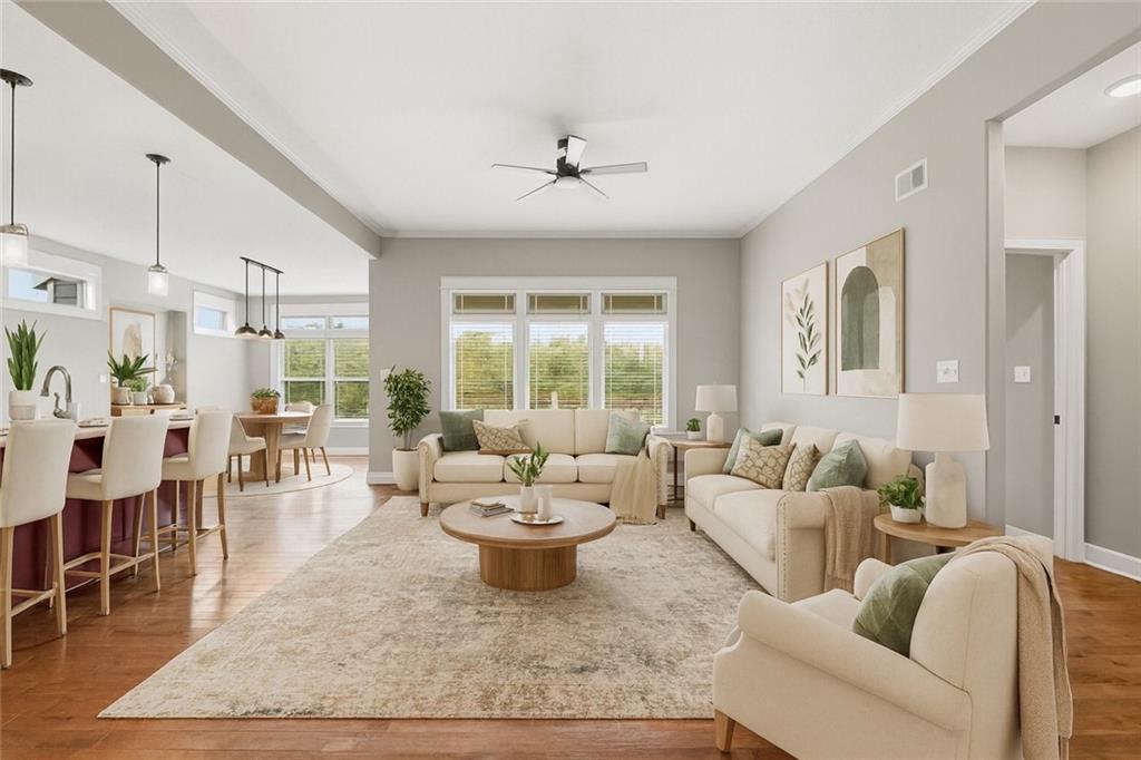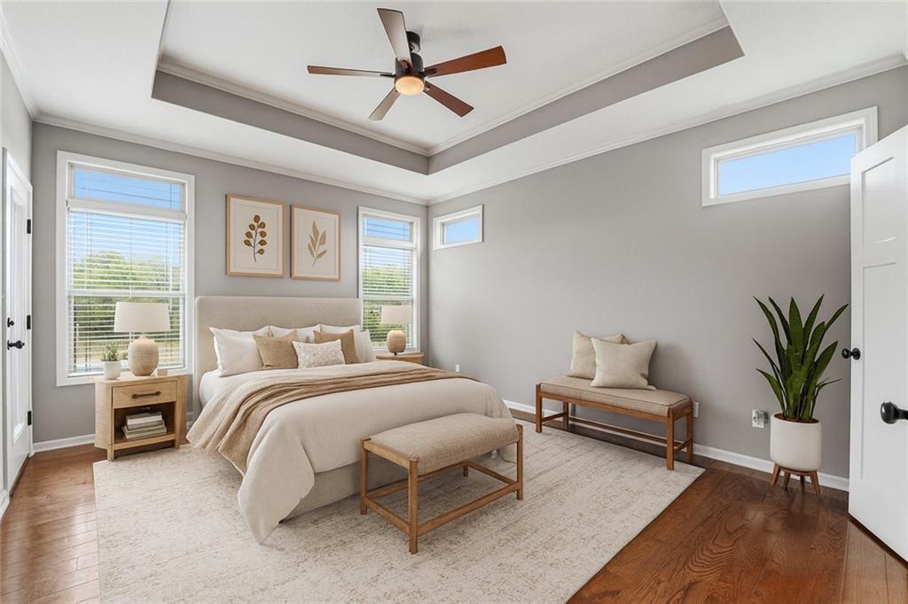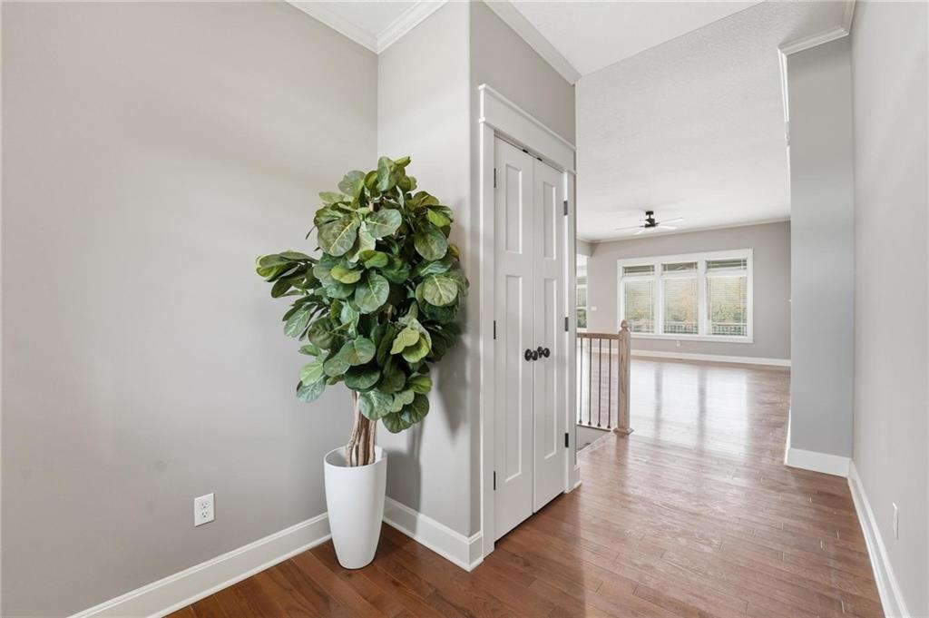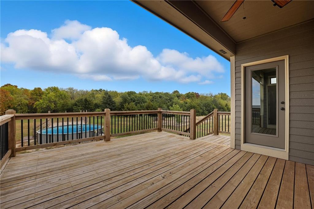 Executive-style 4 bdrm./1 ofc., 3 bath, 3 car gar. home with a handsome shop, w/heavily timbered acreage in your backyard, paved road, easy access to everywhere, a rare find. Step inside & be greeted by an inviting open layout, gorgeous hardwoods, revealing the hub of the home ... the liv. rm., kit. & din. area. The beautiful kitchen features recessed lighting, granite countertops, a center island, walk-in pantry, built-in hutch, dbl. sinks, ss appl., task lighting. Lg. windows fill the space w/natural light & frame your rural scenery. The lg. primary suite is a true retreat, featuring coffered ceilings, abundant windows & tiled bathroom with a private water closet, double granite vanity, and a “wow” walk-in shower/seat. The large walk-in closet includes custom built-ins. Bdrm. & closet connect conveniently to the laundry room. A 2nd bedroom and full bath are also located on the main level, both finished in soft, neutral tones. The wide staircase is a pretty focal point in the home, leading to the lower level-home to a spacious family room with a gas-starter fireplace, wet bar, game closet and custom shelving. You’ll also find two more generous bedrooms, another full tiled bath, and a spacious home office. Other pluses-a dedicated storm shelter & storage area in the unf. part of bsmt./utilities. This home truly has it all-the perfect blend of comfort, luxury, privacy, and nature. It feels nearly new and showcases quality craftsmanship in every detail. Addl. ext. features include a 3-car attached garage, a lg. backyard deck, covered patio, recessed soffit lighting for your landscaping, covered entry way, garden beds, 4 wheeler trails & your own private hunting spot/nature exploration. An amazing 40x30 shop equipped with a 200-amp electrical panel, an 8-ft. covered overhang, an RV door, standard door & man door. Located on a paved road just off Hwy 59, this exceptional rural property offers easy access to Ottawa, Kansas City, Lawrence, and I-35. Click on the video!