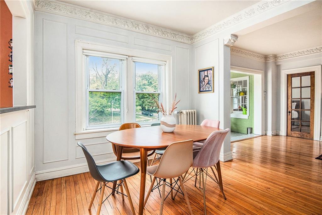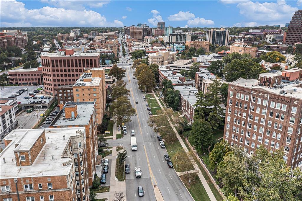 Charming with an abundance of character, this 2 bed/1 bath condo is just steps away from the Country Club Plaza, Nelson Atkins Museum and UMKC! Seller has recently invested over $40K perfectly updating the kitchen with quartz counters, new backsplash and stainless steel appliances, bathroom boasts new tile, fixtures and vanity, and new laundry (washer/dryer stays)! Exquisite crown molding, hardwoods and generous natural light throughout. A bonus room with new flooring and outstanding views is perfect for a home office. Additional highlights include a covered and secure parking space and privately operated security system. This beautiful condo is easy living in an amazing location.....you don't want to miss!