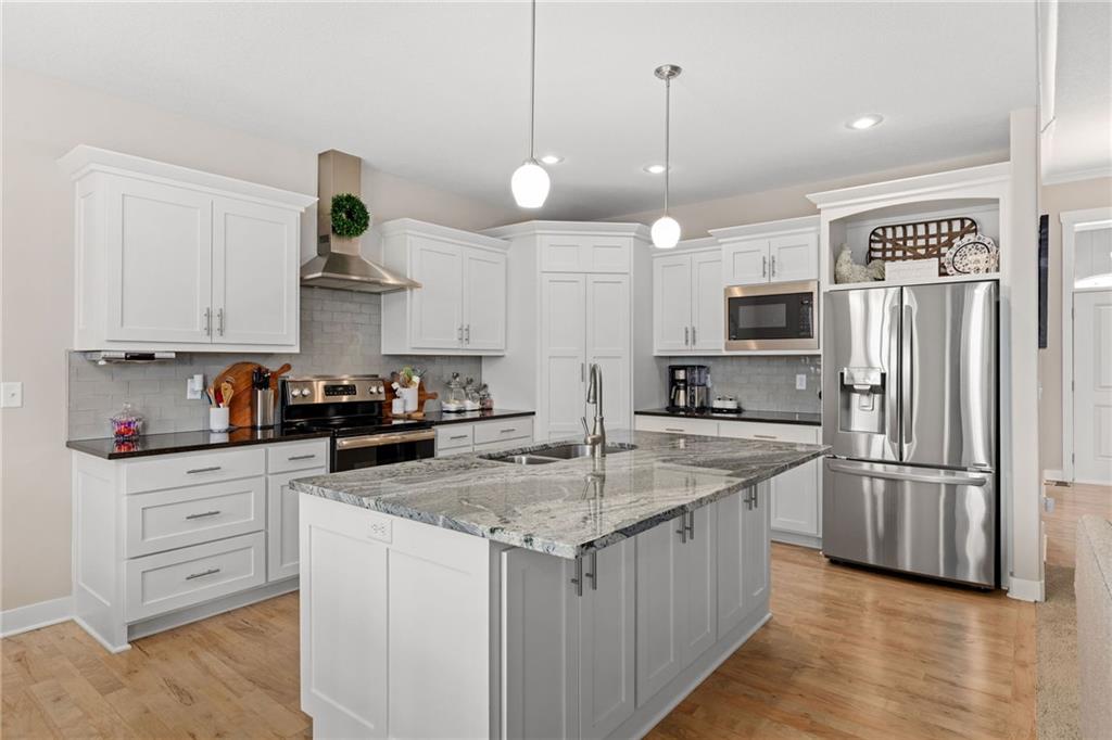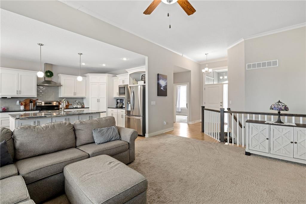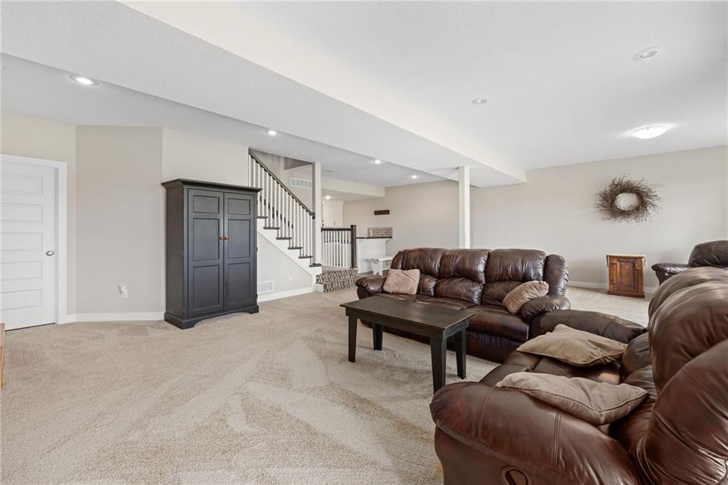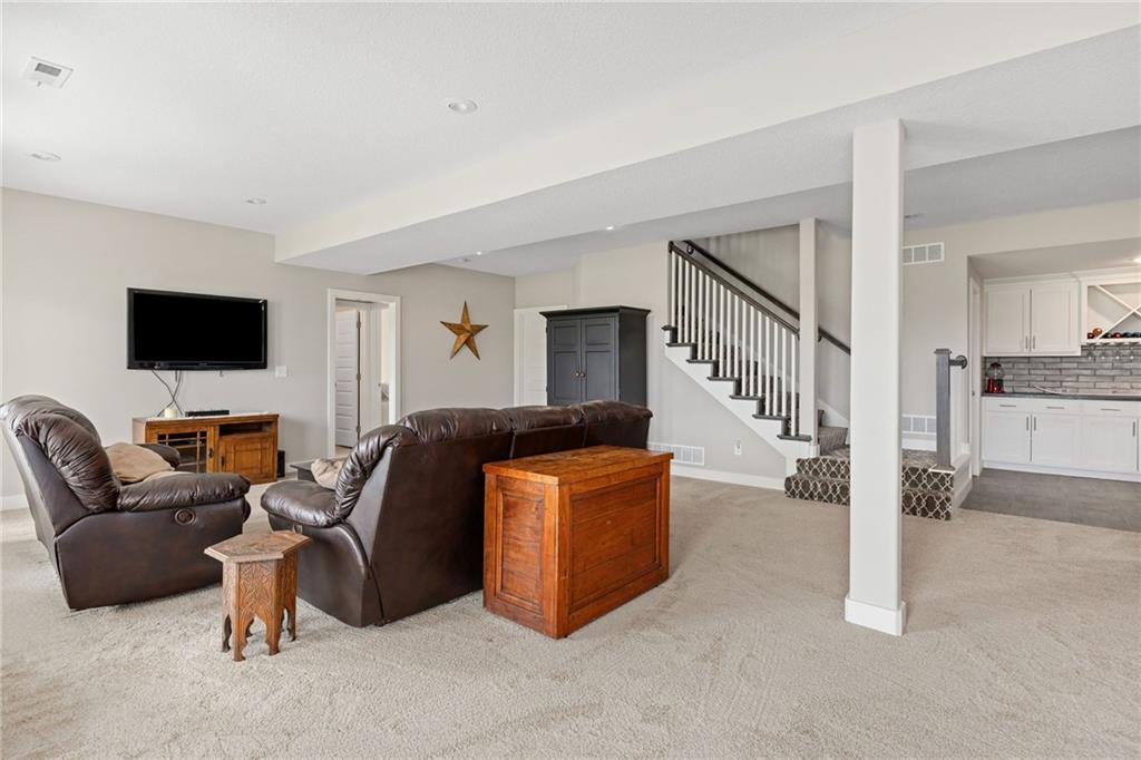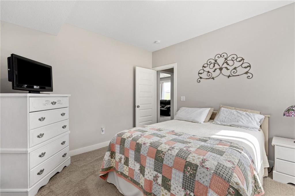 Welcome Home to Foxtail Point in The Meadows of Greenfield Subdivision This is one of those homes you walk into and instantly feel it — the sense of care, comfort, and pride of ownership from day one. Immaculately maintained by the original owner, this reverse 1.5-story sits on a quiet cul-de-sac street with no neighbors behind you, offering true privacy. Step inside to light, natural wood floors and an open layout that feels both spacious and inviting. The front bedroom, filled with natural light from double windows, is perfect as a guest room or home office. A full bathroom nearby makes hosting easy and convenient. The kitchen is the heart of the home — open to the living and dining areas so you never miss a moment. Enjoy a large island & oversized walk-in pantry. The Primary bedrooms offers direct access to the covered deck — the perfect spot for morning coffee or evening relaxation. The ensuite features a large soaker tub, walk-in tile shower, and a smart layout connecting the walk-in closet directly to the laundry room. A handy drop zone sits just off the garage, ideal for everyday organization.Downstairs, you’ll find a spacious walk-out lower level lined with floor-to-ceiling windows. Entertain easily with a wet bar and plenty of room for gatherings. Two additional bedrooms, a third full bath, and ample storage complete this level. With an irrigation system, a private yard, and a beautiful lot that backs to green space, this home truly has it all — peaceful living, thoughtful design, and timeless care.