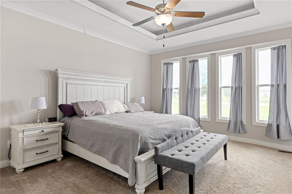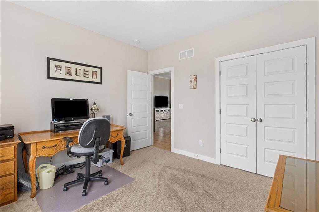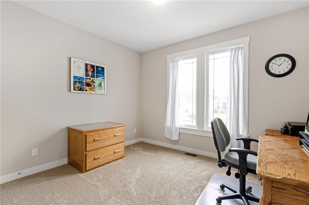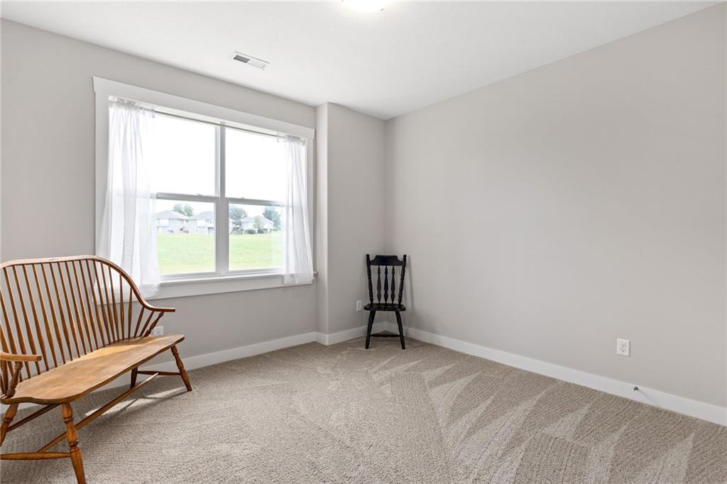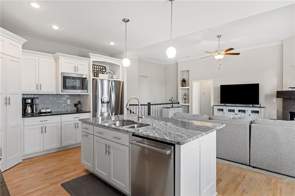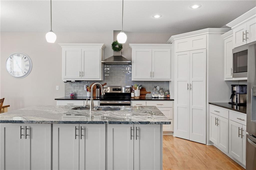 Welcome Home to Foxtail Point in The Meadows of Greenfield Subdivision This is one of those homes you walk into and instantly feel it — the sense of care, comfort, and pride of ownership from day one. Immaculately maintained by the original owner, this reverse 1.5-story sits on a quiet cul-de-sac street with no neighbors behind you, offering true privacy. Step inside to light, natural wood floors and an open layout that feels both spacious and inviting. The front bedroom, filled with natural light from double windows, is perfect as a guest room or home office. A full bathroom nearby makes hosting easy and convenient. The kitchen is the heart of the home — open to the living and dining areas so you never miss a moment. Enjoy a large island & oversized walk-in pantry. The Primary bedrooms offers direct access to the covered deck — the perfect spot for morning coffee or evening relaxation. The ensuite features a large soaker tub, walk-in tile shower, and a smart layout connecting the walk-in closet directly to the laundry room. A handy drop zone sits just off the garage, ideal for everyday organization.Downstairs, you’ll find a spacious walk-out lower level lined with floor-to-ceiling windows. Entertain easily with a wet bar and plenty of room for gatherings. Two additional bedrooms, a third full bath, and ample storage complete this level. With an irrigation system, a private yard, and a beautiful lot that backs to green space, this home truly has it all — peaceful living, thoughtful design, and timeless care.