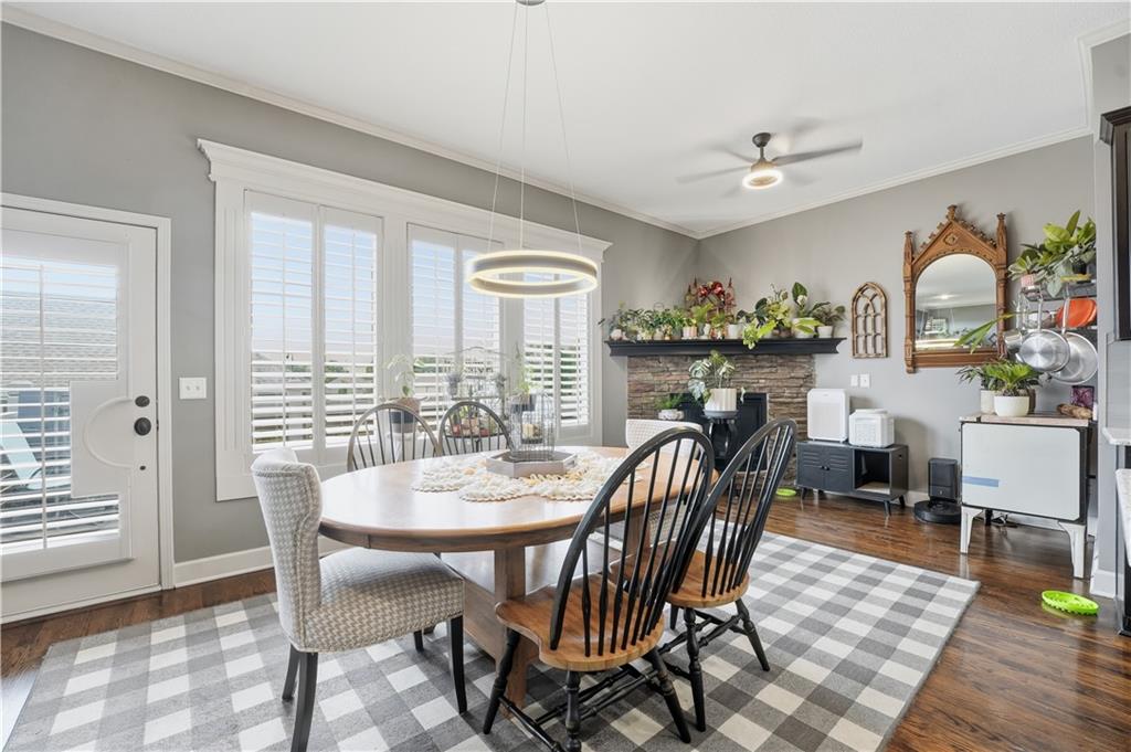 Walking into this beautiful home is like walking into a dream home. Great open floor plan, 1st floor offers the Primary bedroom and a front room that could be a 5th bedroom or an office. The beautiful kitchen/hearth room offers a gas fireplace, custom cabinets, a large island, and a walk-in pantry The lower walk-out level presents a spacious family room, 3 more bedrooms, and another full bath. The curb appeal alone will pull you inside for a look. This home has so many upgrades, it really has it all! One block from the community pool and minutes from Longview Lake, Fred Arbanas Golf Course, new Longview shops, Summit Crossing/ Summit Fair shopping centers & easy commute to Johnson County