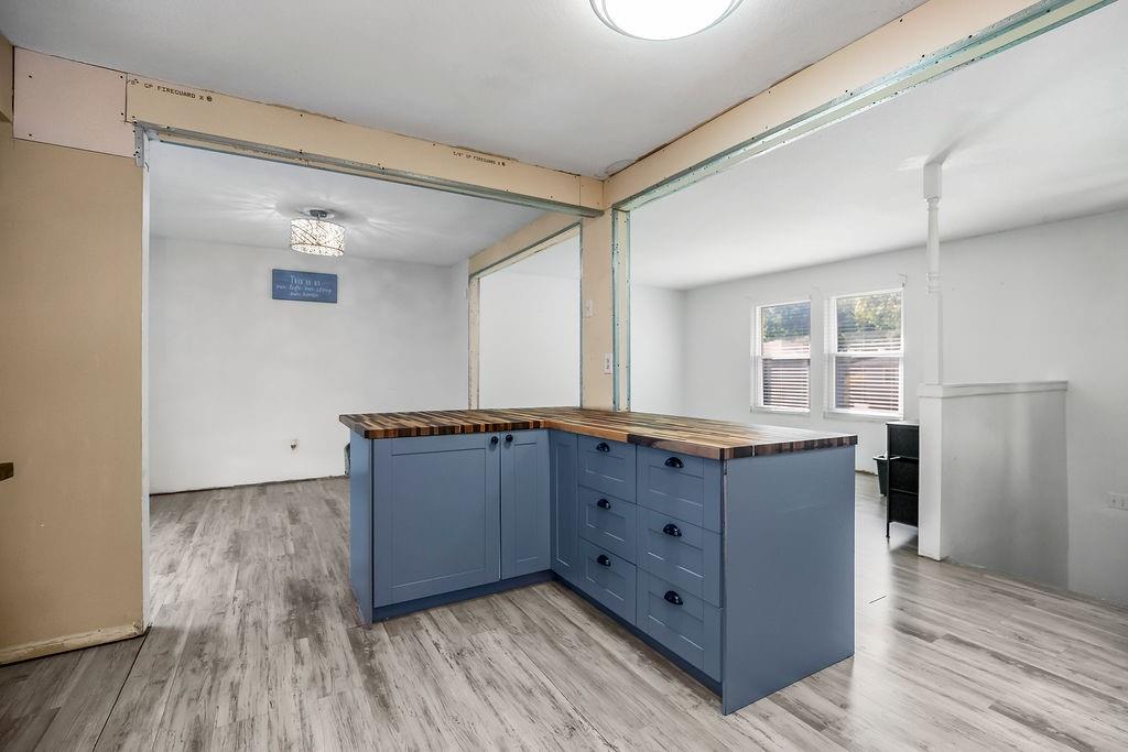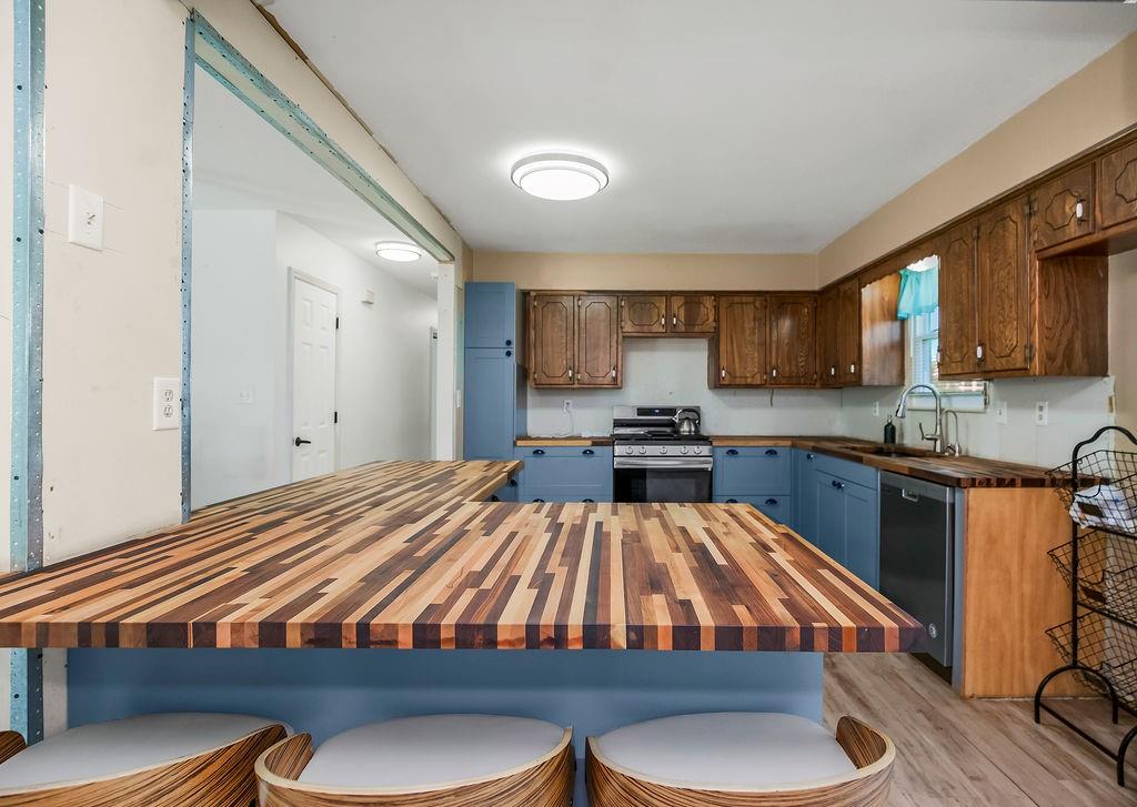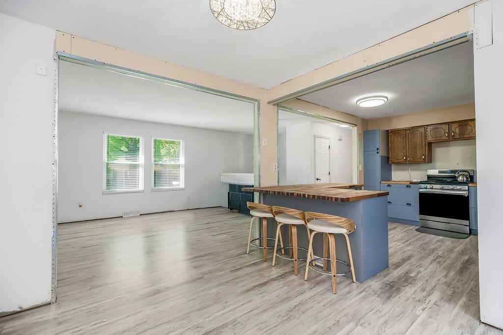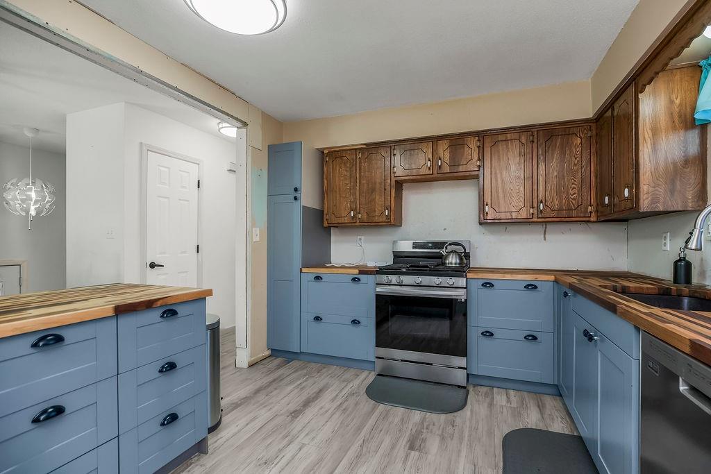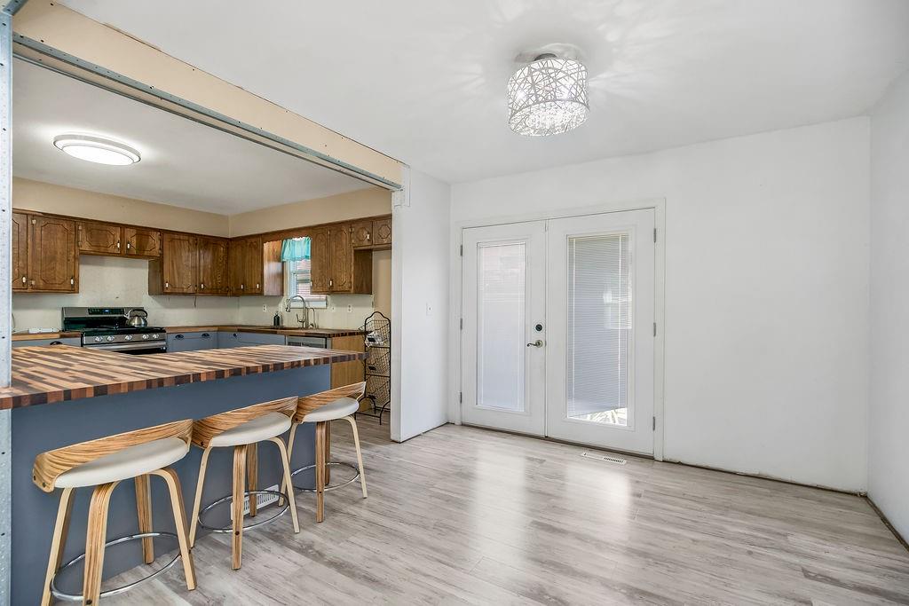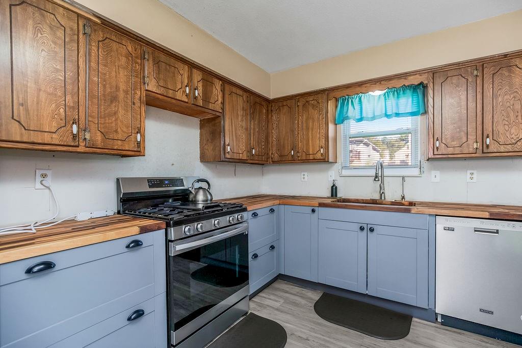 Investor’s Dream – Most of the Work is Already Done! This one’s a must-see opportunity with major updates already completed. The kitchen shines with butcher block counters, stainless steel appliances, new light fixtures, and fresh flooring—plus an island with a built-in breakfast bar that’s perfect for morning coffee or quick bites. The family room features brand-new laminate floors and 2” blinds, offering a cozy and move-in-ready vibe. The primary suite has had the popcorn ceiling removed (hooray!), and just needs a little finishing touch—paint and flooring—to make it complete. You’ll love the walk-in closet and private full bath, too. Two additional spacious bedrooms share a hall bath with a tub/shower combo, ideal for guests or family. Downstairs, the finished basement offers a warm wood-burning fireplace, a convenient half bath, and a large laundry area with extra storage space. Outside, the fully fenced yard is huge—ready for pets, play, or outdoor entertaining—with a great patio space to enjoy it all. With just a few finishing projects left, this home has incredible potential to shine. Don’t wait—opportunities like this go fast!