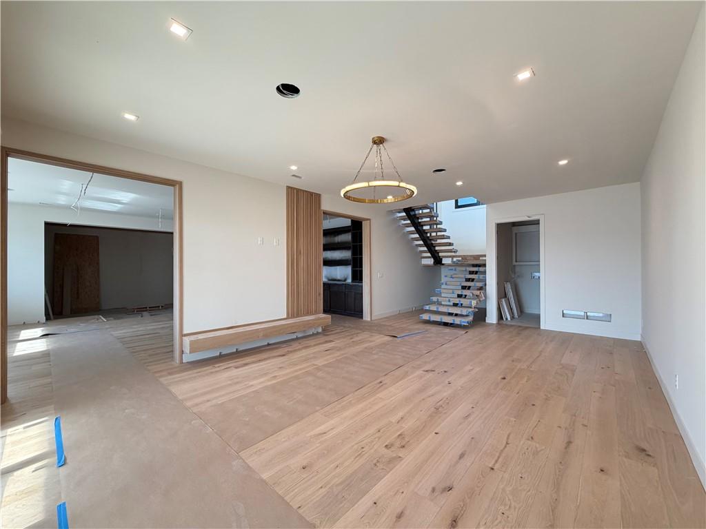 WaterCrest Landing | Sunset Views. Elevated Living. LUXURY REDEFINED - GOLF SIMULATOR - BACKS TO WATER - Exquisite new construction by Spiess Custom Homes in the coveted WaterCrest Landing. This masterpiece offers the perfect blend of modern luxury and functional design, backing directly onto the community pond with a desirable flat lot ideal for a future pool. Soaring ceilings and expansive windows frame breathtaking views from every angle. The main level showcases ultimate convenience with a private primary bedroom suite and a separate, secondary bedroom quarter with full bath, perfect for guests or multi-generational living. The true entertainer's dream awaits on the walk-out lower level. This space is unparalleled, featuring a state-of-the-art Golf Simulator, a full professional bar, and a direct walk-out to a covered patio with stunning water views. Car enthusiasts will appreciate the oversized 3rd-car garage providing ample space for toys and storage. Luxurious, top-tier finishes throughout—where style meets everyday living. This is more than a home; it's a lifestyle.