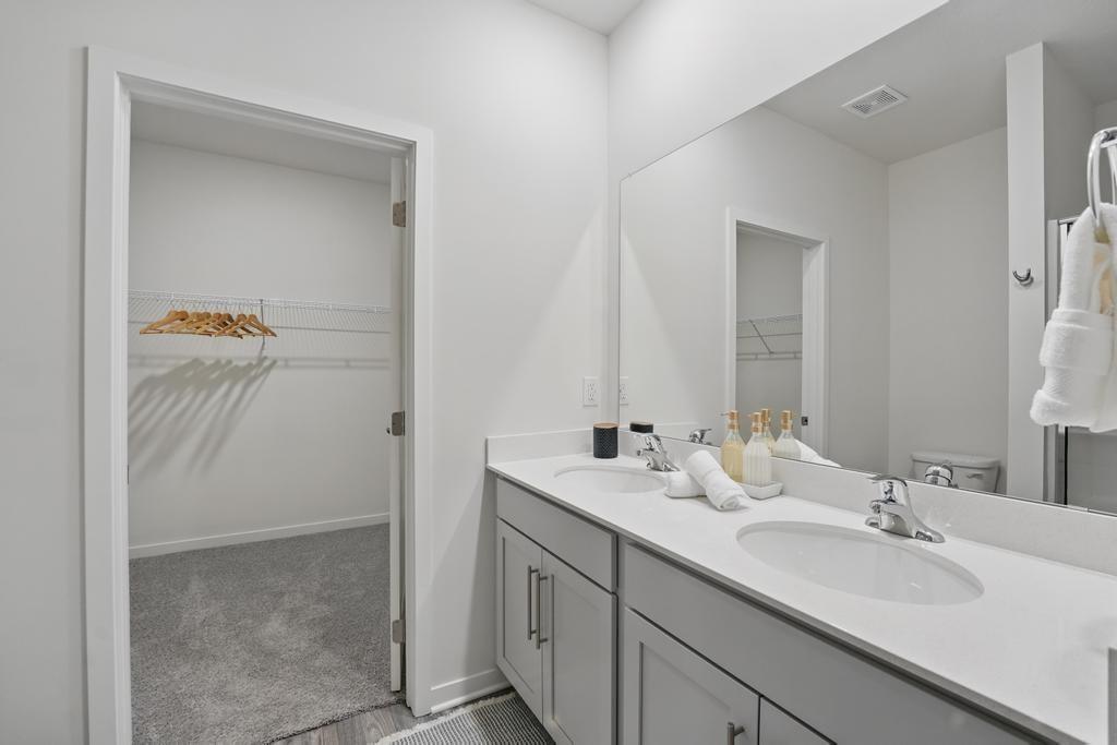 Welcome to Alexander Creek, an exceptional 55+ community where modern design meets timeless elegance, crafted by D.R. Horton, "America's Builder." Alexander Creek is a lively community offering neighborhood outings, fitness groups, outdoor activities and more. This residence stands out with its James Hardie® siding and stone accents, providing both durability and timeless appeal. The welcoming three-rail, two-panel insulated front door enhances both the home's aesthetics and energy efficiency. Inside, you’ll find 9-foot ceilings and a spacious, open layout that exudes warmth and sophistication. The interior has elegant details and a refined touch throughout. The gourmet kitchen serves as the heart of the home, featuring 36-inch painted maple cabinets, quartz countertops, and premium Whirlpool® stainless steel appliances—perfect for both everyday meals and entertaining. The bathrooms offer a luxurious retreat, complete with quartz-topped vanities, Moen® Chrome Faucets, and a primary bath with a 5-foot shower and framed glass enclosure, providing a spa-like experience. Equipped with advanced smart home technology, this residence makes modern living effortless. Control your home’s climate and security with a Honeywell® Pro Z-Wave® Thermostat, Amazon Echo, and a connected home panel, all designed for ultimate convenience. LED lighting, a high-efficiency gas furnace, and energy-efficient insulated windows ensure year-round comfort and savings. Additional features like luxury vinyl plank flooring, a garage with an opener, and dual data/TV lines in key areas highlight the home’s commitment to convenience and modern living. D.R. Horton’s attention to detail and commitment to quality are evident throughout, making this home a perfect blend of luxury and functionality. Don’t miss your chance to own this exceptional home in Alexander Creek. Schedule your private tour today and discover a lifestyle where elegance and convenience meet in perfect harmony.