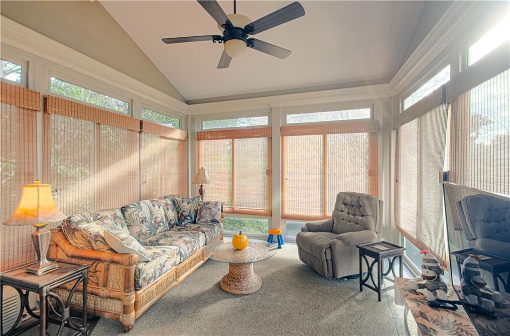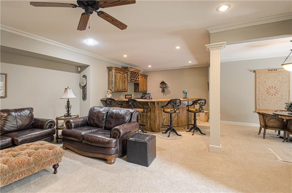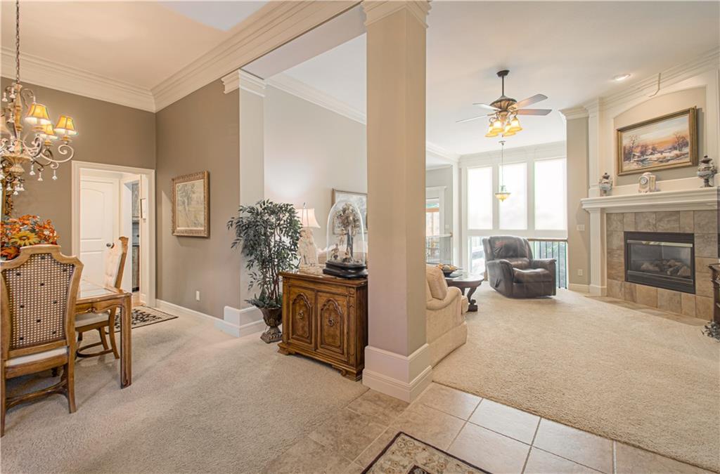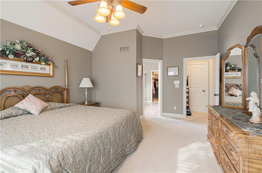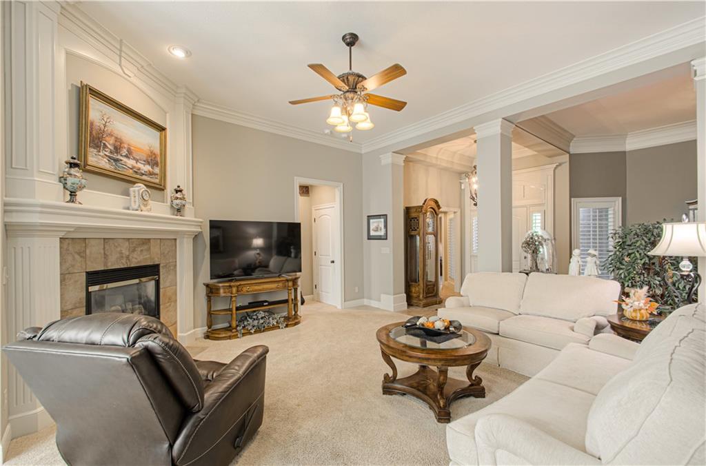 Beautiful Reverse 1.5 Story home in Heather Glen, Maintenance provided community on a cul-de-sac lot. Meticulously maintained!! Upon entering the home you'll be greeted with tall ceilings throughout the main level, 2 Story windows in the great room and stunning crown moulding throughout. In the kitchen you will find hard wood floors, custom cabinets with granite counters, a gas range. Stunning crown moulding throughout, plantation shutters on the windows, a true dining room and a breakfast area. The sellers have added an all seasons room with AC/Heat year round. The primary bedroom features separate owners closets, double vanity, toilet room, soaker tub and shower. The lower level features a recreation room with walk out to patio and yard, full bar, the third bedroom and full bathroom. Large unfinished area for ample amounts of storage. 3 car garage with epoxy flooring.