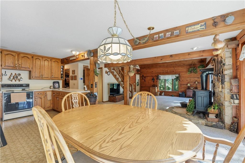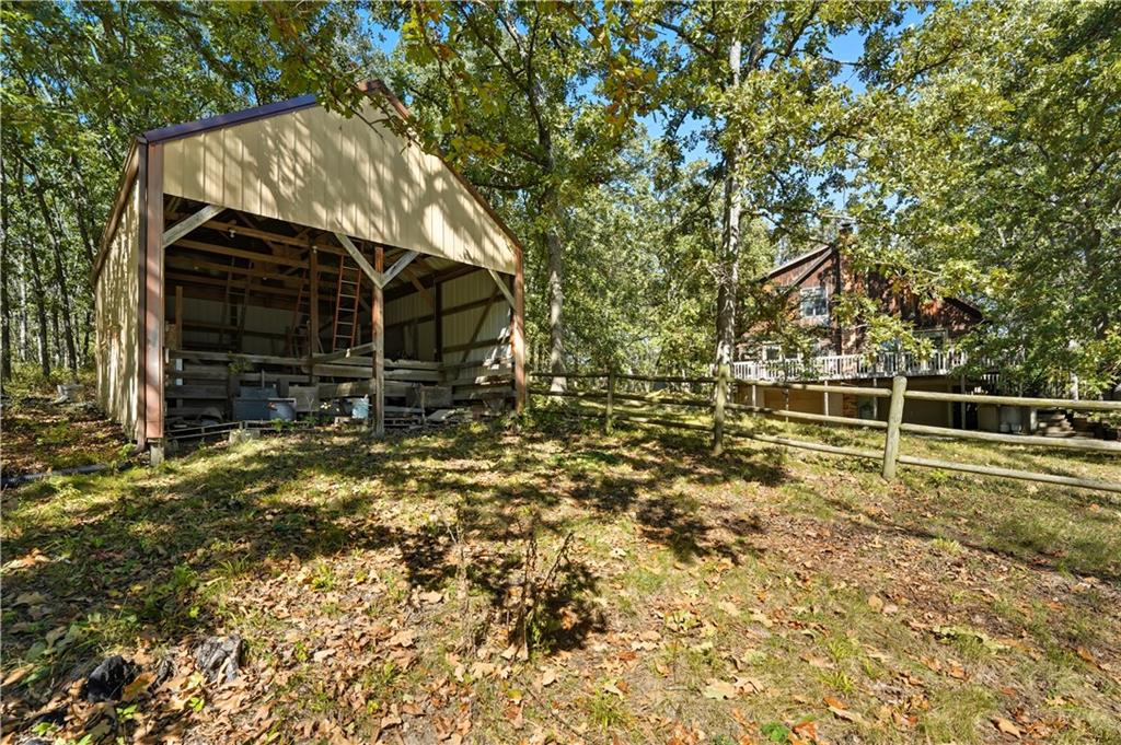 This woodland paradise could be your dream retreat! This spacious yet cozy log cabin sits on 10 acres of beautiful wooded land, filled with deer, turkeys, and endless privacy. Hidden from view and completely surrounded by nature, this property offers the peace and seclusion you've been searching for. Enjoy your morning coffee on the classic covered front porch or soak up the sunshine from the spacious back deck, both perfect spots for watching the abundant wildlife that frequent the property. The 1,812 sq ft log cabin features 4 bedrooms and 2 bathrooms, with a main-level bedroom and laundry room for convenience. The home offers large rooms, a walk-in primary closet, and comes with all appliances?including the washer and dryer! Updates include a new furnace and AC (2017) and new roofs on the home and all outbuildings (2024). Outside, you'll find a 40x40 shop/garage with a concrete floor and electricity, ideal for hobbies, storage, or projects as well as a three-sided barn, previously used for horses. Whether you're looking for a private homestead, a hunting haven, or a peaceful escape from the city, this property offers the perfect blend of comfort, prime location, and natural beauty.