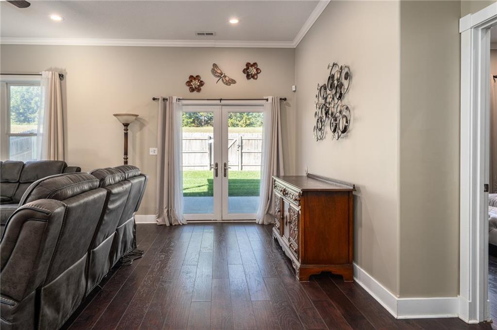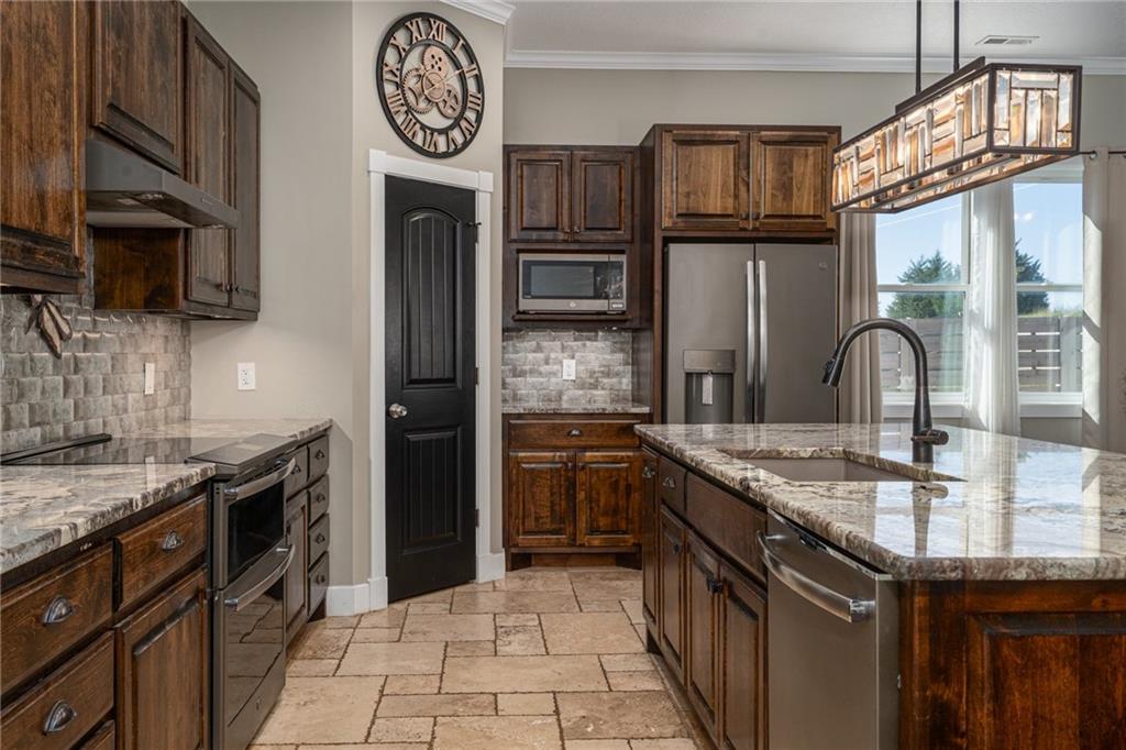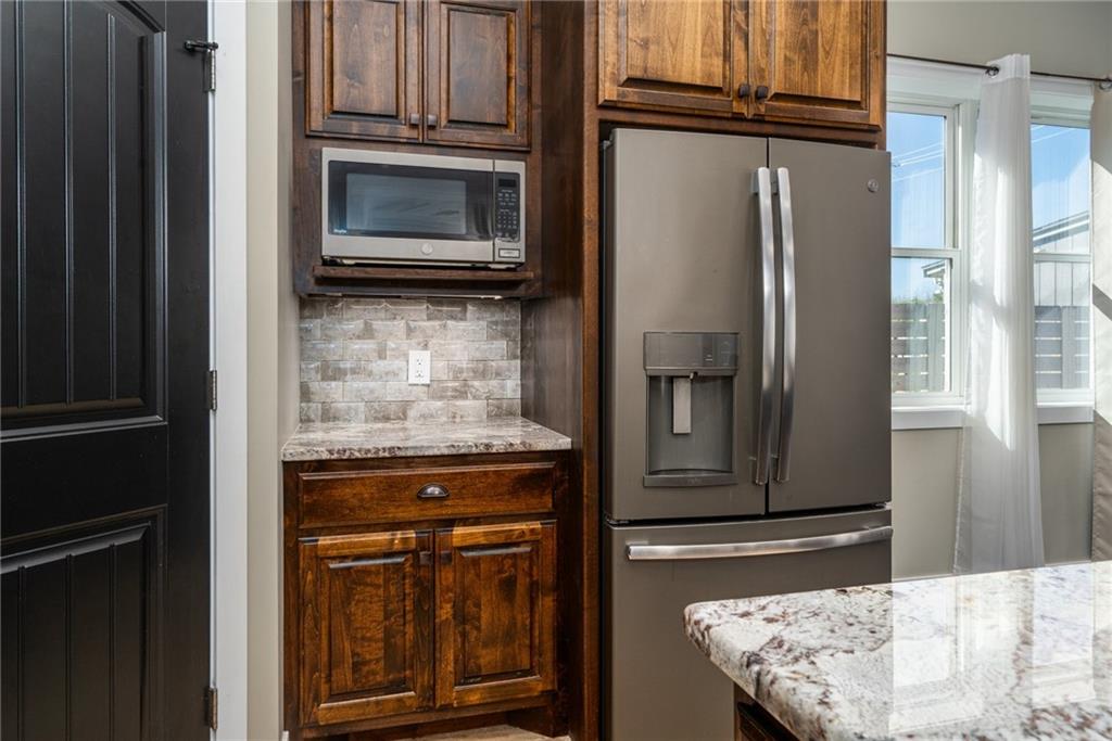One level ranch with high ceilings and zero entry access. Beautiful master suite with expansive master closet and custom shower. Granite kitchen countertops and ample pantry and high end appliance package. Fenced yard with large covered patio and sprinkler system. Great one level living with no HOA with easy access to walking/biking trails and close proximity to KU and major highways.
