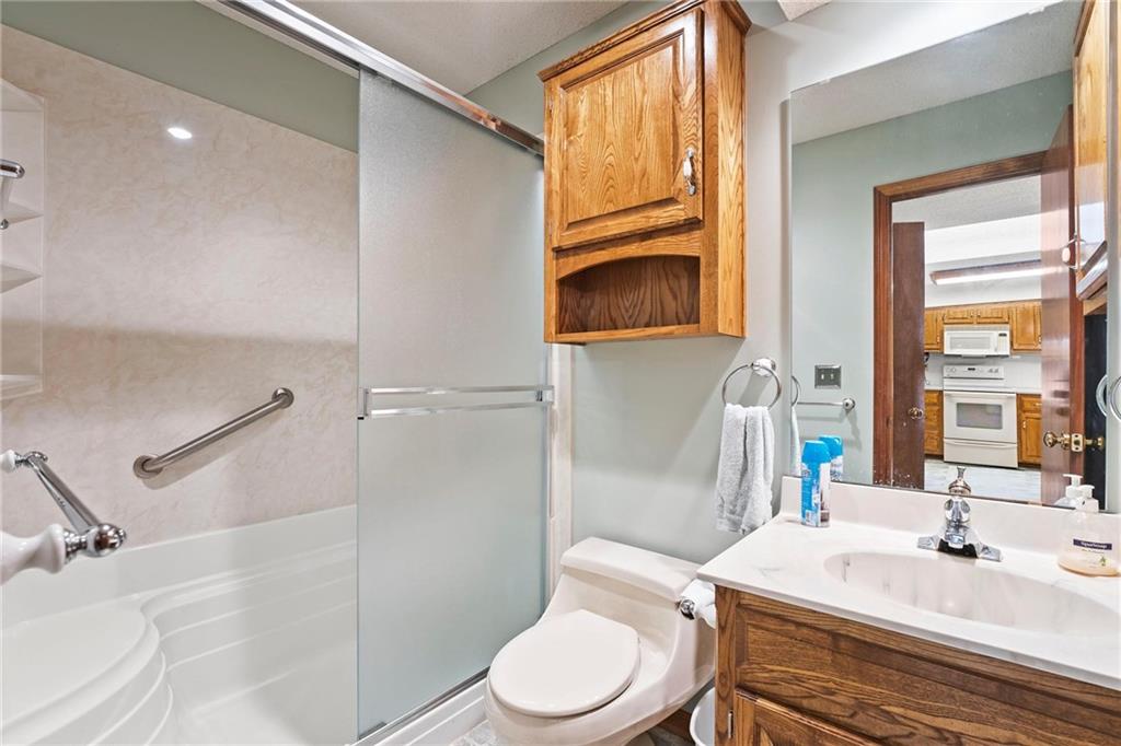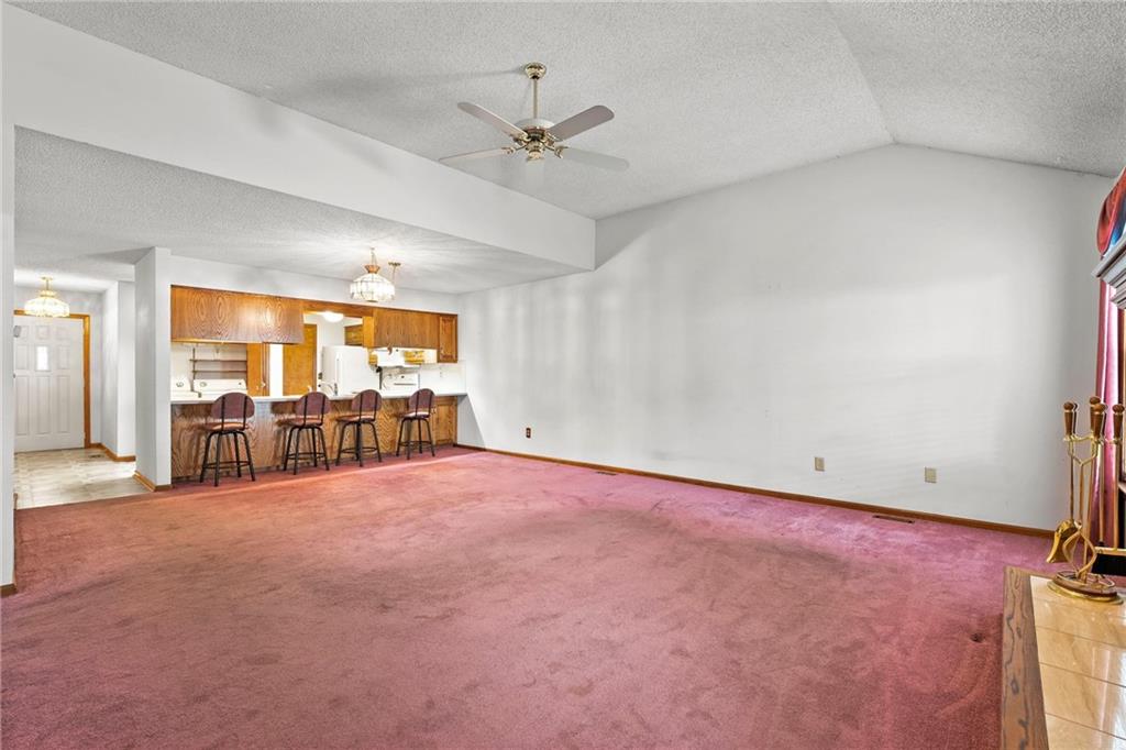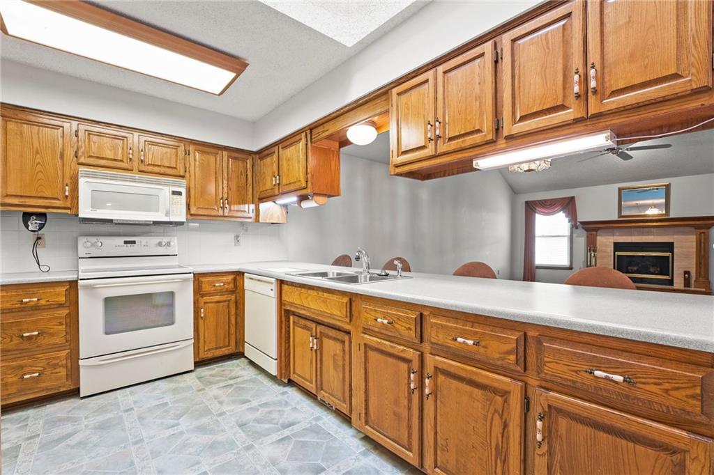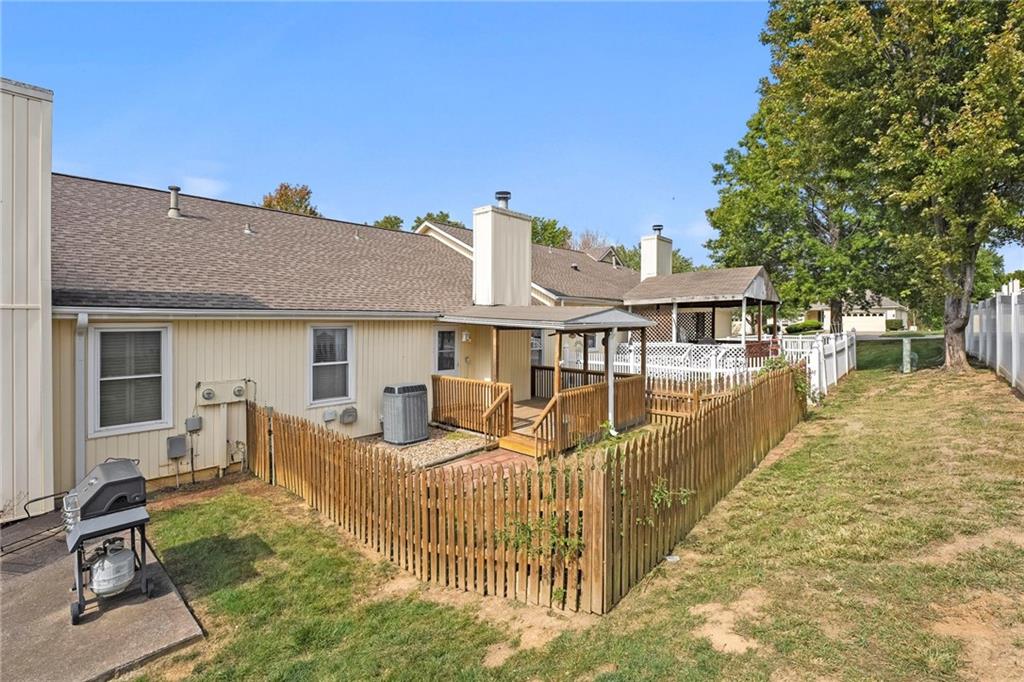 Well maintained ranch townhome in Gladstone. Close to grocery stores and gas stations. Open floor plan. Kitchen opens to large living/dining combo with gas start fireplace. Back deck is covered. Fenced rear yard. Laundry closet is in the kitchen. All appliances stay (as is). Large walk-in closet off master bedroom bath area. Downstairs has finished room and 3/4 bath, plus lots of storage space. Central vac (equipment included - but seller did not use) HOA dues include Lawn care, snow removal, trash pick-up, exterior maintenance, roof repair (not replace). Full coverage insurance is required (not condo). Easy care vinyl siding. Complete roof replacement in July, 2014,