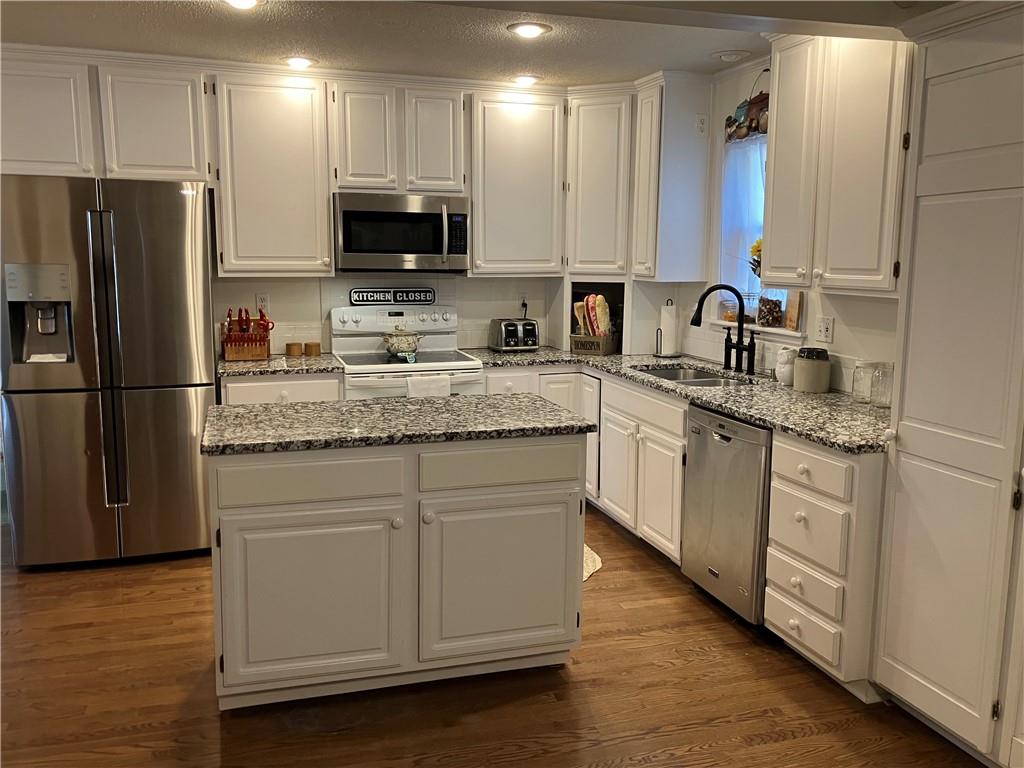 This home has so much to offer & Seller is motivated!!! Spacious interior yet feels like HOME when you walk inside. Oversized corner lot with trees to provide shade. There’s so much character and features beautiful hardwood flooring throughout the first floor. The exterior has been freshly painted and is complemented by a new white vinyl privacy fence. All visible basement plumbing has been upgraded to durable PVC. The home offers two bedrooms on the main level and two additional bedrooms upstairs, plus a cozy sitting room. The kitchen features granite countertops, and all kitchen appliances stay. Cozy up by the wood burning fireplace. A main-floor family room provides additional living space. The walk-up basement offers easy access, and the backyard includes a shed, hot tub, and covered deck—perfect for relaxing or entertaining. Easy to show!
