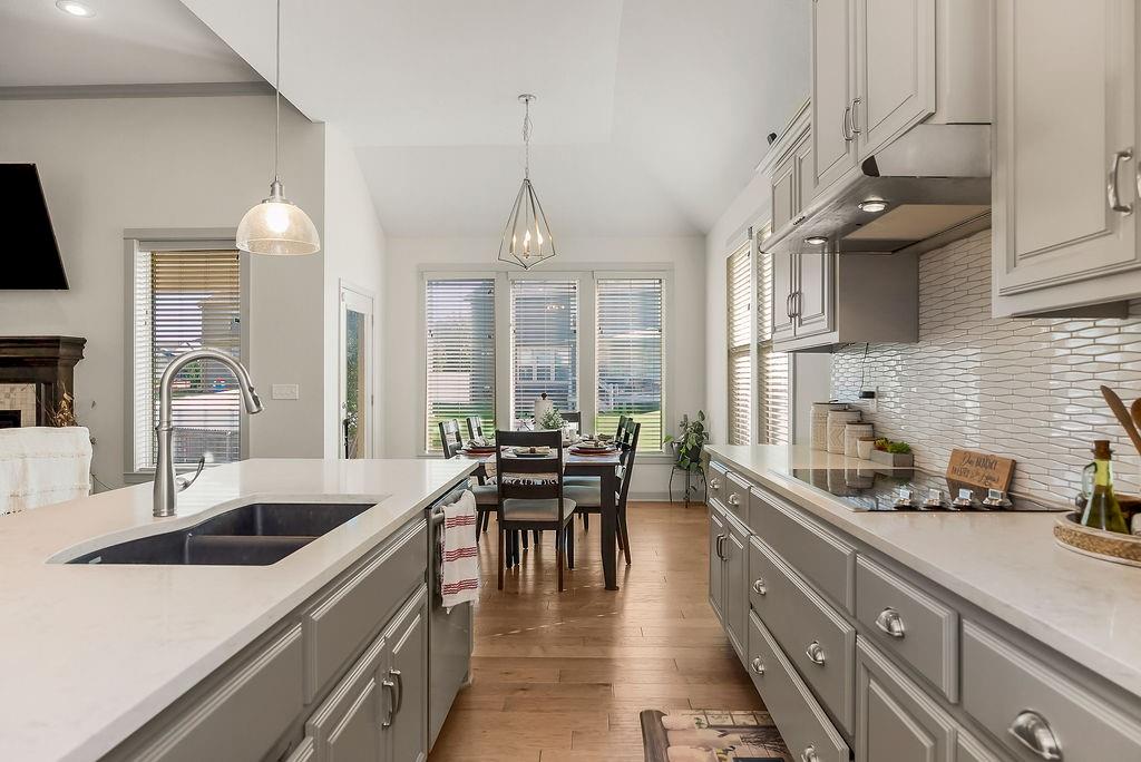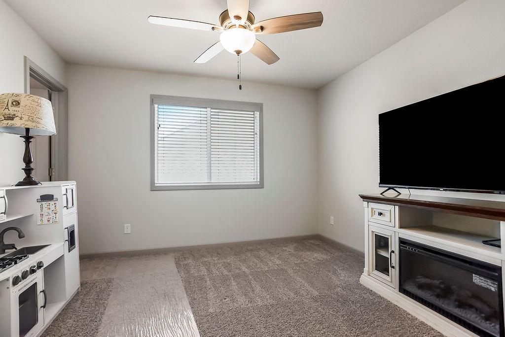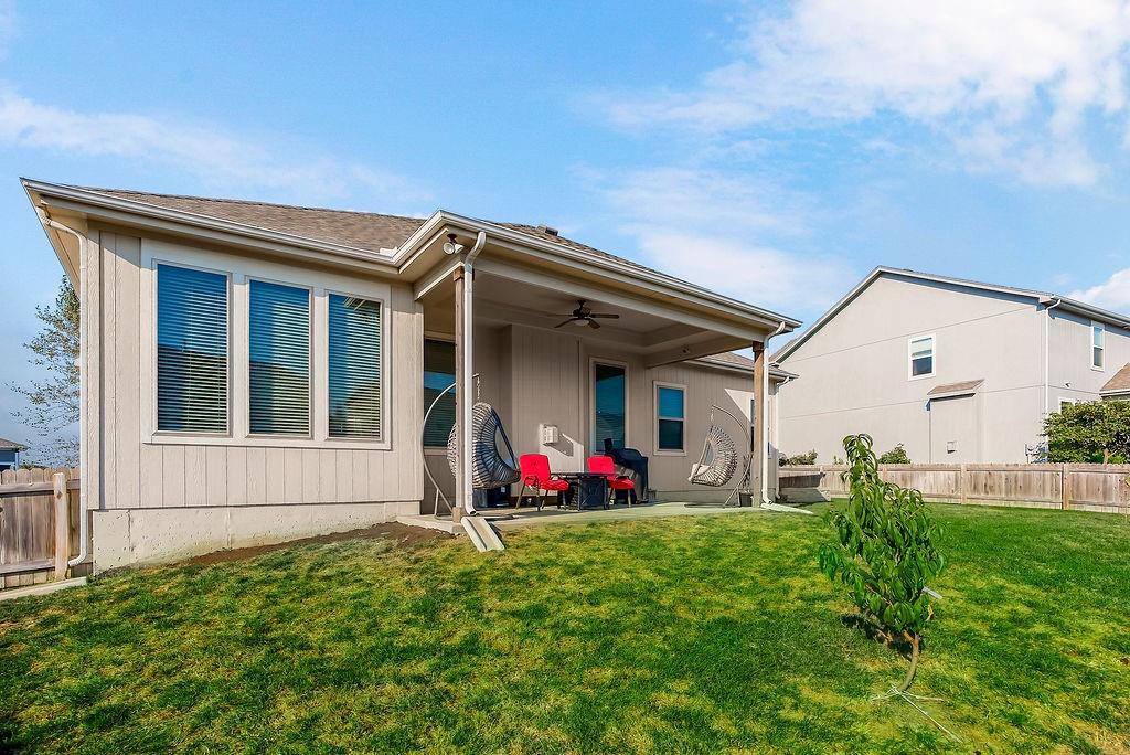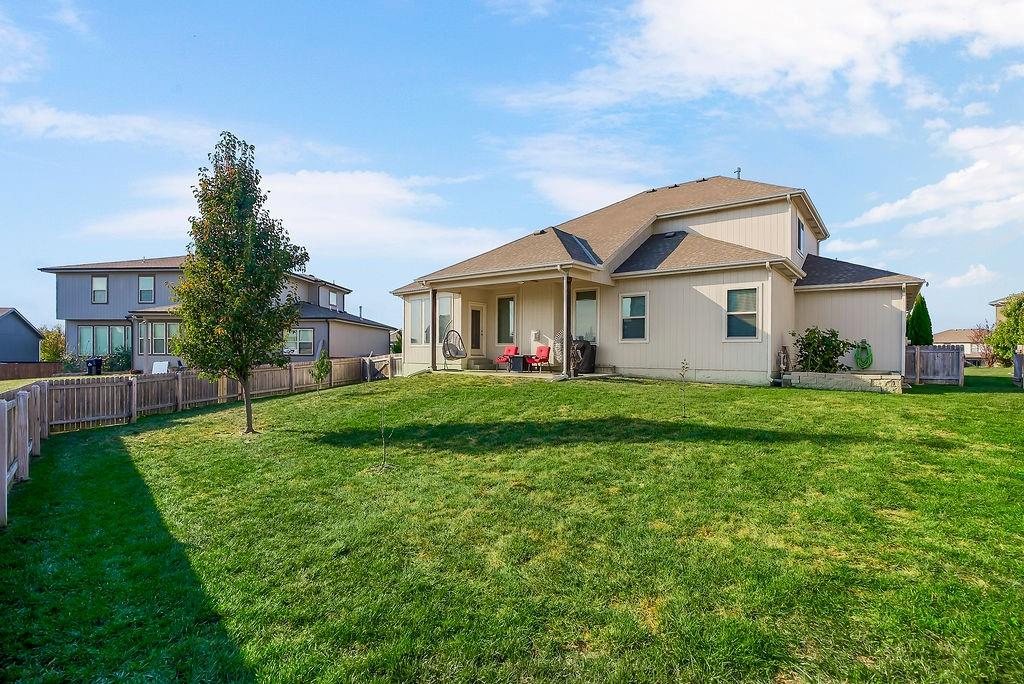 Welcome to this beautifully cared for Cherry Creek II 1.5 story home, tucked within the highly sought after Ridgewood Place at Chapman Farms community. From the moment you arrive, you can feel how much pride and attention has gone into maintaining this home. Step inside and you’re greeted by soaring vaulted ceilings and rich wood flooring that give the great room an inviting, open feel. The main level offers a seamless flow, connecting the living space to a bright kitchen and cozy breakfast area where morning coffee feels just a little sweeter. The dining room, which can easily serve as a home office, adds versatility to the layout.The main level master suite offers the perfect retreat, complete with a luxurious bath featuring a soaking tub and walk in shower. Upstairs, you’ll find three more spacious bedrooms, one with its own private bath and two sharing a convenient Jack and Jill setup, ideal for family or guests. Step outside to a covered 19x10 patio overlooking a well kept yard, perfect for relaxing evenings or weekend gatherings. The backyard also features a fenced area, an L shaped vegetable and fruit garden (approximately 12x7), and several planted fruit trees you’ll enjoy for years to come. Enjoy the large unfinished basement that can be used for storage, a rec room, or easily finished later with the already set up plumbing for a full bath, kitchenette, and bedroom, giving you plenty of options to expand your living space. The home has been professionally power washed, refreshed with new mulch and interior paint, had the carpets professionally cleaned, and is truly move in ready. With an irrigation system, security system, and a 10 year builder warranty, every detail has been thoughtfully cared for. This isn’t just a house, it’s a home that’s been loved, maintained, and ready to welcome its next chapter. You won’t want to miss how beautifully this home has been maintained inside and out.